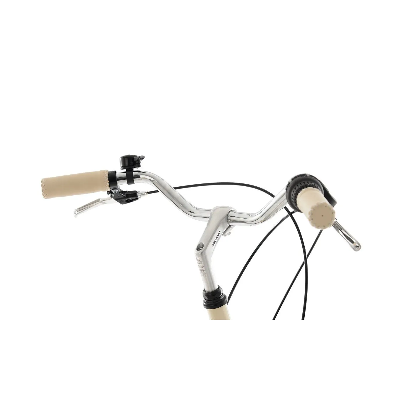 Proponowany model zachwyca swoim designem z beżowym kolorem ramy i jasnymi dodatkami. Wygląda oryginalnie, a jednocześnie bardzo klasycznie. Rower jest lekki, wyposażony w metalową osłonę na łańcuch, 6 biegów Shimano a także akcesoria takie jak bagażnik, reflektor i dynamo.