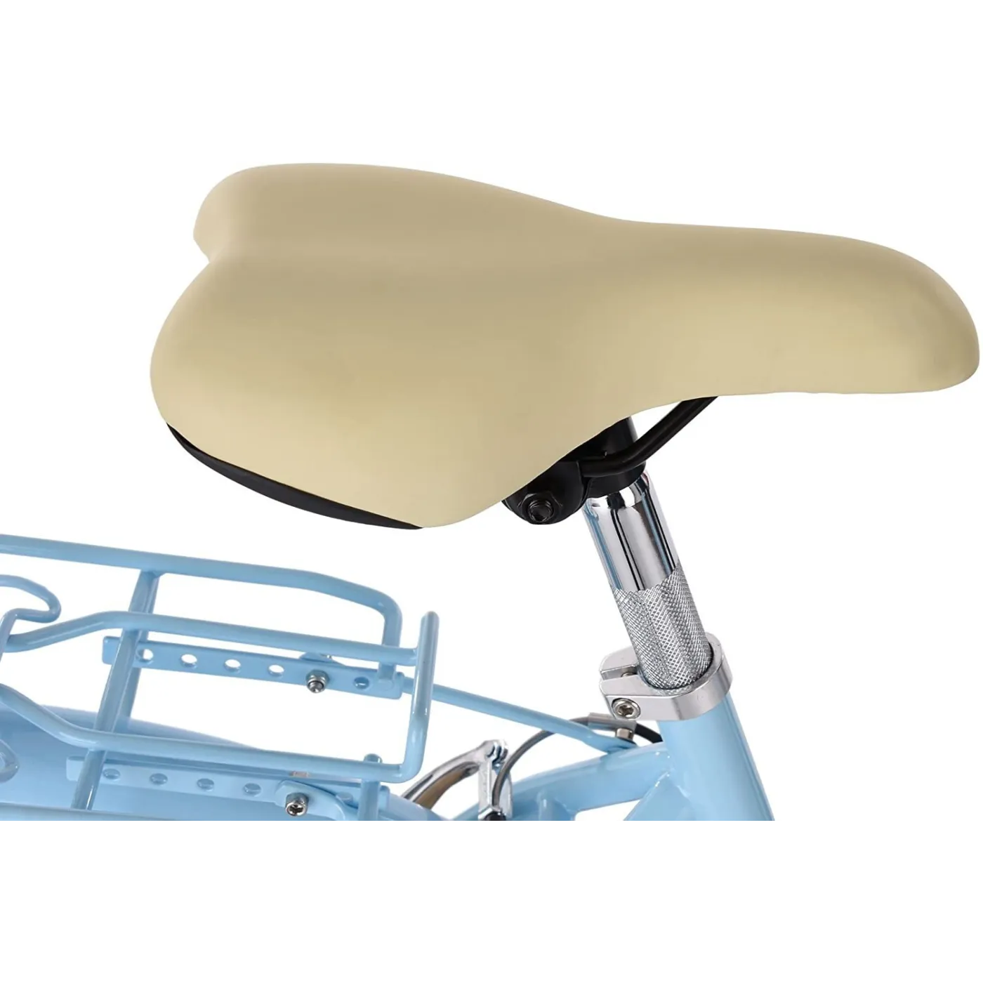 Rower wyposażony jest w niezbędne akcesoria, takie jak bagażnik, błotniki, osłona łańcucha oraz oświetlenie, które pozwoli na bezpieczną jazdę nawet po zmroku. Ponad to rower wykończony jest pięknym niebieskim kolorem, który przyciągnie niejedno spojrzenie!
