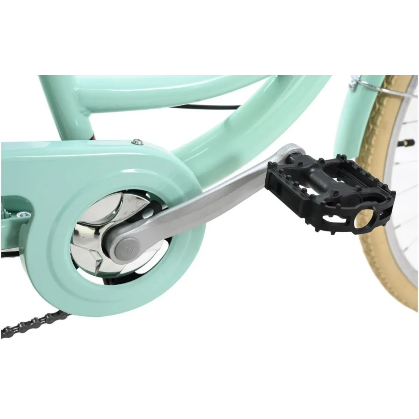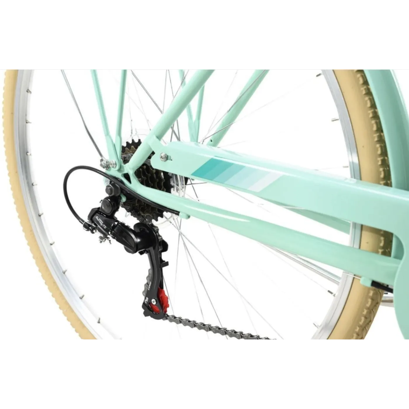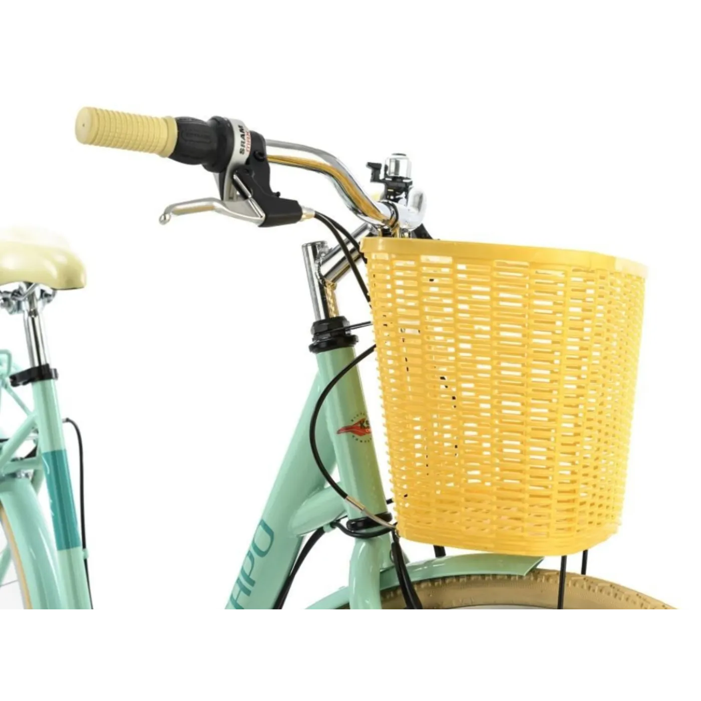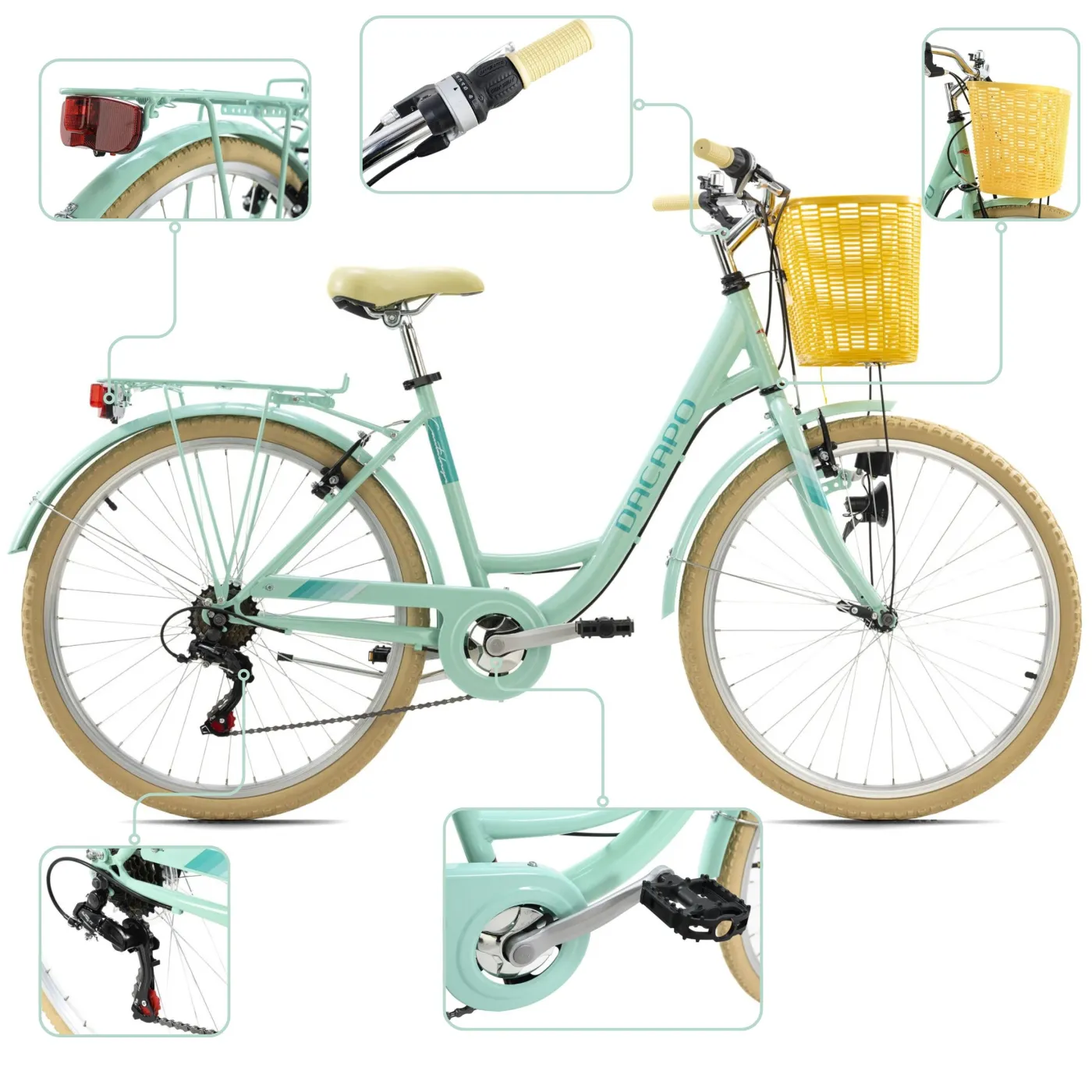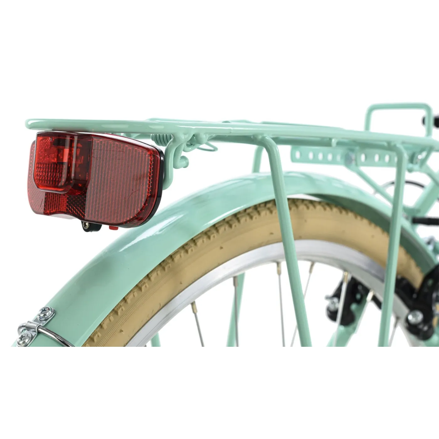 🚲 Charakterystyka: Rower posiada ślady jazd testowych na obręczach i oponach oraz rysy i obicia na ramie i elementach. Wersja modelowa z białym bagażnikiem i białą osłoną łańcucha.