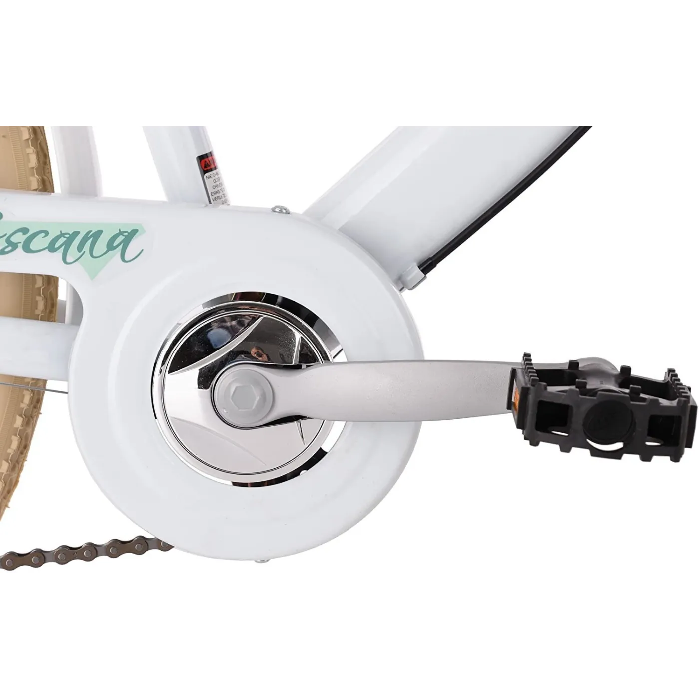 Rower miejski Toscana świetnie sprawdzi się jako codzienny transport np. do szkoły czy pracy, ale także krótkie wycieczki rekreacyjne. Wyposażony w hamulce v-brake i 6 biegów dostosuje się do zmian terenu. Dodatkowo zawiera wszystkie niezbędne akcesoria potrzebne do codziennej jazdy, np. bagażnik, błotniki i osłonę na łańcuch oraz oświetlenie zasilane bateryjnie.