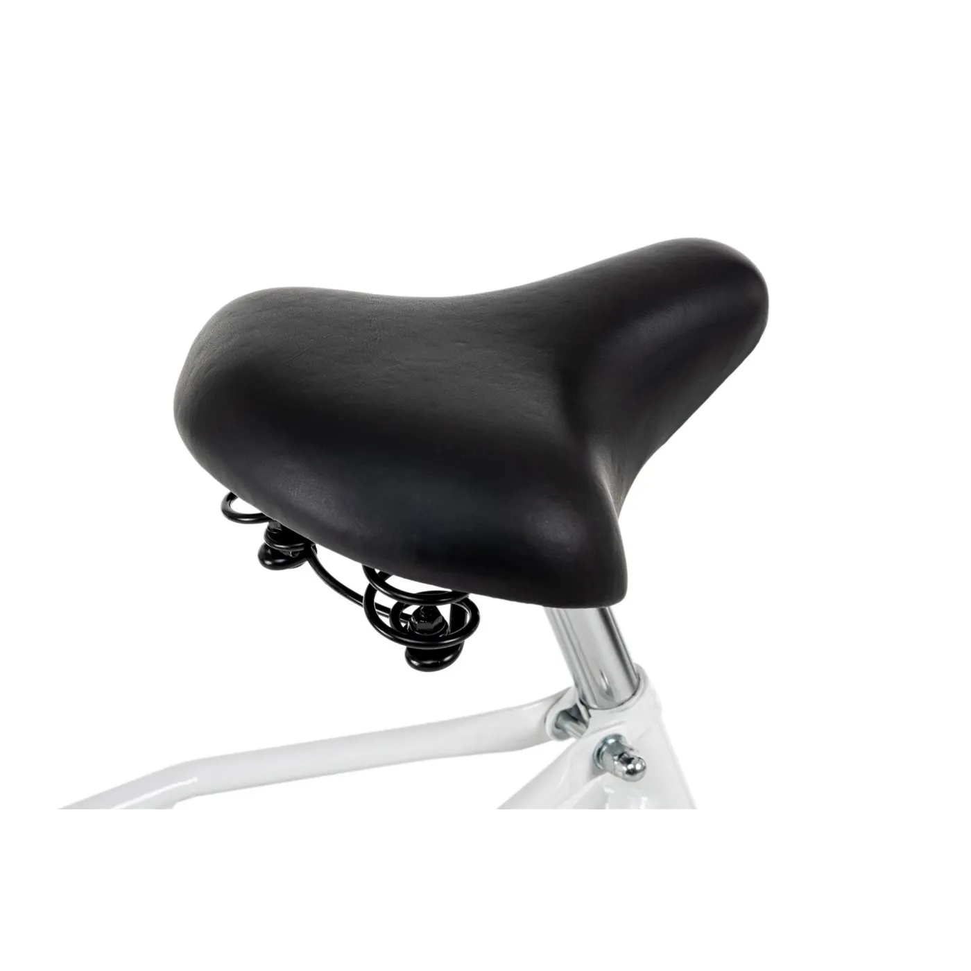 Rower Tussaud marki Ks Cycling charakteryzuje się solidną stalową ramą w klasycznym białym kolorze, sprężynowym siodełkiem miejskim oraz 28 calowymi kołami. Jest on idealny do przemieszczania się po mieście!