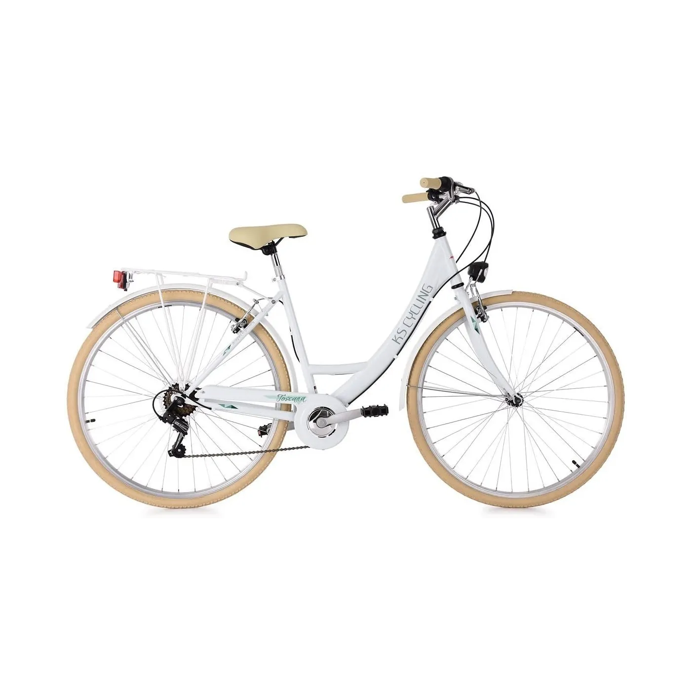 Rower miejski Toscana świetnie sprawdzi się jako codzienny transport np. do szkoły czy pracy, ale także krótkie wycieczki rekreacyjne. Wyposażony w hamulce v-brake i 6 biegów dostosuje się do zmian terenu. Dodatkowo zawiera wszystkie niezbędne akcesoria potrzebne do codziennej jazdy, np. bagażnik, błotniki i osłonę na łańcuch oraz oświetlenie zasilane bateryjnie.