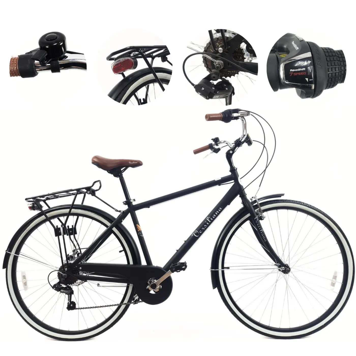 🔔 Rower został wyposażony w pełen pakiet praktycznych dodatków: błotniki, osłonę łańcucha, bagażnik, oświetlenie, stopkę i dzwonek. Dzięki nim Versiliana Herren jest gotowy do jazdy od razu po wyjęciu z pudełka. Jego waga 18 kg oraz dopuszczalne obciążenie do 120 kg czynią go solidnym i wszechstronnym wyborem dla codziennych dojazdów i weekendowych przejażdżek.