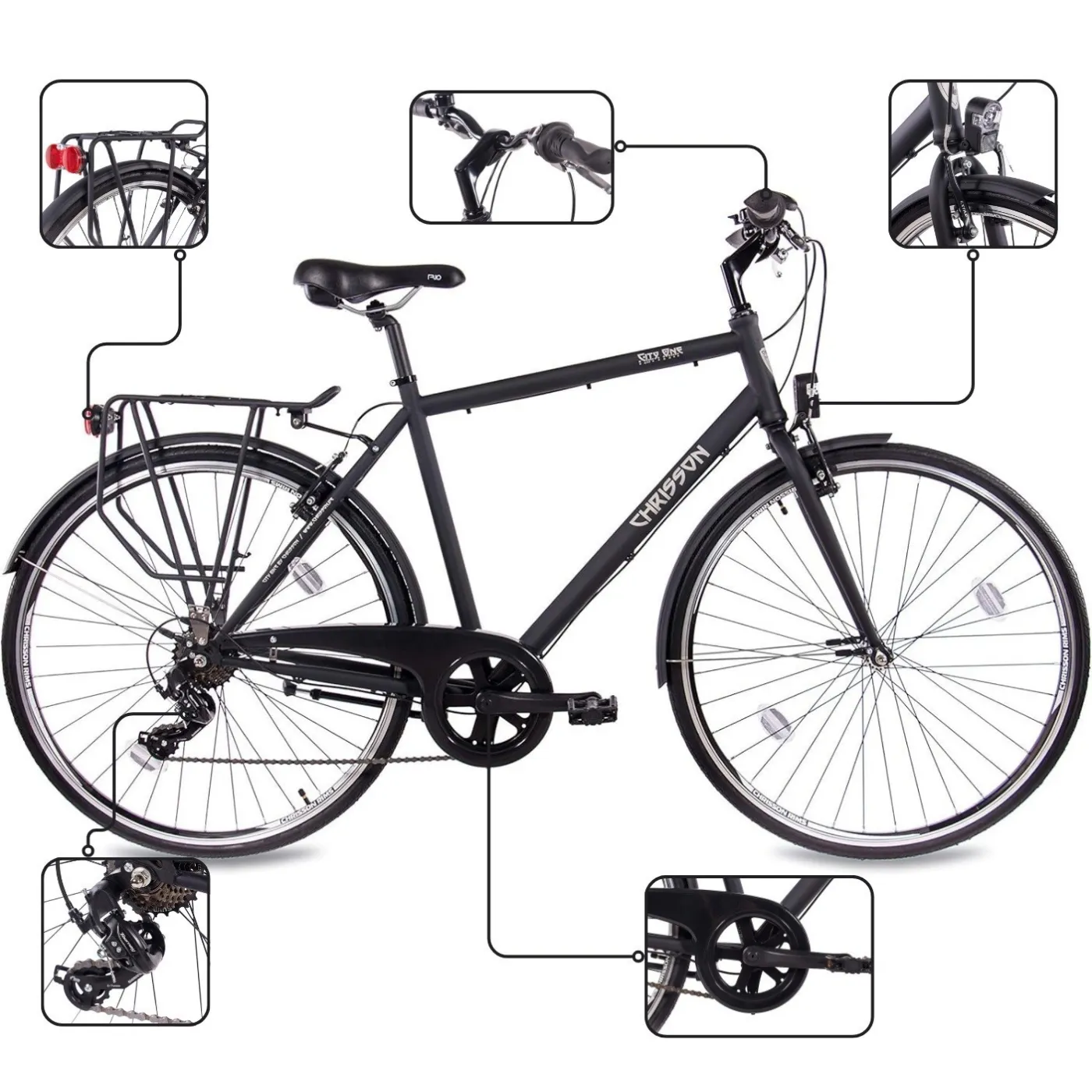 ✅ Bogate wyposażenie w standardzie: błotniki, osłona łańcucha, bagażnik, odblaski, oświetlenie, dzwonek i stopka.