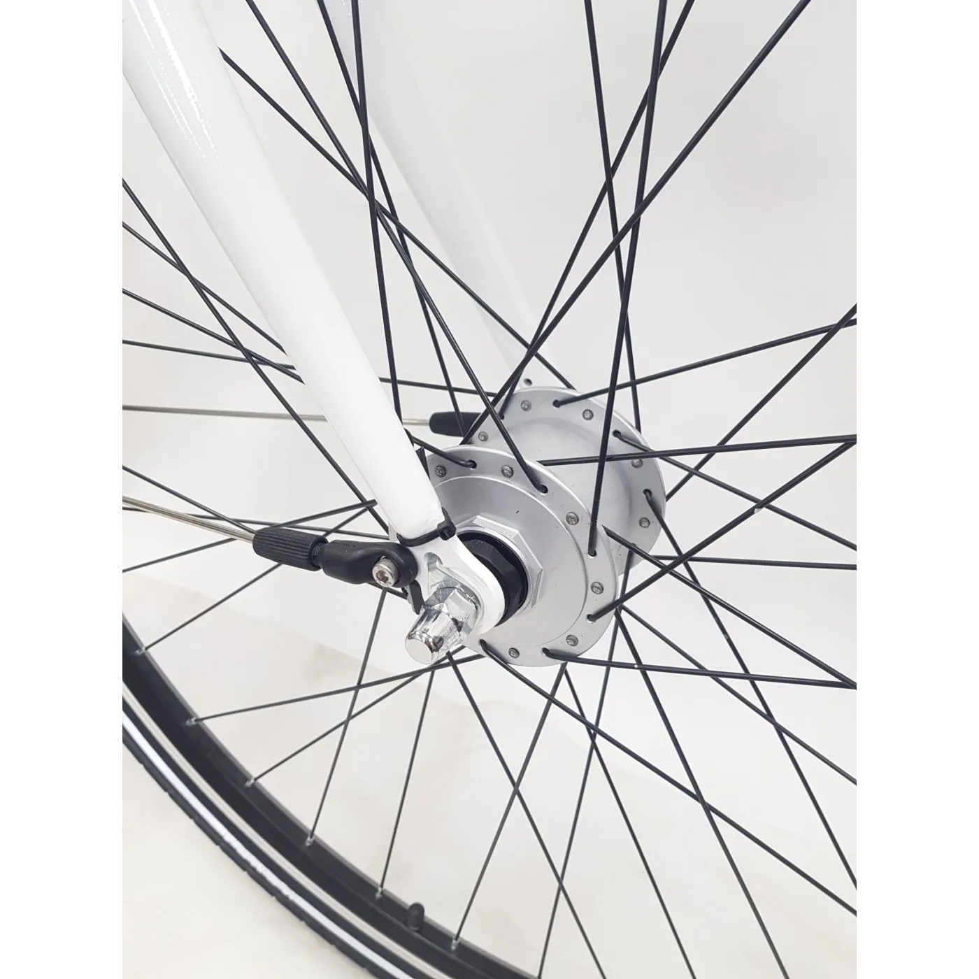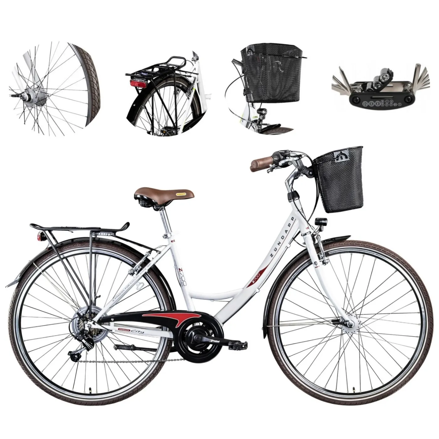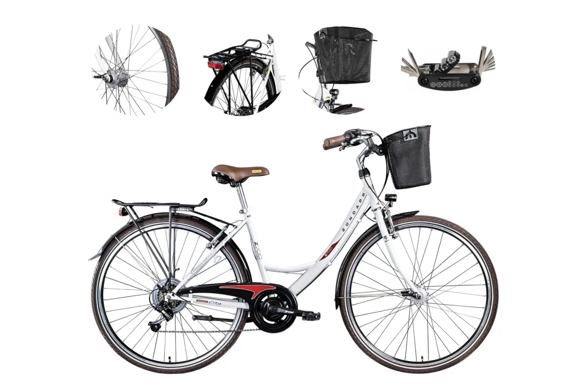 ✨ Błotniki chronią przed brudem drogowym, osłona łańcucha, bagażnik i przedni kosz zapewniają dużo miejsca do przechowywania, na przykład na zakupy. Kosz jest przymocowany do kierownicy za pomocą systemu zatrzaskowego i można go wyjąć w kilka sekund i łatwo zabrać ze sobą dzięki rączce.