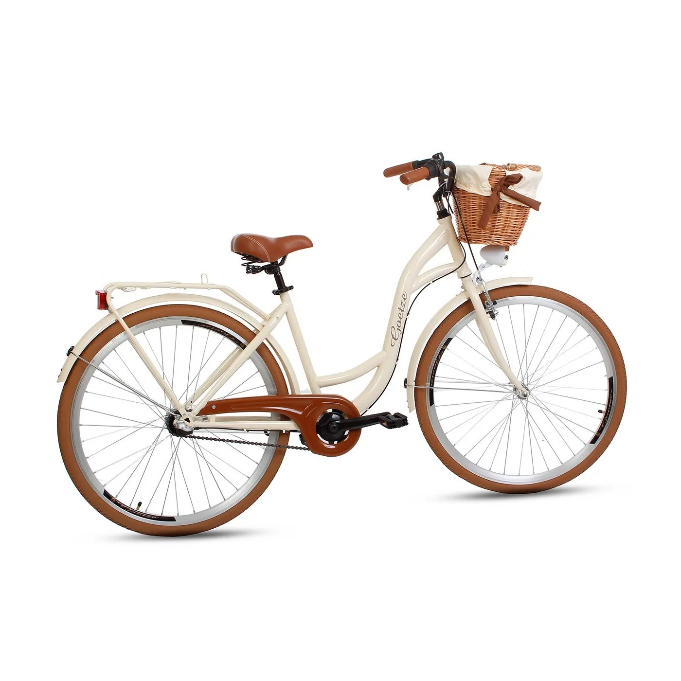 Goetze to stylowy rower miejski, który zmieni Twoje codzienne podróże w niezwykłe i ekscytujące przeżycie. Wysoka praktyczność, stabilność i ponadczasowość to podstawowe cechy Goetze. Wyposażony w 3-biegową piastę Nexus Shimano, osłonę łańcucha, bagażnik i oświetlenie. Atrakcyjny design będący wyjątkowym połączeniem stylu i elegancji.