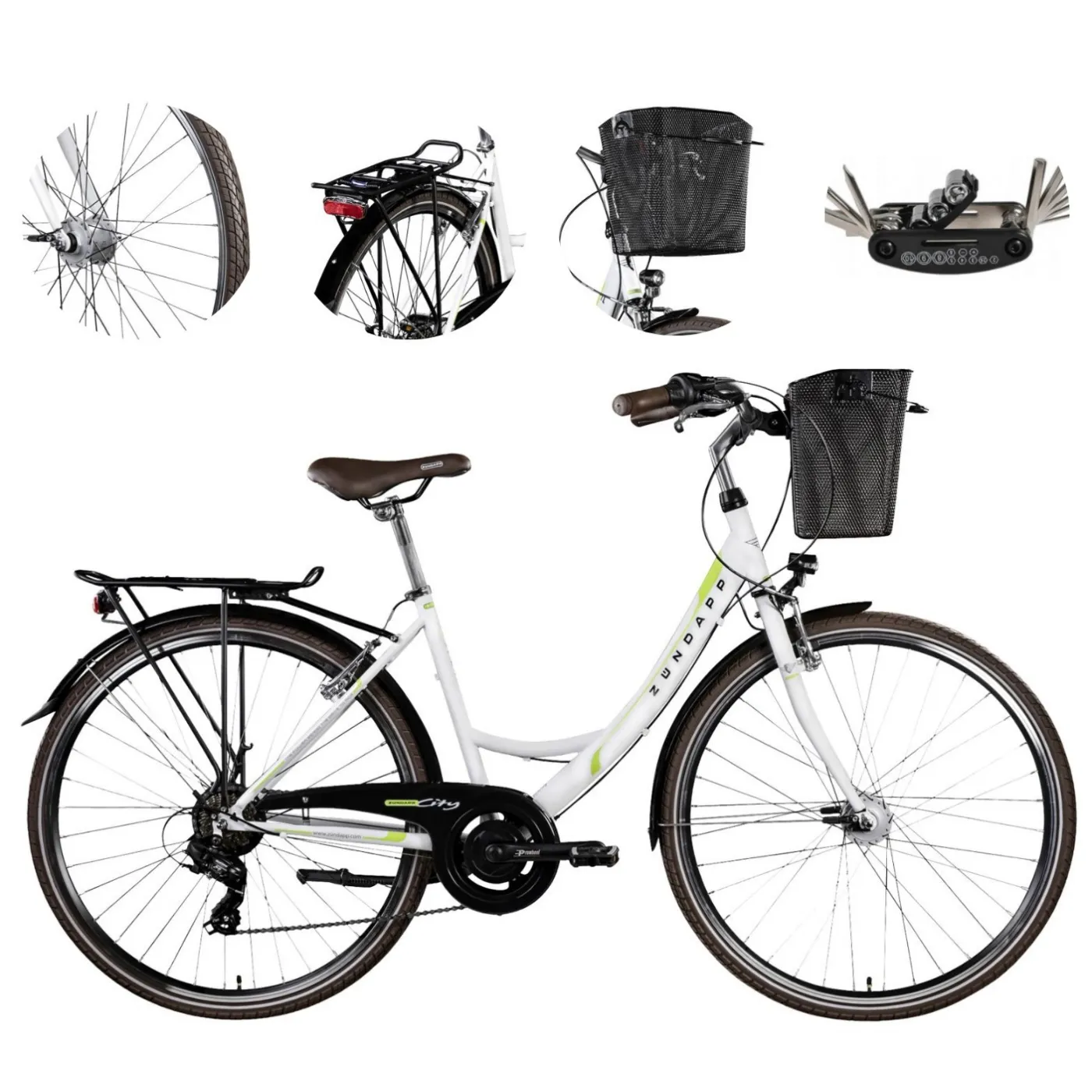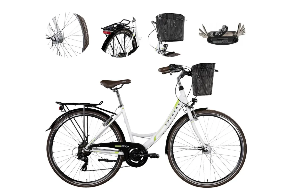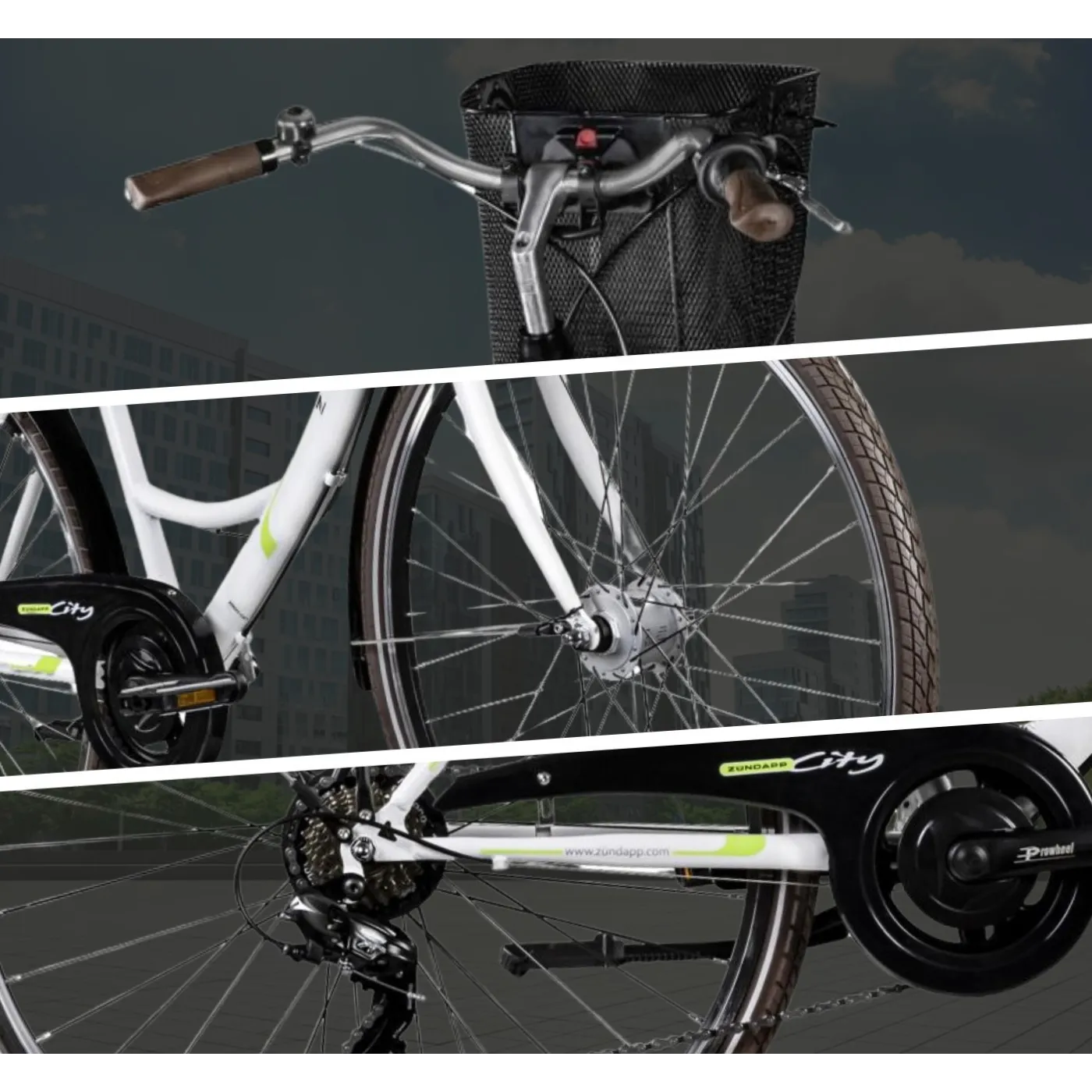 ✨ Błotniki chronią przed brudem drogowym, osłona łańcucha, bagażnik i przedni kosz zapewniają dużo miejsca do przechowywania, na przykład na zakupy. Kosz jest przymocowany do kierownicy za pomocą systemu zatrzaskowego i można go wyjąć w kilka sekund i łatwo zabrać ze sobą dzięki rączce.