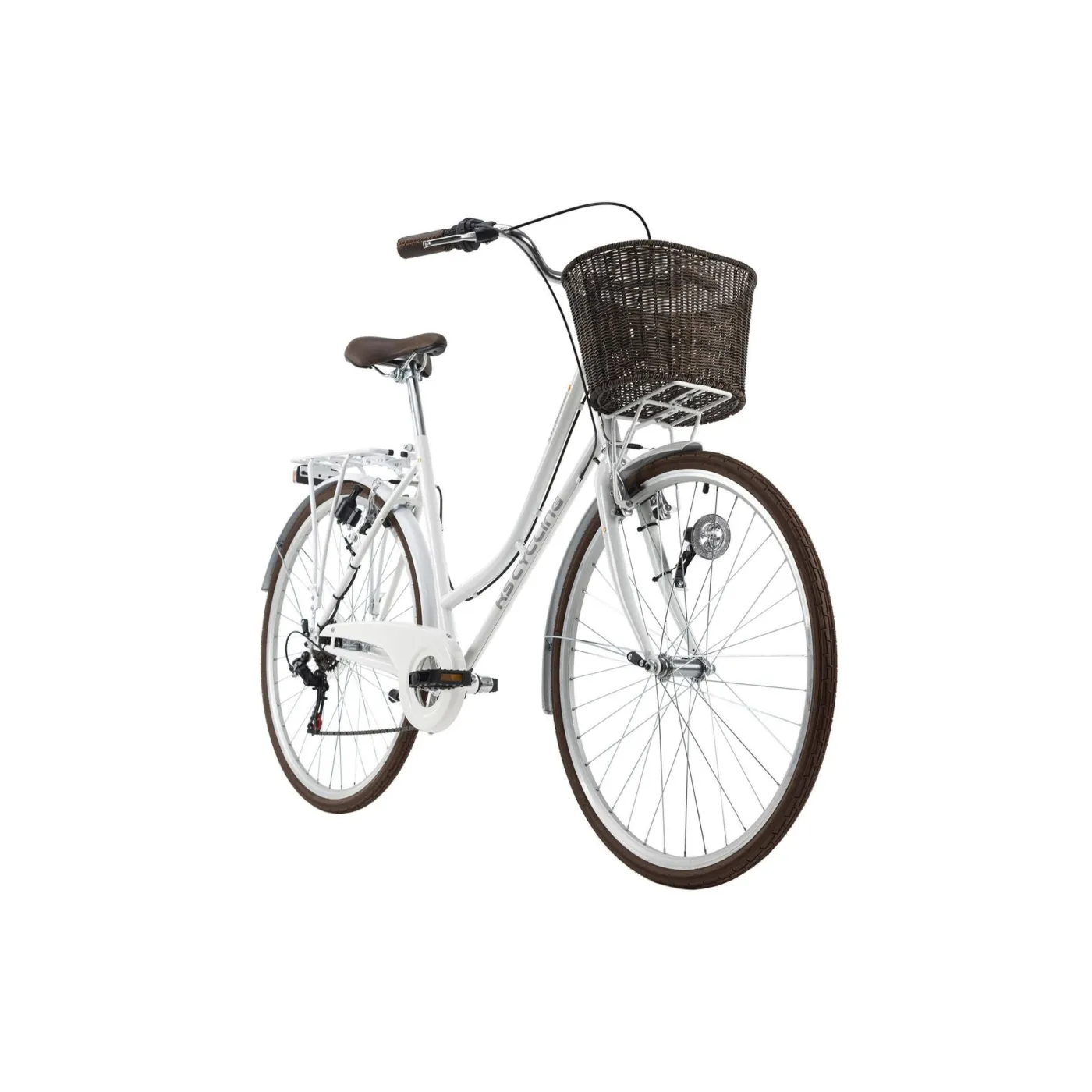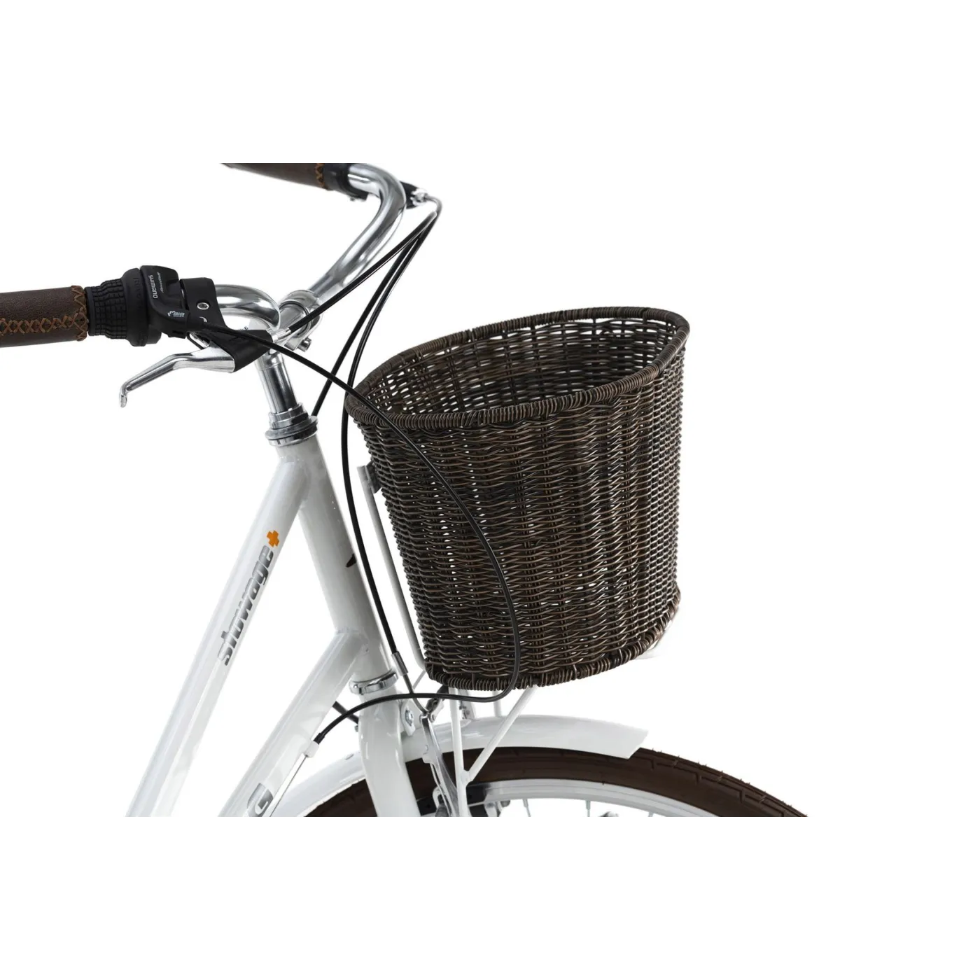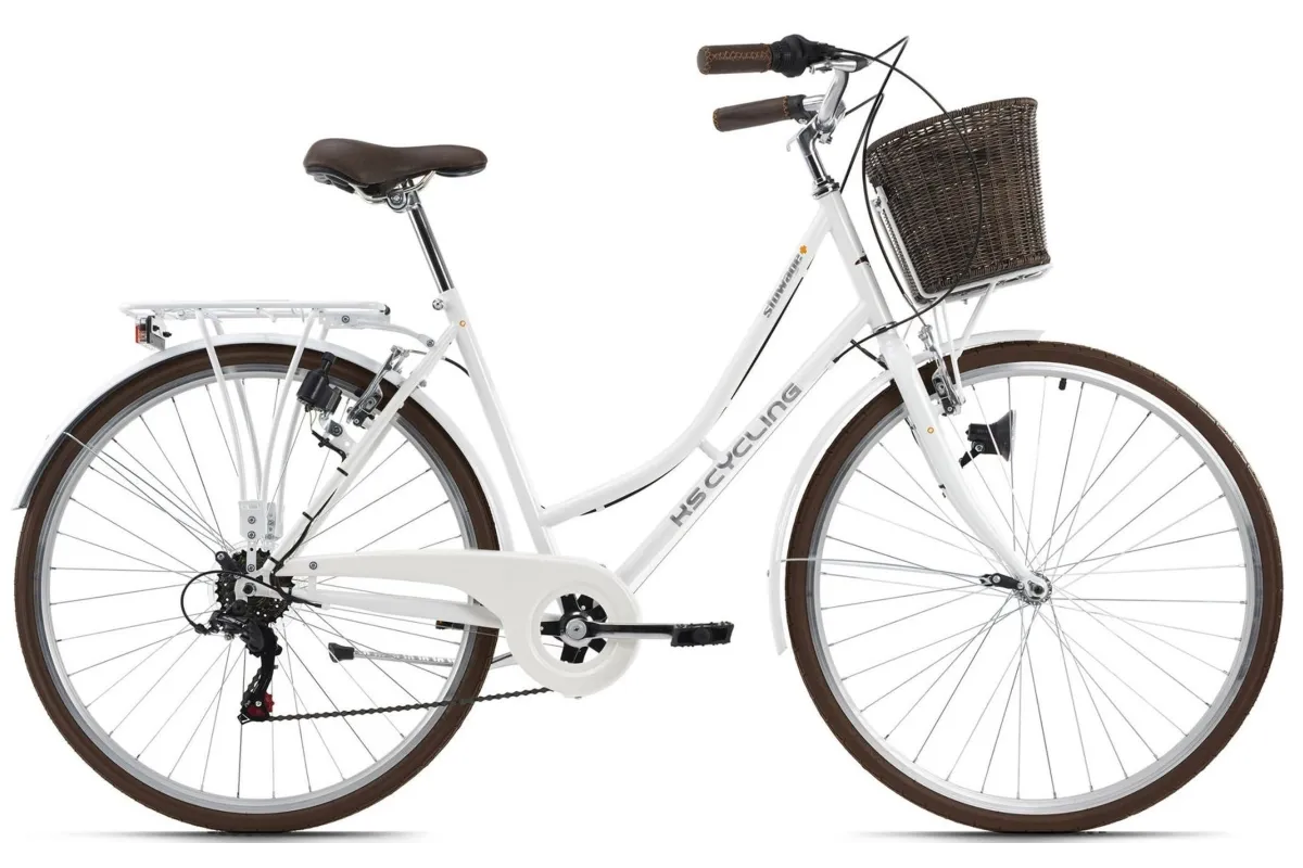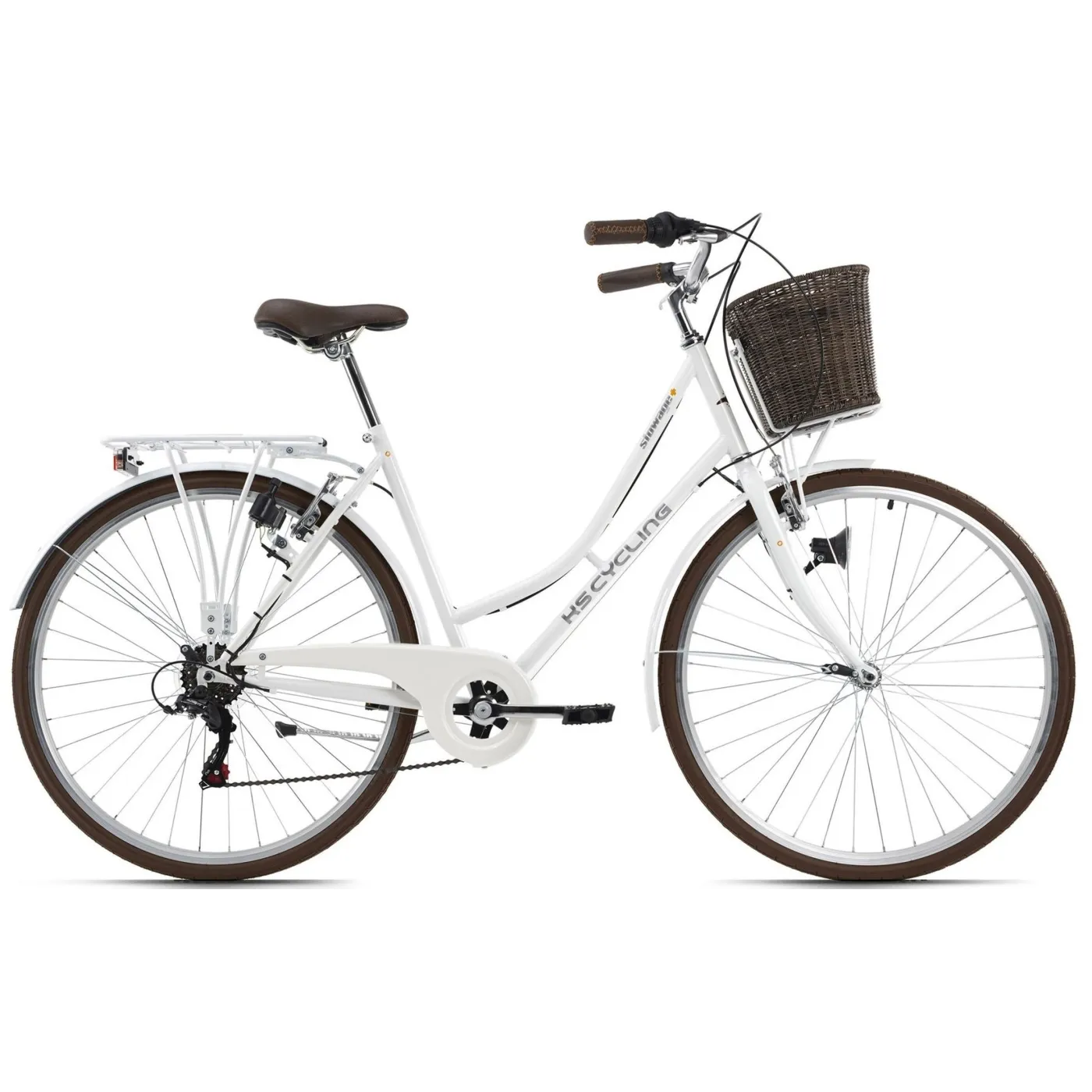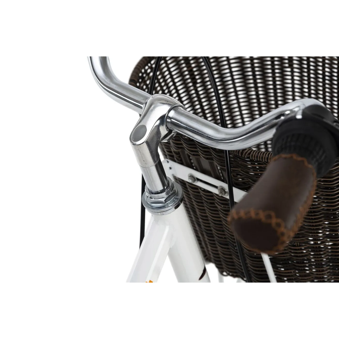 Klasyczny rower miejski w kolorze białym dla kobiet, które na co dzień funkcjonują w mieście. Stowage jest praktyczny i stylowy. Wysoka kierownica i wygodne siodełko zapewnią komfort jazdy, a szyte gripy i brązowe wykończenie dodają uroku. Rower wyposażony jest w hamulce V-brake oraz 6 biegów, dzięki którym dopasuje się do warunków miejskich. Oświetlenie zasilane przez dynamo pozwoli na podróżowanie nawet po zmroku!