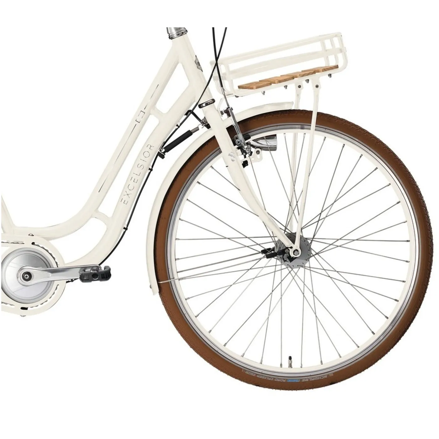 Aluminiowa rama o klasycznym kształcie "gęsiej szyi'' ma wszystko, co jest praktyczne w życiu codziennym, ale przede wszystkim kontynuuje elegancki wygląd podczas jazdy: wyprostowana i wygodna pozycja, zapewnia komfort jazdy. Szerokie siodło, ergonomicznie ukształtowane rączki i szerokie opony, które również filtrują nierówności kostki brukowej i polnych dróg, dopełniają rower. Na takie wycieczki po mieście i na wsi piasta Shimano Nexus z trzema biegami do wyboru zapewnia odpowiednie przełożenie dla żądanej prędkości.