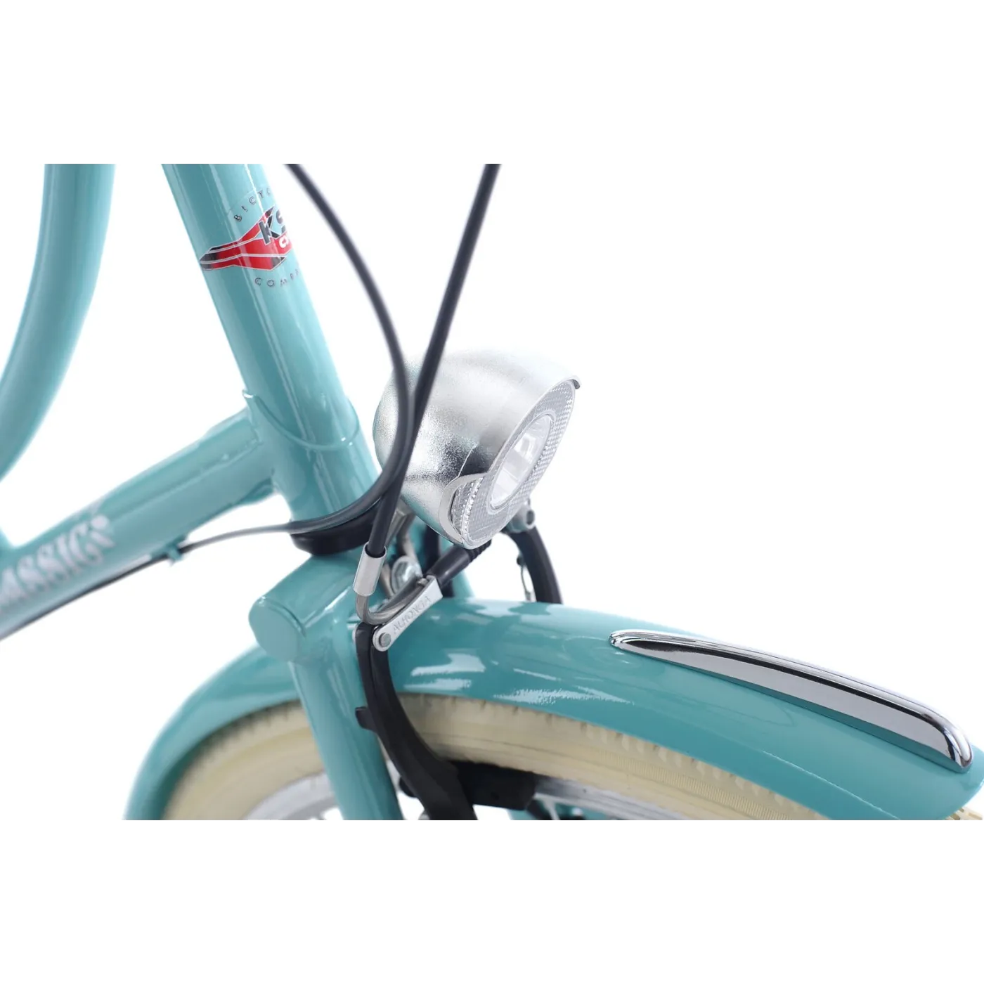 Cechą charakterystyczną holenderskiego roweru jest osłona na łańcuch i tylny stojak. Wygodne siodełko miejskie, przedni hamulec V-Brake i hamulec nożny, a także oświetlenie LED dopełniają ten ponadczasowy klasyk. Na bagażniku możesz wygodnie przewozić zakupy. Rower ma zalety, które sprawiają, że jest klasyczną holenderką... Wysoka, szeroka kierownica zapewnia wygodną, pionową pozycję siedzącą i dobrą kontrolę nad rowerem, co sprawia że podróżowanie jest przyjemne.