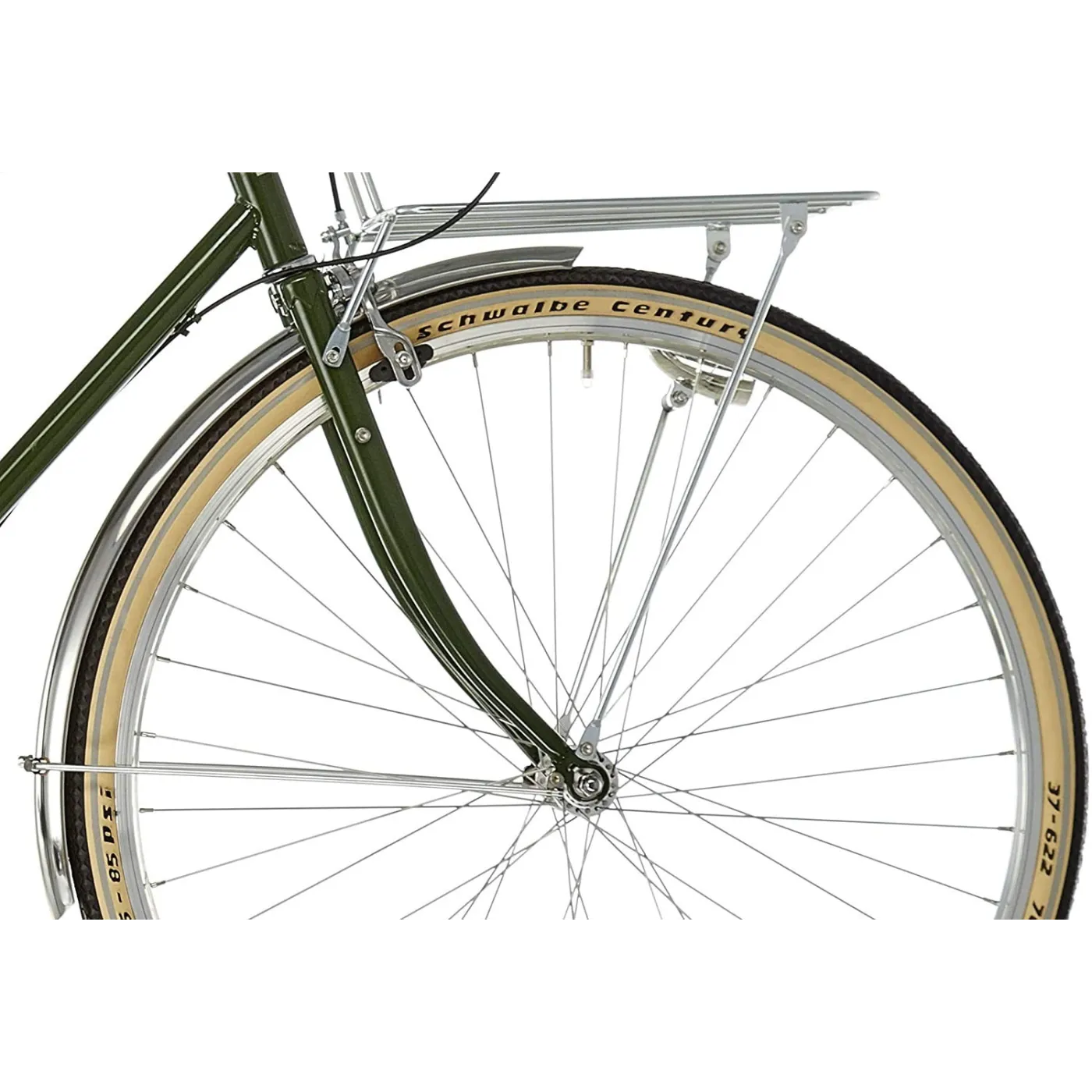 Oferuje miejskim rowerzystom ten praktyczny i elegancki rower, aby mogli pewnie i stylowo przemierzać ulice oraz ścieżki rowerowe w mieście. To znacznie więcej niż atrakcyjny wygląd. Najwyższej jakości komponenty zaowocowały sprzętem, na którym możesz polegać. Wzmocniona stalowa rama, wytrzymałe i komfortowe siodło, wydajne oświetlenie oraz niezawodne hamulce zapewnią Ci wygodę i bezpieczeństwo.