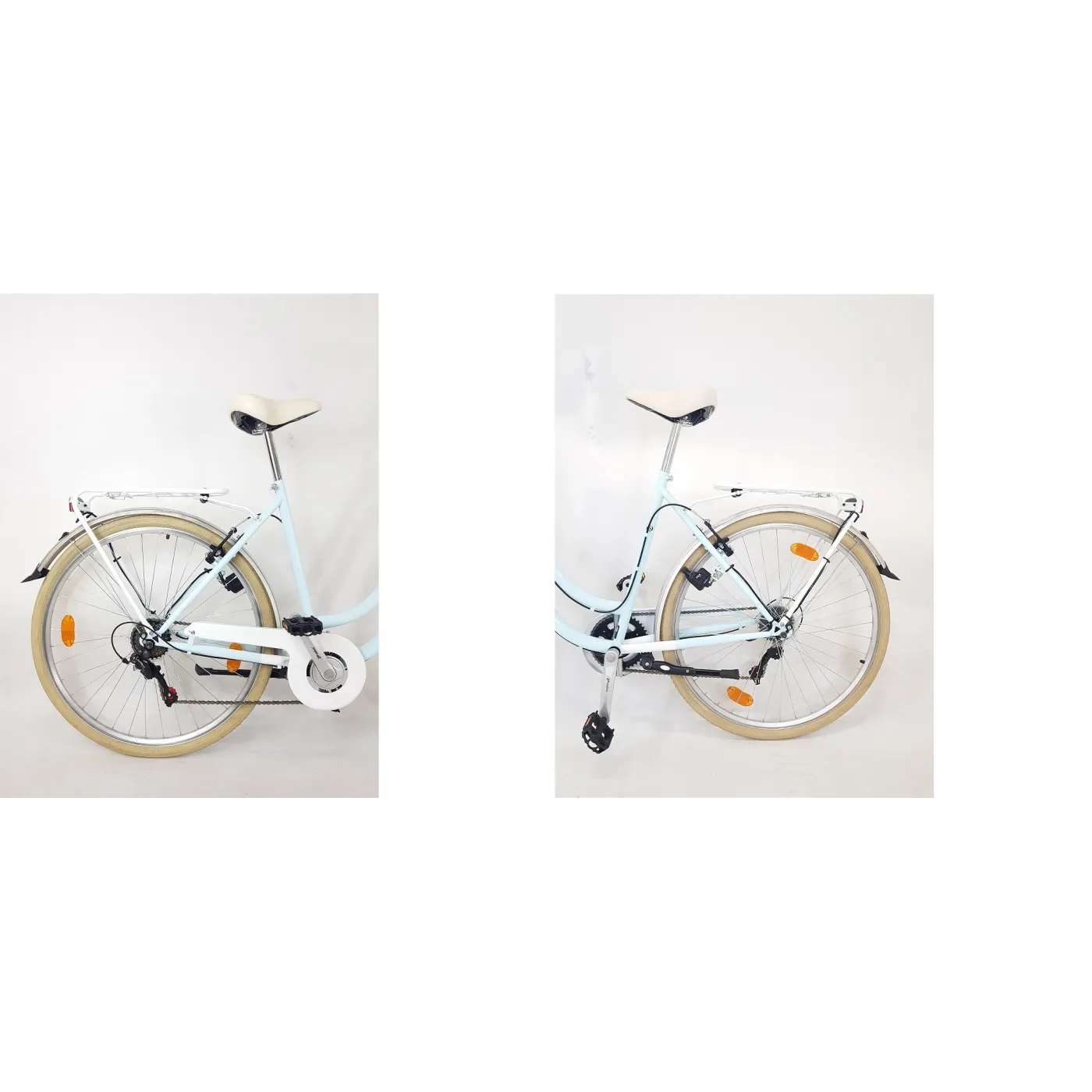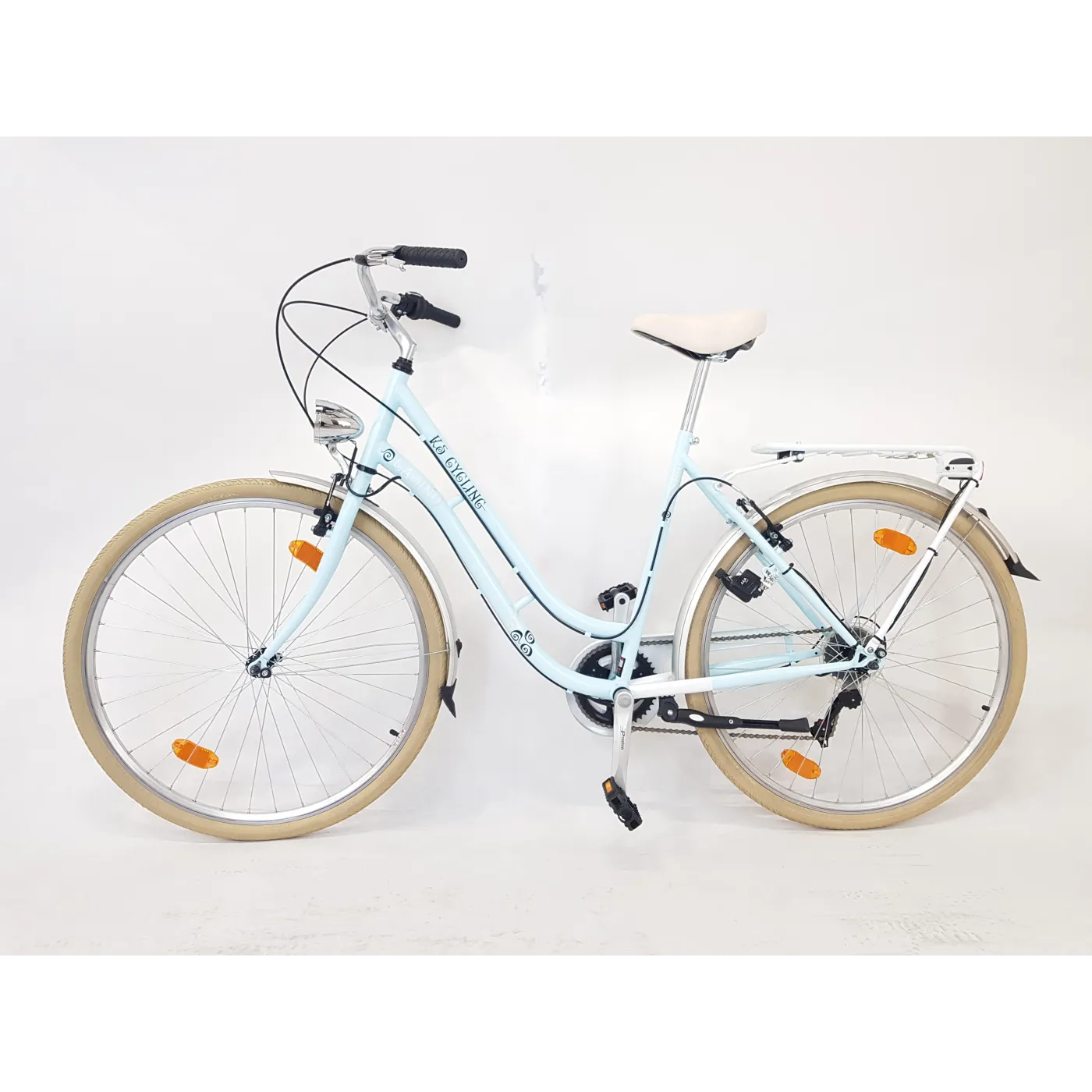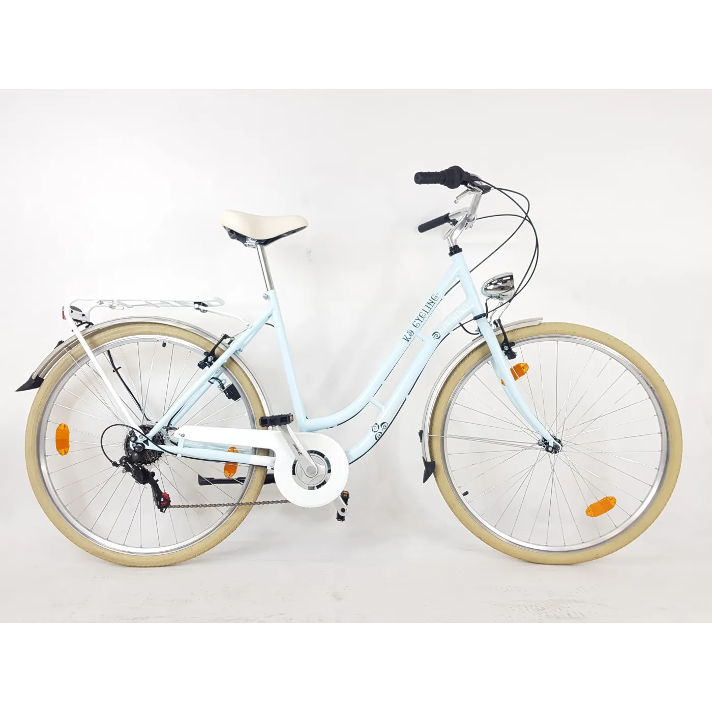 Damka ta urzeka swoim retro wyglądem, a jednocześnie wpasowywuje się w najnowsze trendy. Połączenie naturalnych beżów z pięknym pastelowym niebieskim kolorem sprawia ze rower miejski Casino jest wyjątkowy. Model wykonany został z wytrzymałej stali, a do tego w zestawie znajduje się równie przydatne oświetlenie oraz bagażnik.