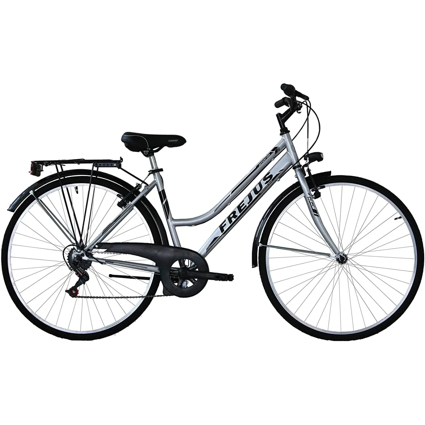 Frejus Storm ma sztywną stalową ramę, 6- biegową przerzutkę oraz przedni hamulec typu V-Brake. Nie oszukujmy się, ale w środowisku miejskim nie potrzeba skomplikowanych widelców czy zawieszenia. Z pewnością docenisz lżejszą wagę z każdym ruchem pedału.