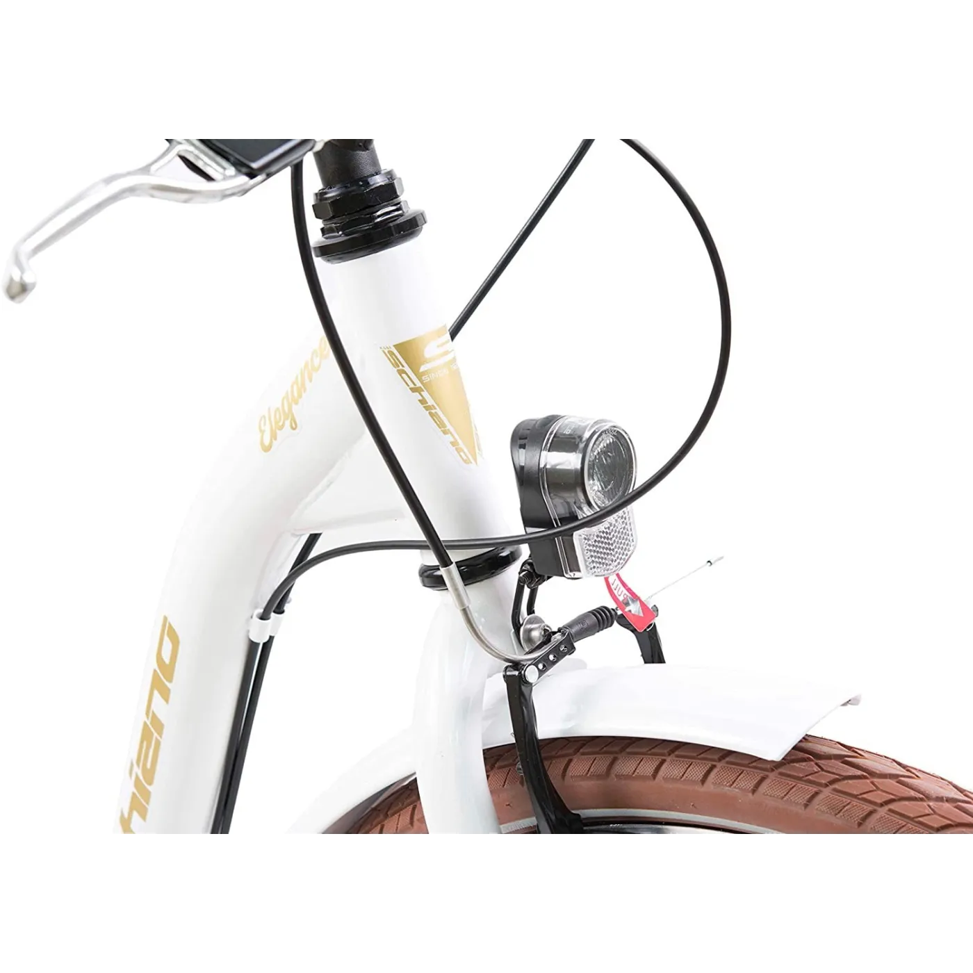 Klasyczny rower miejski w kolorze białym dla kobiet, które na co dzień funkcjonują w mieście. Elegance jest praktyczny i stylowy..