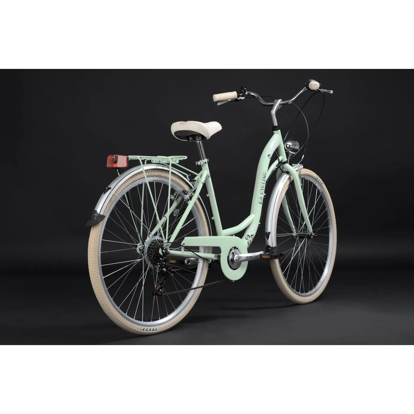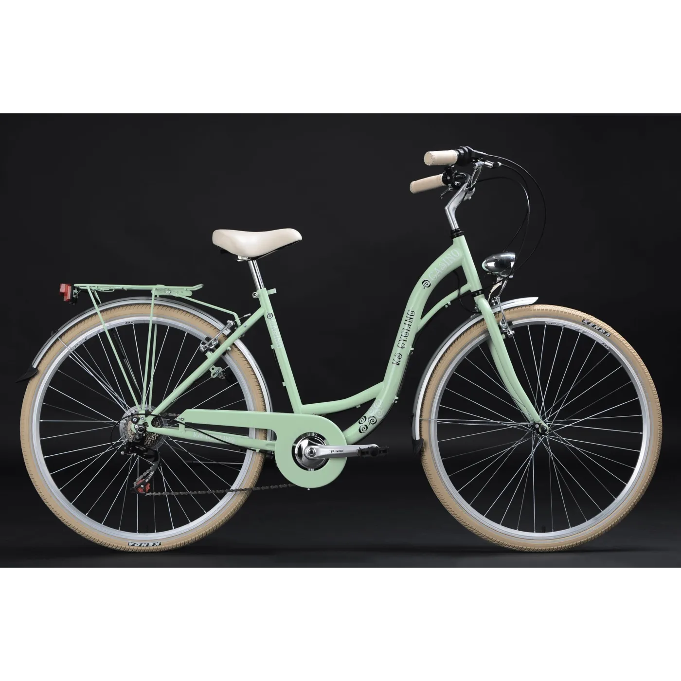 Duże 28-calowe koła i piękne jasne dodatki w stylu retro sprawią, że podążając ulicami miasta przykujesz uwagę wielu osób. Ponadto gwarantowana wygoda i niezawodność, dzięki świetnej specyfikacji technicznej sprawi, że każda przejażdżka będzie komfortowa, a także bezpieczna dzięki wyposażeniu w światła zasilane dynamo oraz w hamulce V-Brake - gotowe w każdej sytuacji.