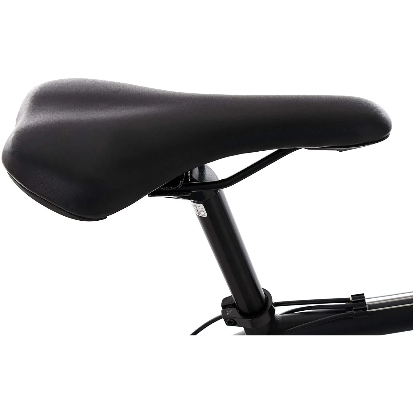 Miejski rower w kolorze czarnym skomponowany tak, by zachwycał jednocześnie swoim wyglądem i funkcjonalnością.