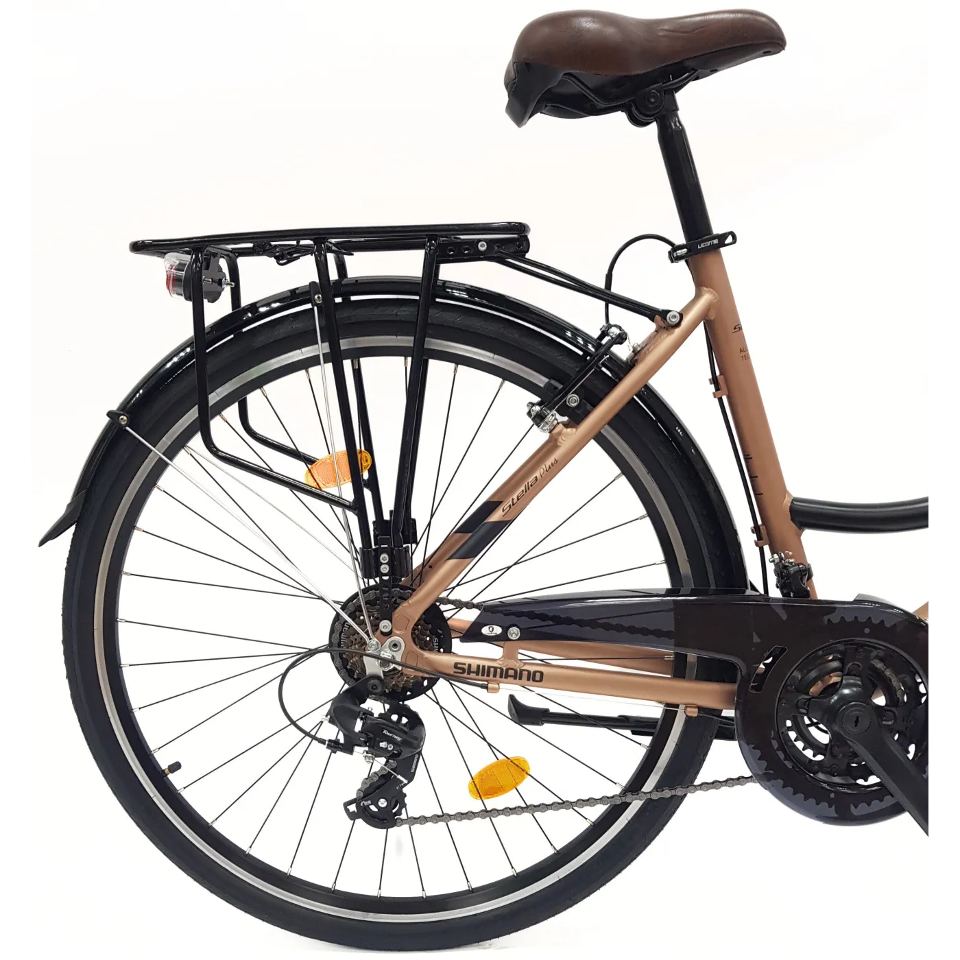 🏙️ Licorne Stella Gold to idealny wybór dla tych, którzy pragną odkrywać miejskie zakątki w stylu i komforcie. Jego solidna, aluminiowa rama sprawia, że jazda jest nie tylko przyjemna, ale również wygodna. Dzięki przemyślanej konstrukcji, rower doskonale radzi sobie z codziennymi dojazdami oraz weekendowymi wyprawami.