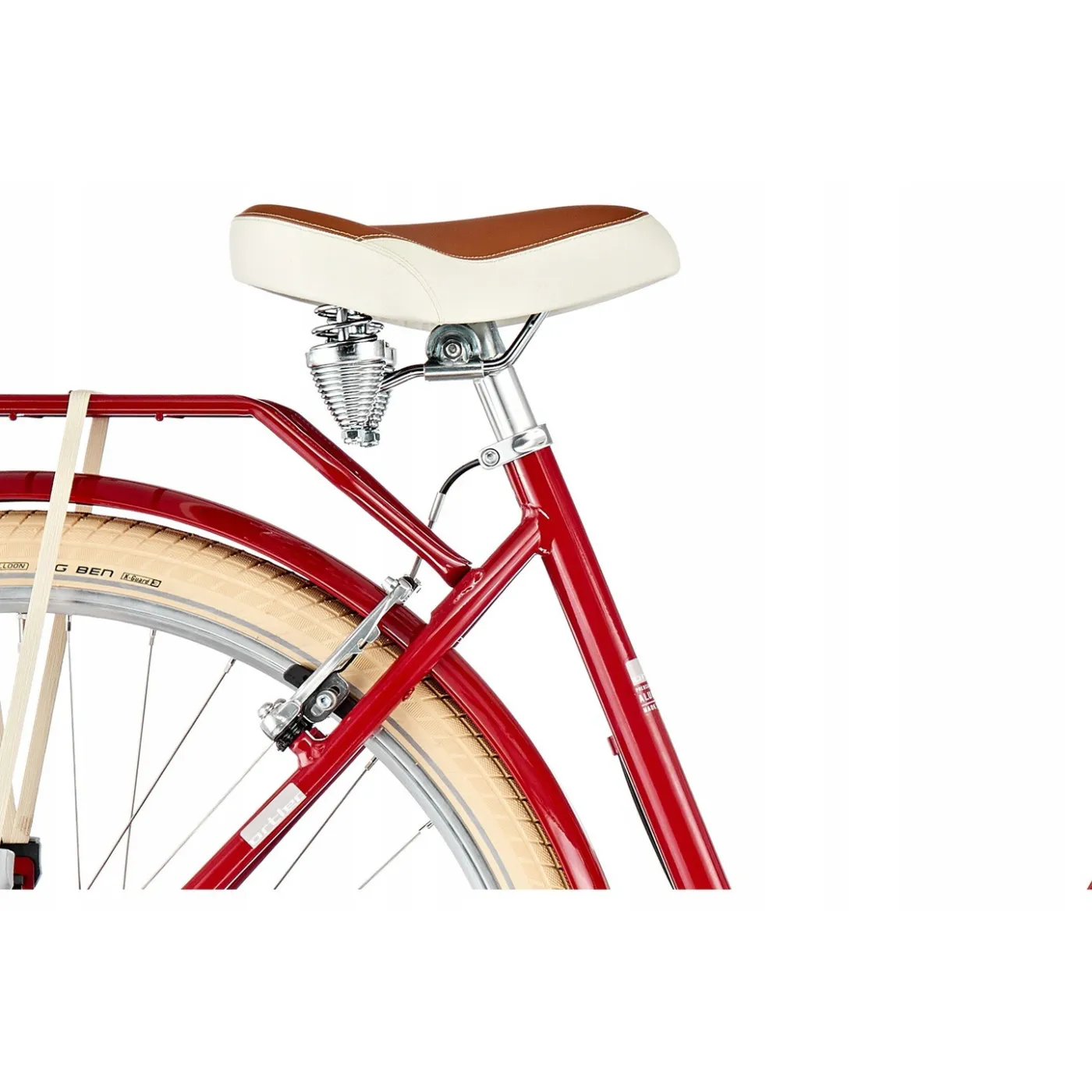 Elegancko zakrzywiona rama, solidny bagażnik czy osłona łańcucha to jedne z jego wielu zalet, którymi może się pochwalić. Mocny czerwony kolor przywołuje na myśl ciepłe dni i codzienne przejażdżki na świeżym powietrzu - dlatego też jest tak wyjątkowy. Oprócz pięknego wyglądu jest równie funkcjonalny i posłuży nawet na kilka lat.