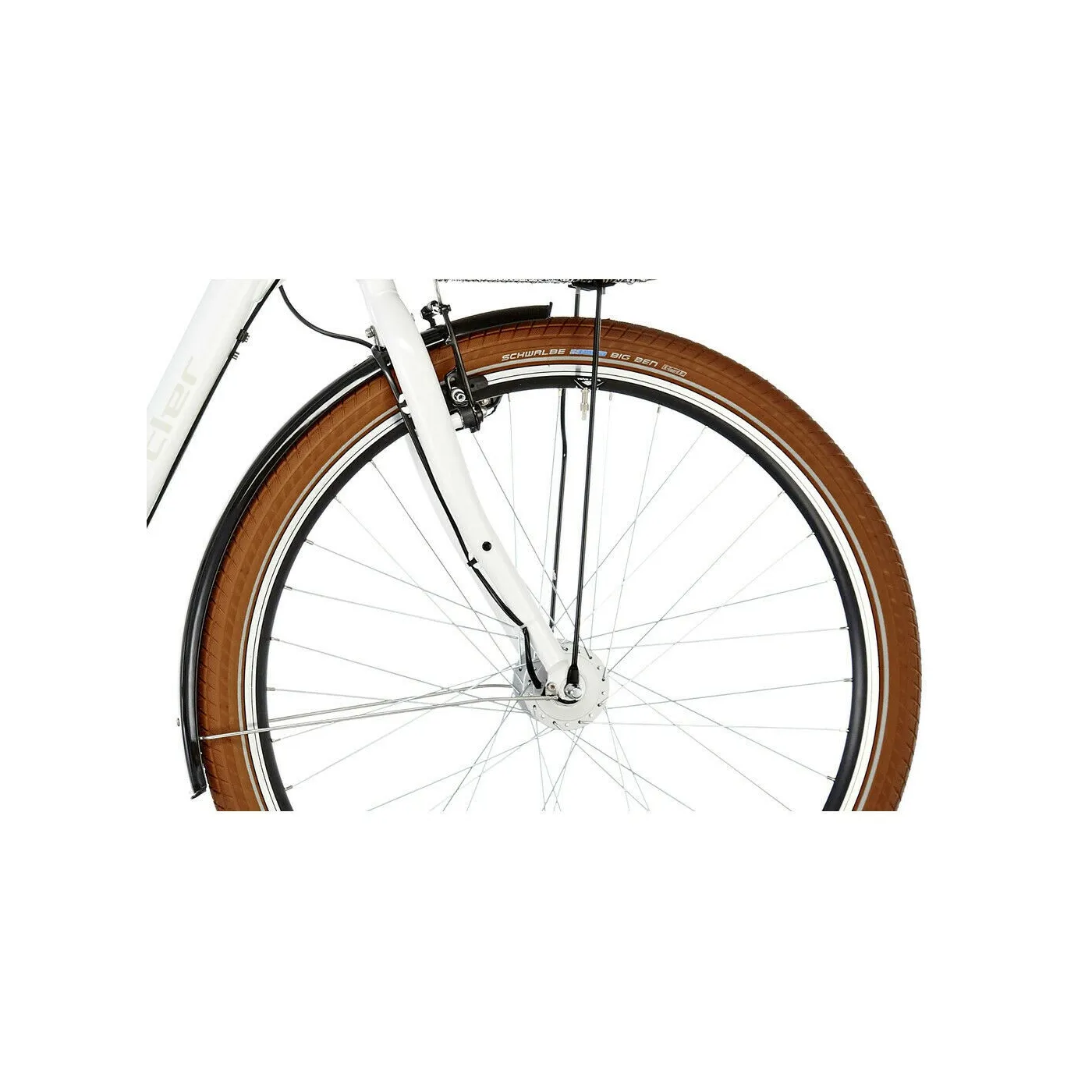 To udane połączenie nowoczesnego, eleganckiego roweru miejskiego z brązowymi retro dodatkami. Pozwala na podróżowanie w wygodnej, wyprostowanej pozycji siedzącej, dzięki czemu mniejsze czy większe podróże będą czystą przyjemnością. Klasyczna miejska kierownica z regulowanym mostkiem umożliwi indywidualną regulację pozycji.