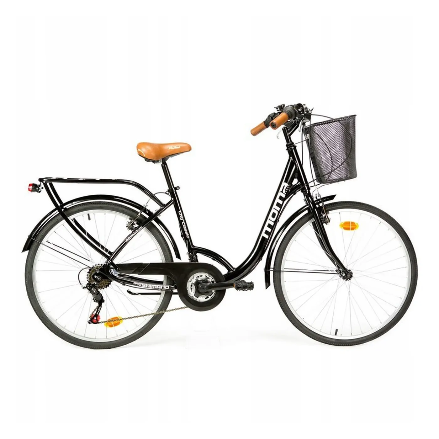 Bardzo lekka aluminiowa rama o klasycznym designie oraz akcesoria, których może potrzebować każdy miłośnik rowerów miejskich. Całość uzupełniają eleganckie detale takie jak wygodne, duże siodełko oraz gripy imitujące skórę.