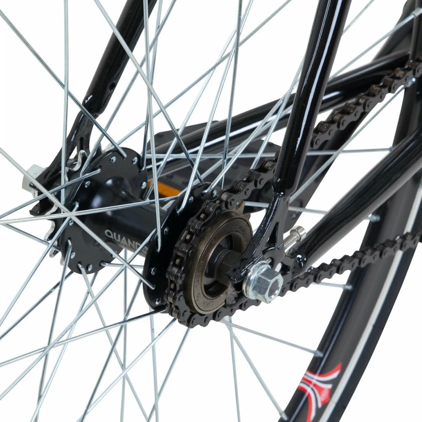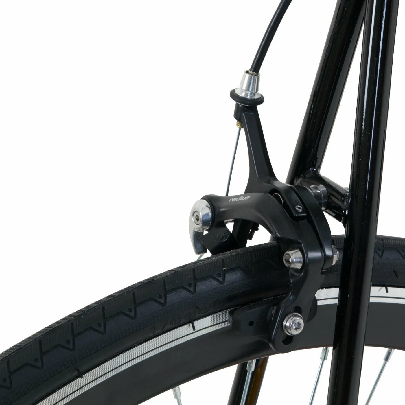 Dzięki cienkiej ramie ze stali o dużej wytrzymałości na rozciąganie oraz przednim i tylnym hamulcom dual pivot z podwójną osią, rower porusza się po mieście jak strzała. Rower jednobiegowy stoi na oponach 700c x 28c, które rozciągają się wokół aluminiowych obręczy dwuściennych.
