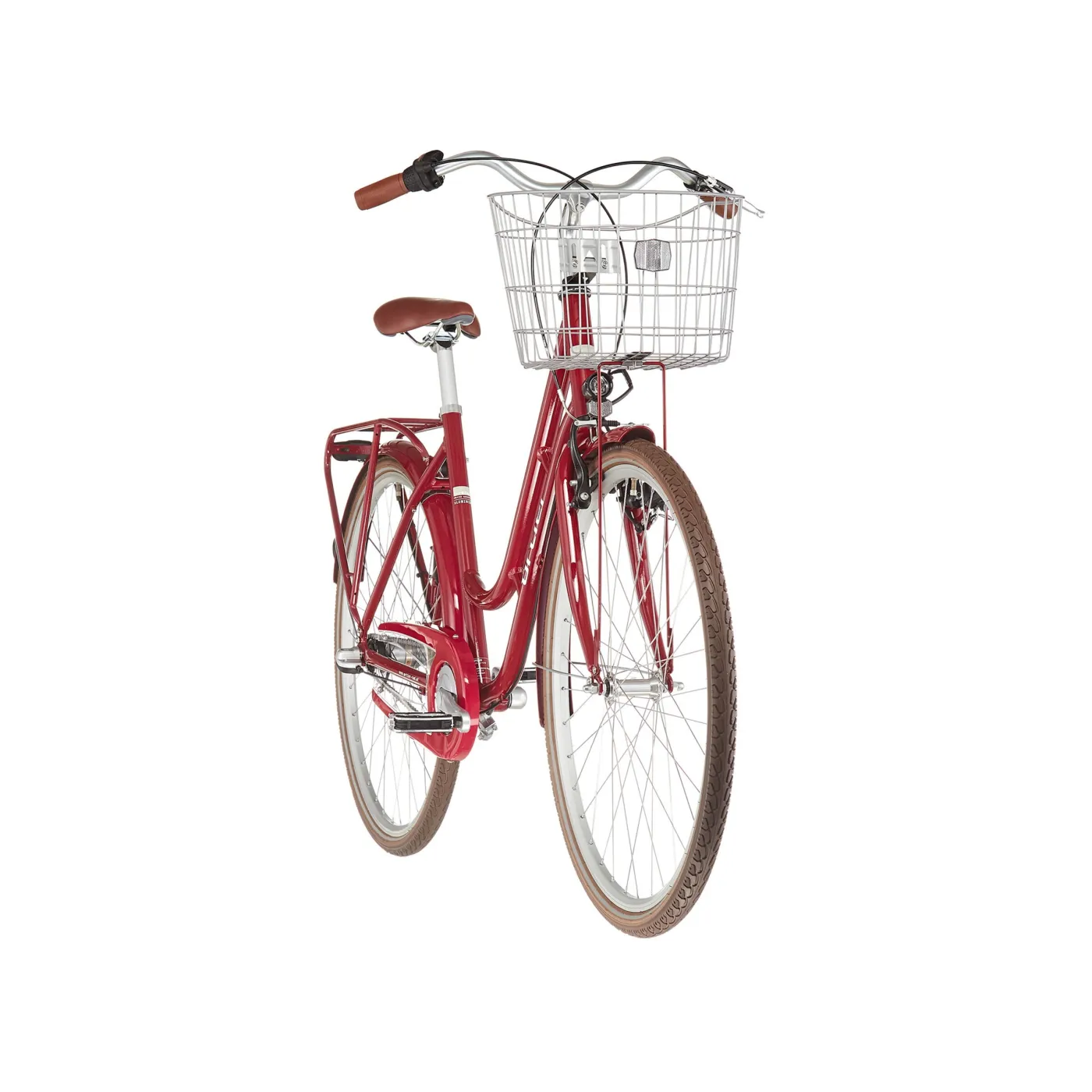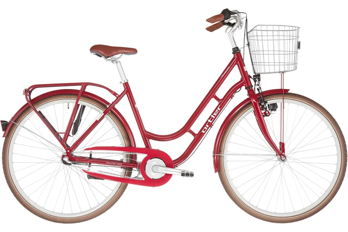 Czerwony, stylowy rower miejski z 7-biegową przerzutką Nexus to niezawodny towarzysz codziennych przejażdżek. Nisko opuszczona, zaokrąglona aluminiowa rama zapewnia komfort i elegancki wygląd całości. Idealnym wykończeniem estetycznej formy są dopasowane błotniki, osłona łańcucha i bagażnik w kolorze ramy. Wyprostowana pozycja siedząca oraz wygodne siodełko, zaokrąglona kierownica i ergonomiczne chwyty to gwarancja doskonałej widoczności i komfortu, które są tak ważne w dynamicznym ruchu miejskim. Dzięki dołączonemu do roweru pojemnemu koszykowi nad przednim kołem z łatwością i wygodnie przewieziesz niezbędny bagaż.