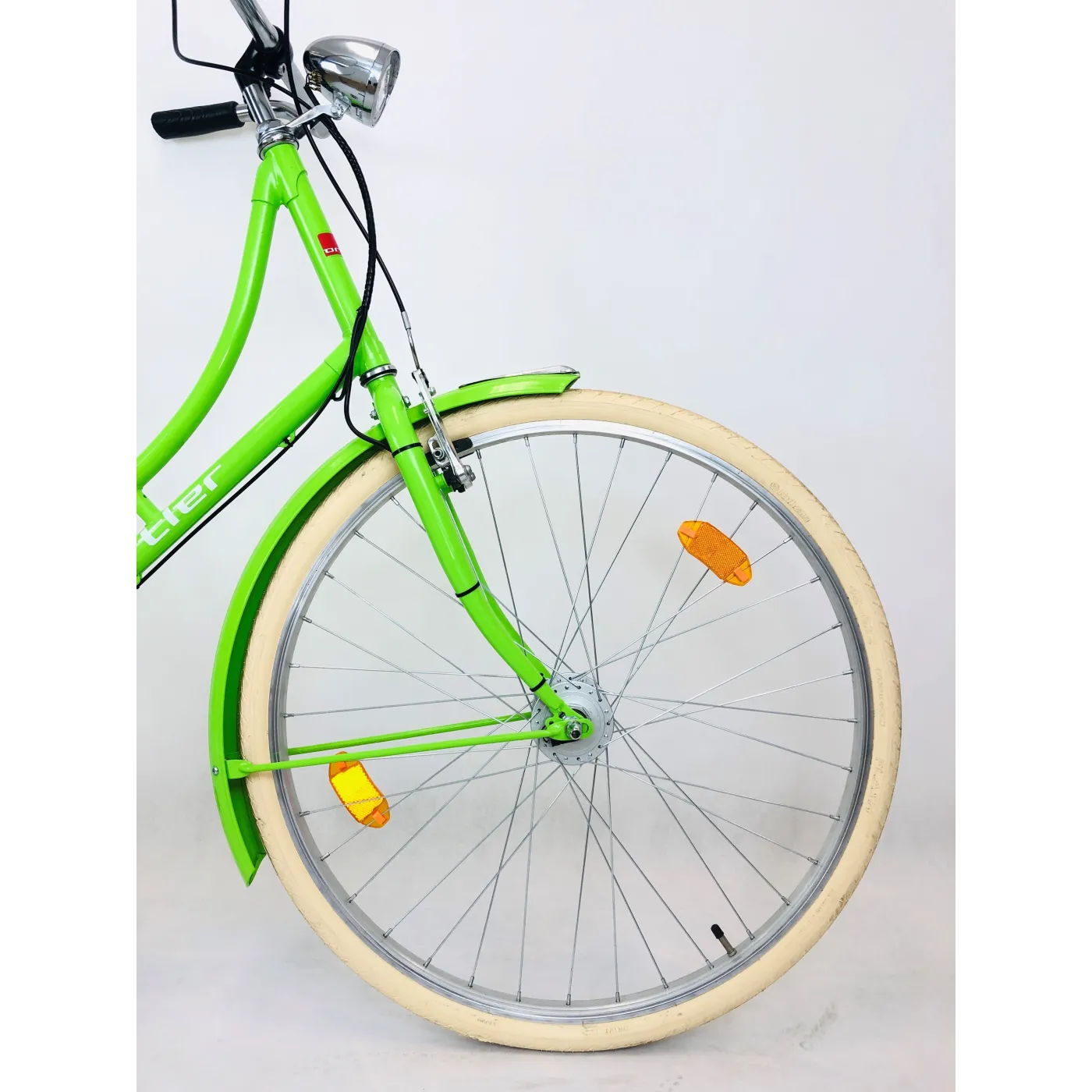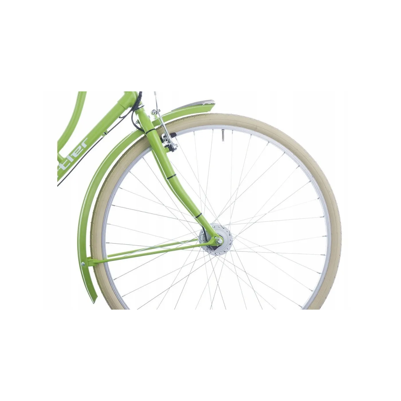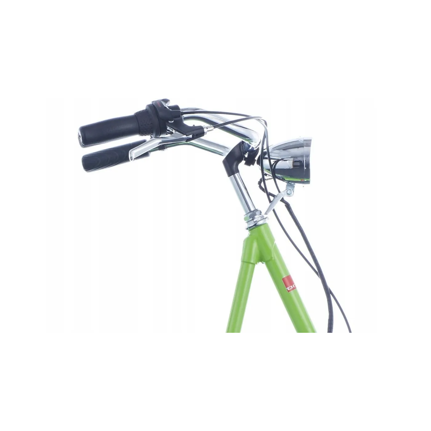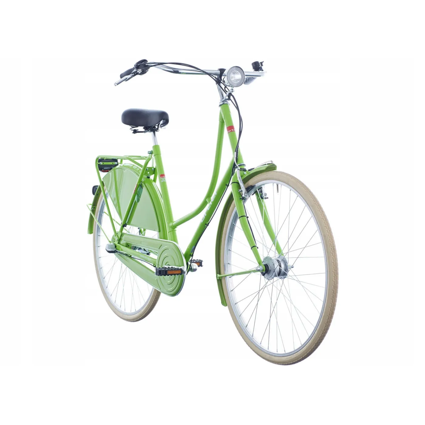 Ponadczasowy design w połączeniu z solidnym wykonaniem sprawiają, że ten miejski rower to absolutny klasyk. Van Dyck ma tradycyjną konstrukcję ze stalowej ramy w żywym, zielonym kolorze, który na myśl przywodzi wiosenne i letnie dni.