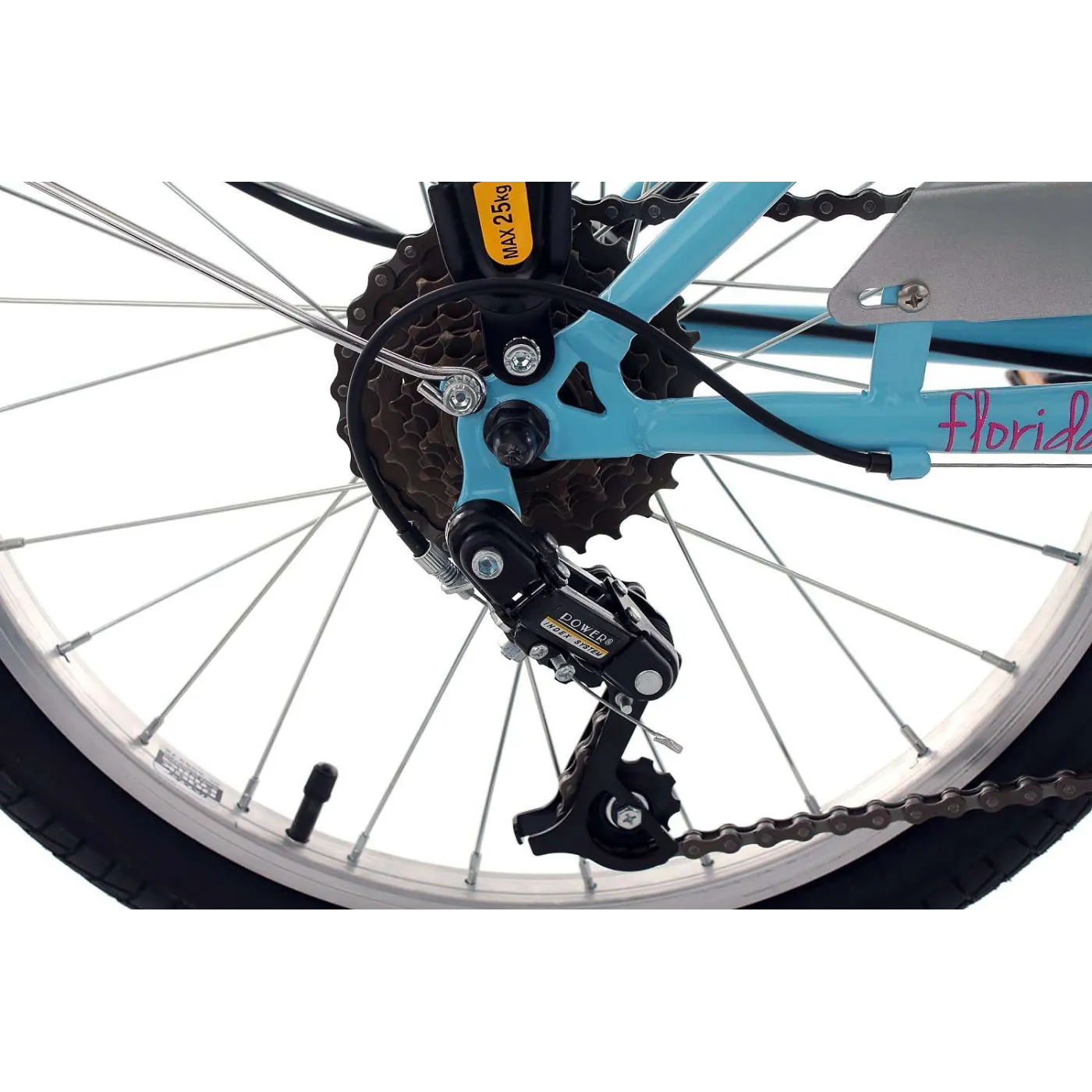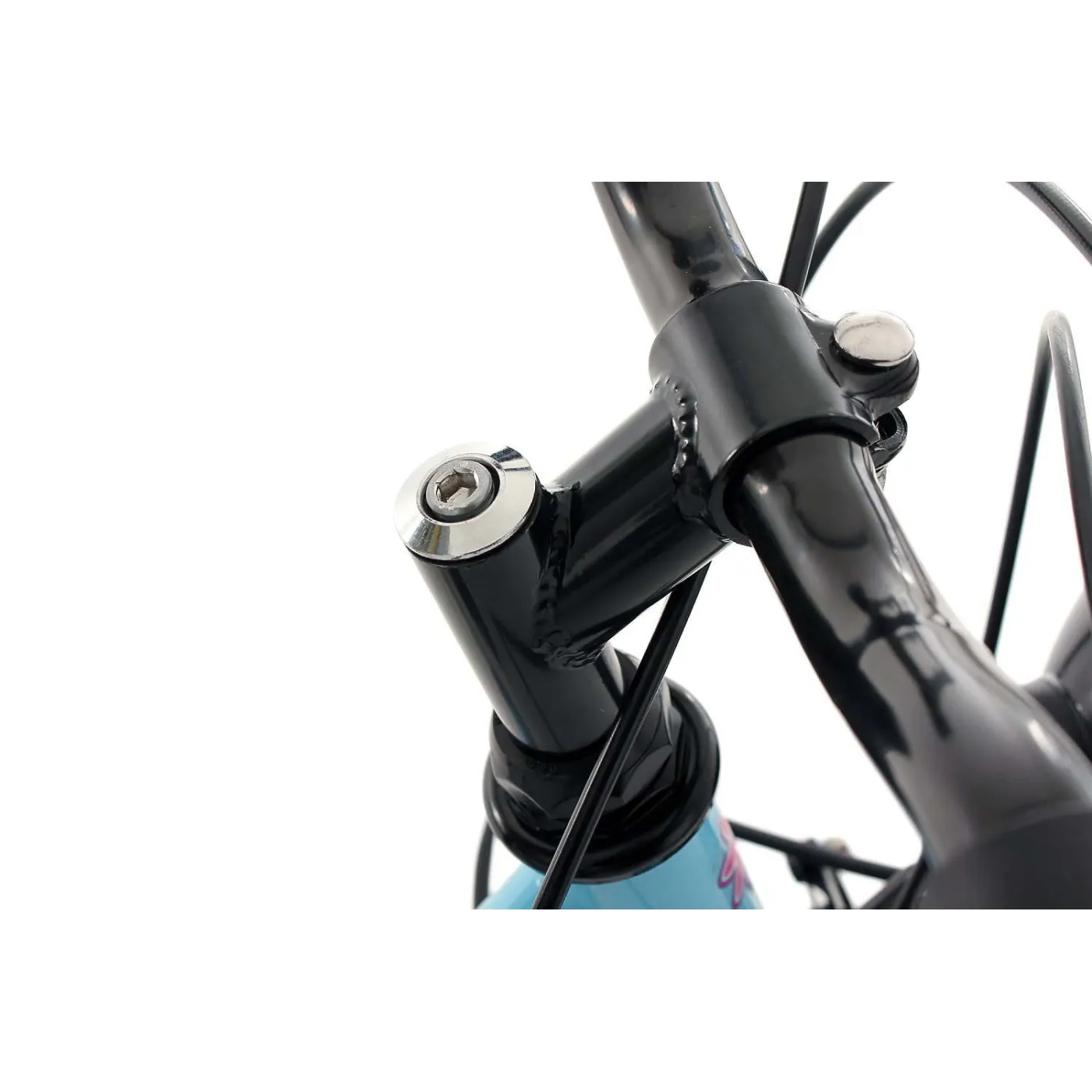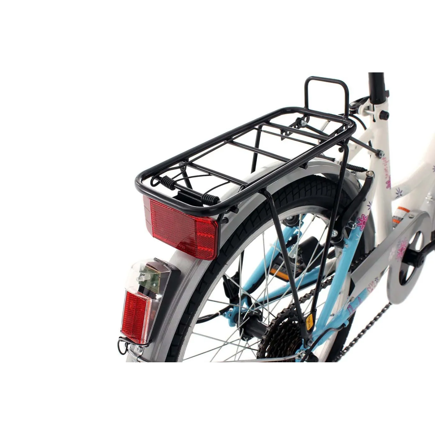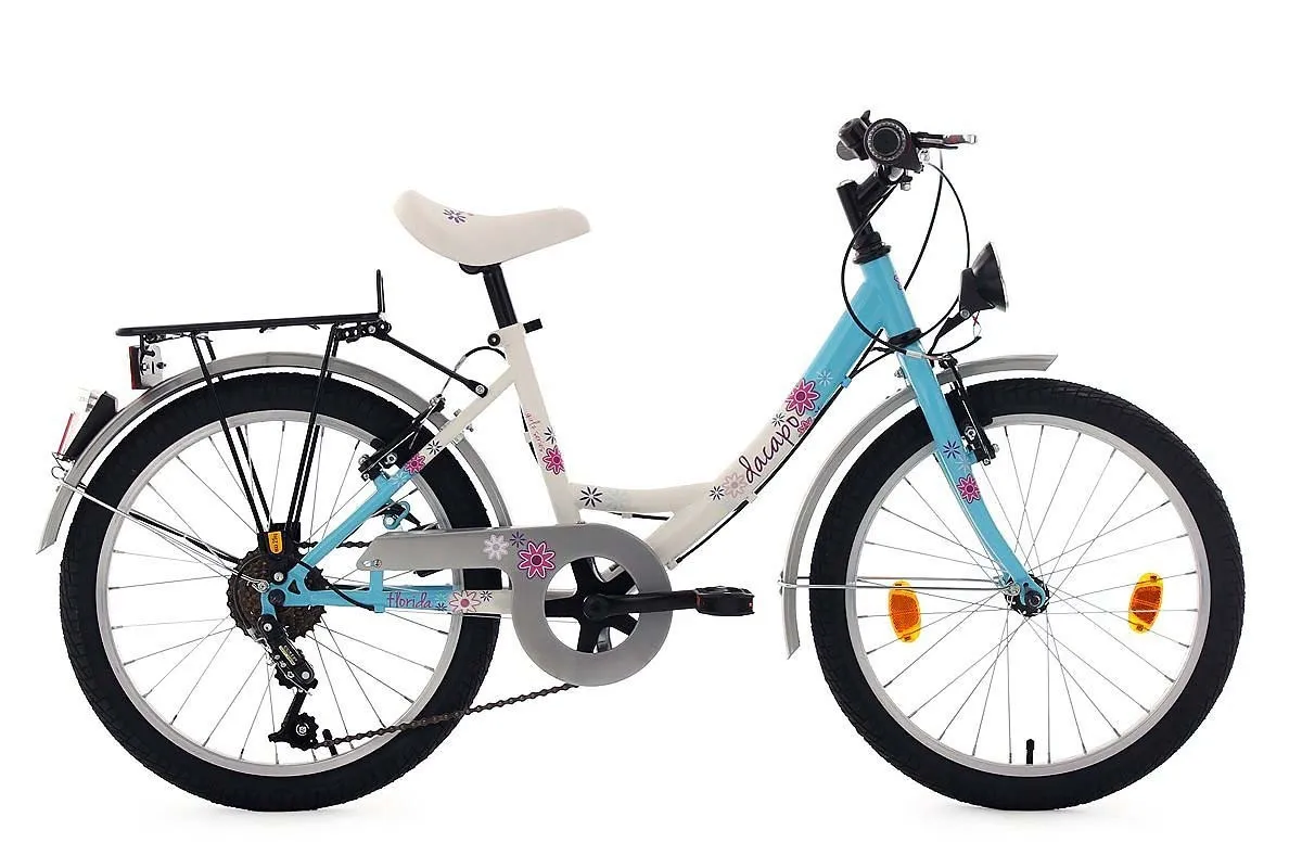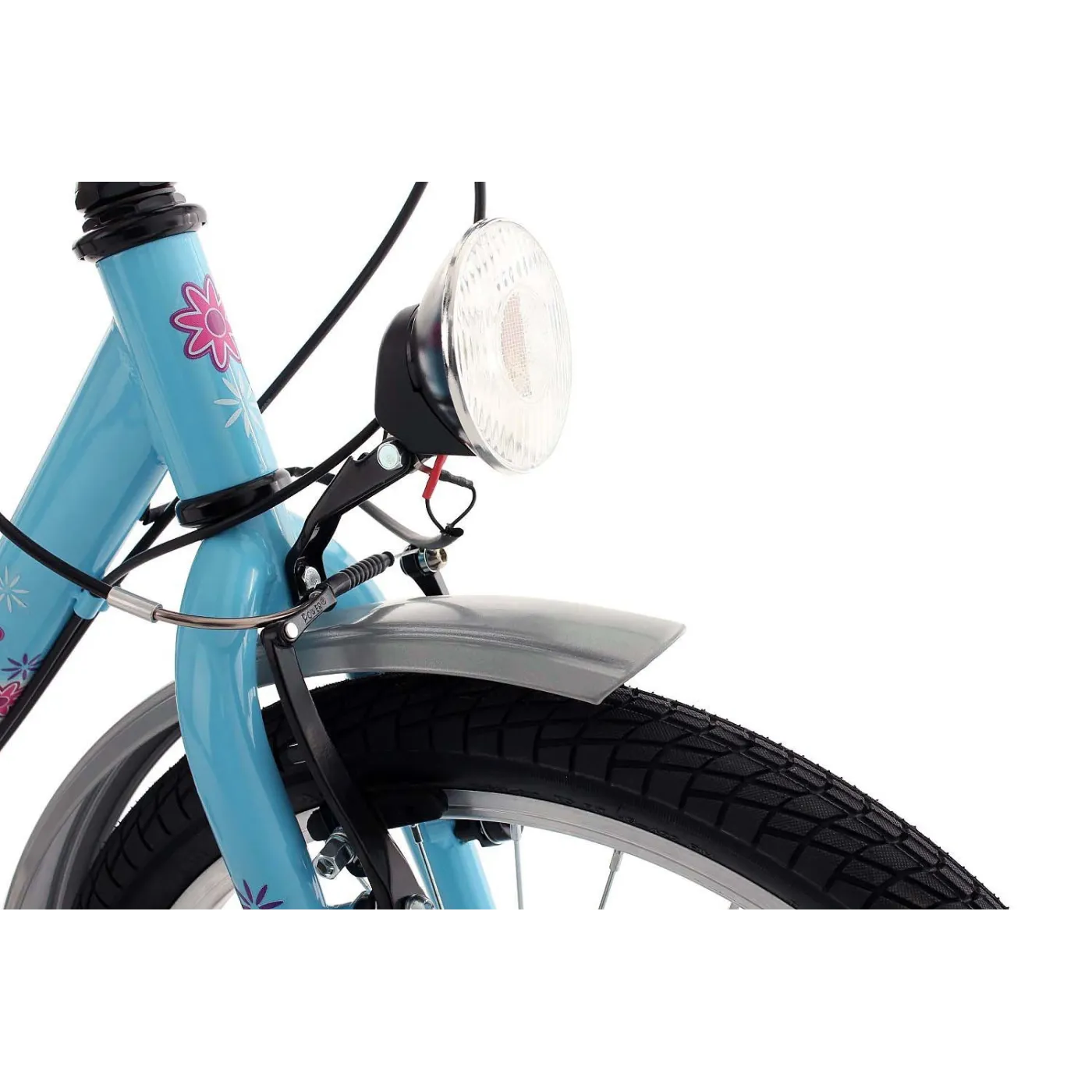 Piękny rower miejski dla małej damy! Niebieski i biały kolor, do tego kwiatowy motyw na pewno przypadnie do gustu każdej dziewczynce! Starannie wykonany, dopracowany w szczegółach i bogato wyposażony m.in. w: bagażnik, reflektory napędzane dynamo, dzwonek- idealnie sprawdzi się jako prezent