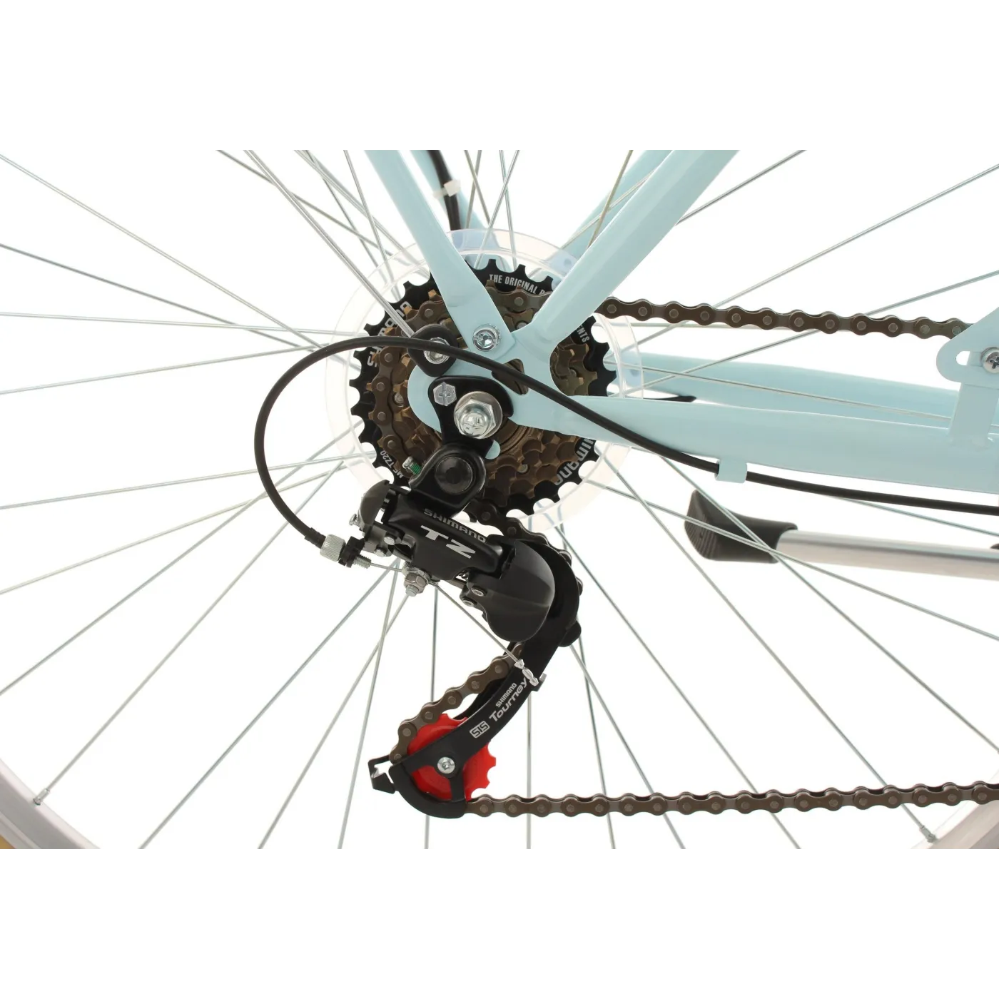 Piękny rower miejski z dużymi 28-calowymi kołami ze świetnym wyposażeniem w standardzie. Ślicznie malowanie ramy, kremowy kolor opon, stylowe oświetlenie zasilane prądnicą oraz pojemne sakwy w zestawie to tylko niektóre zalety modelu Verona. Wyjątkowo komfortowa pozycja podczas jazdy, skórzane rączki, podnóżek, szerokie siodełko i niezawodne przerzutki Shimano uzupełniają świetną specyfikację tego roweru miejskiego.