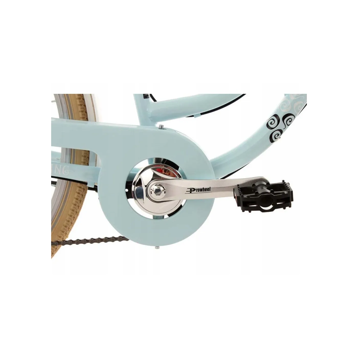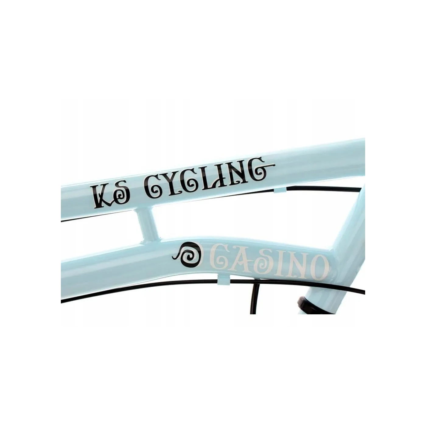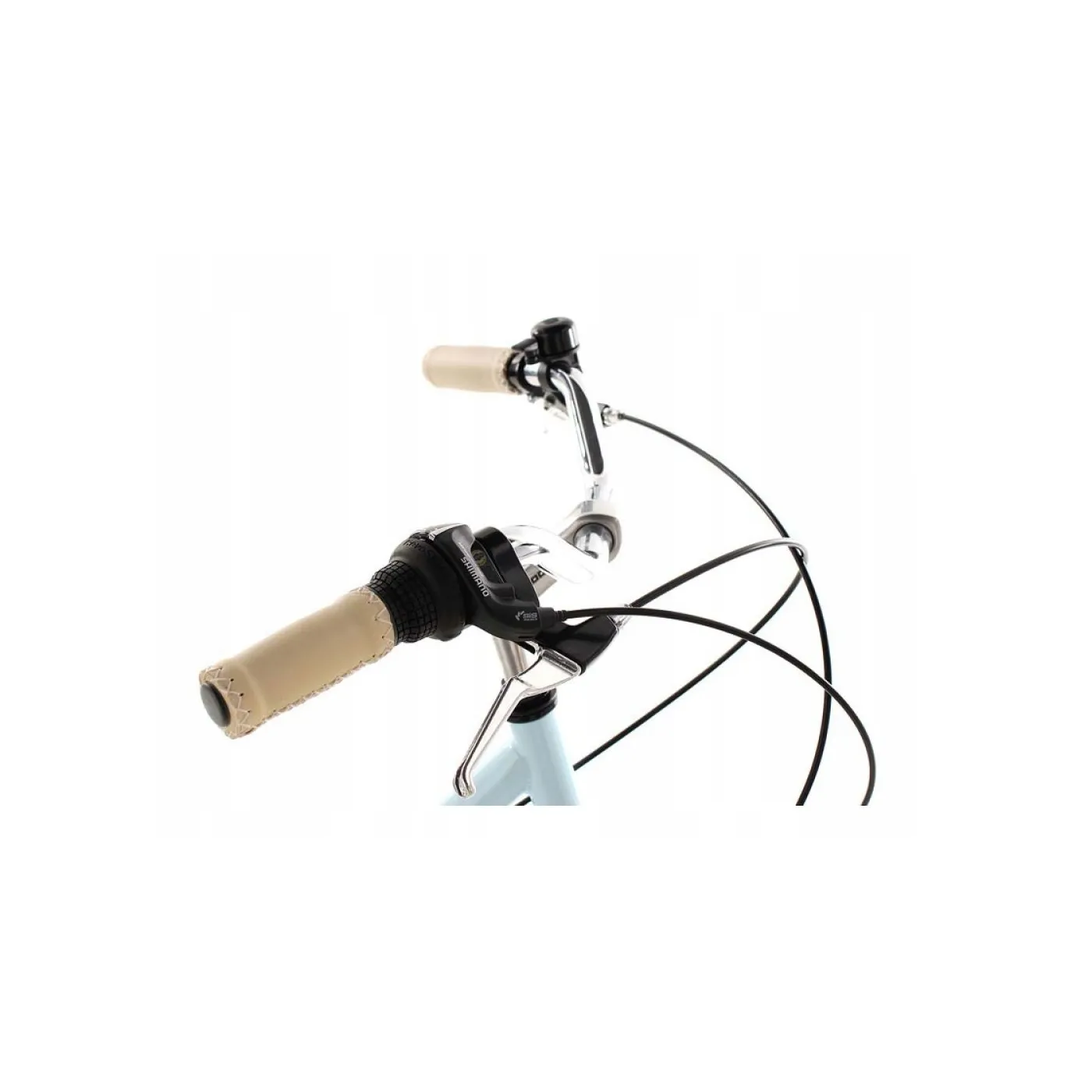 Damka ta urzeka swoim retro wyglądem, a jednocześnie wpasowuje się w najnowsze trendy. Połączenie naturalnych beżów z pięknym pastelowym niebieskim kolorem sprawia ze rower miejski Casino jest wyjątkowy. Model wykonany został z wytrzymałej stali, a do tego w zestawie znajduje się równie przydatne oświetlenie oraz bagażnik.