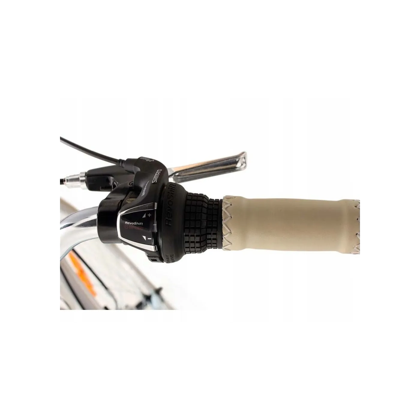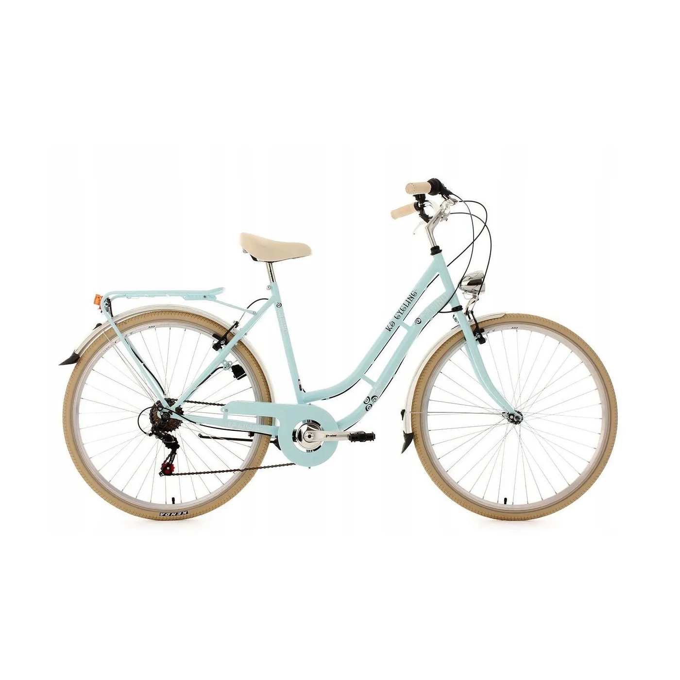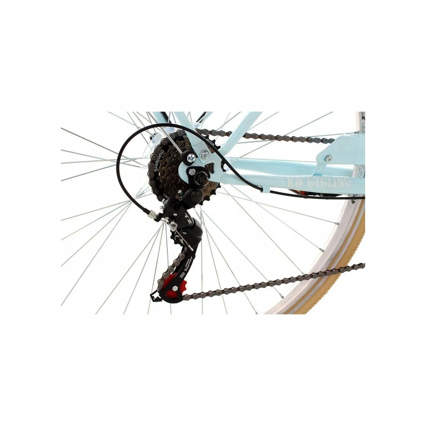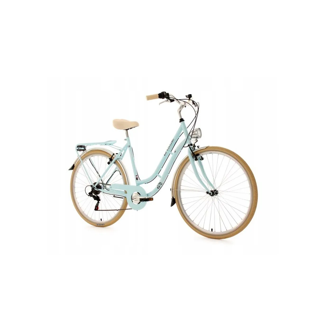 Damka ta urzeka swoim retro wyglądem, a jednocześnie wpasowuje się w najnowsze trendy. Połączenie naturalnych beżów z pięknym pastelowym niebieskim kolorem sprawia ze rower miejski Casino jest wyjątkowy. Model wykonany został z wytrzymałej stali, a do tego w zestawie znajduje się równie przydatne oświetlenie oraz bagażnik.