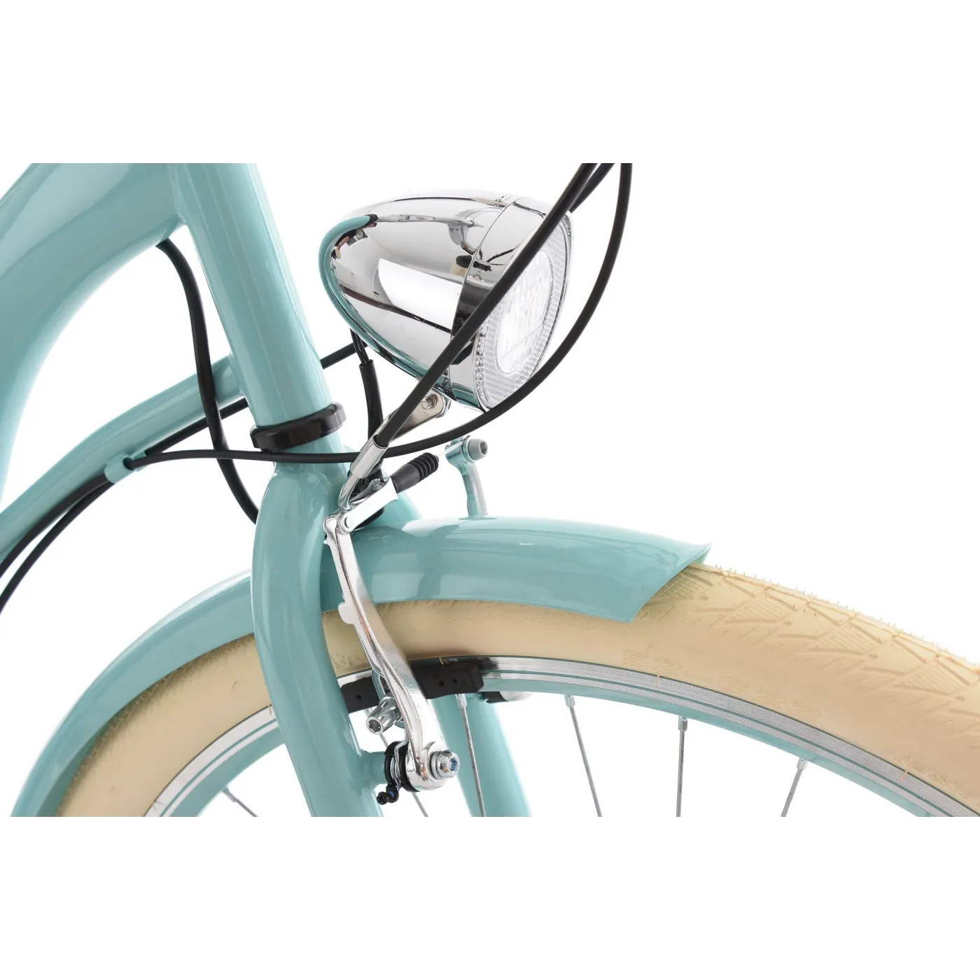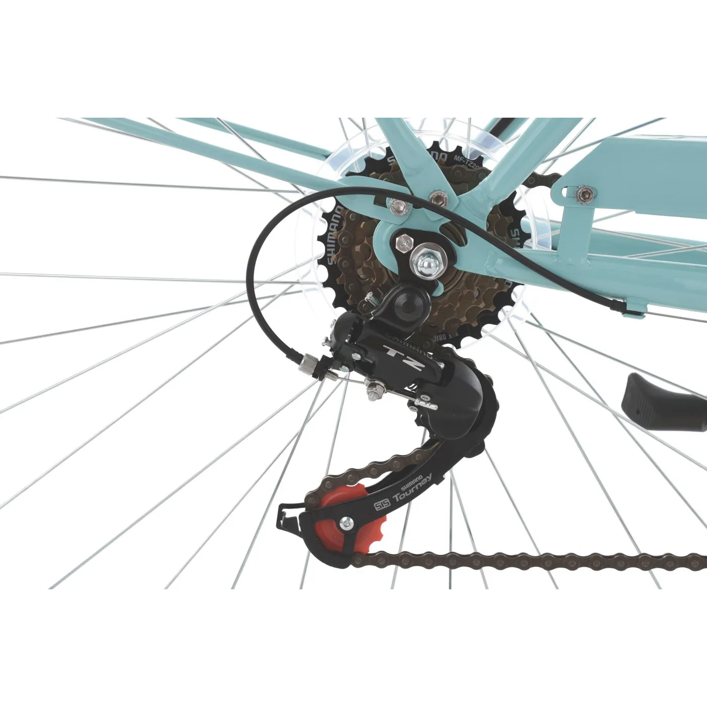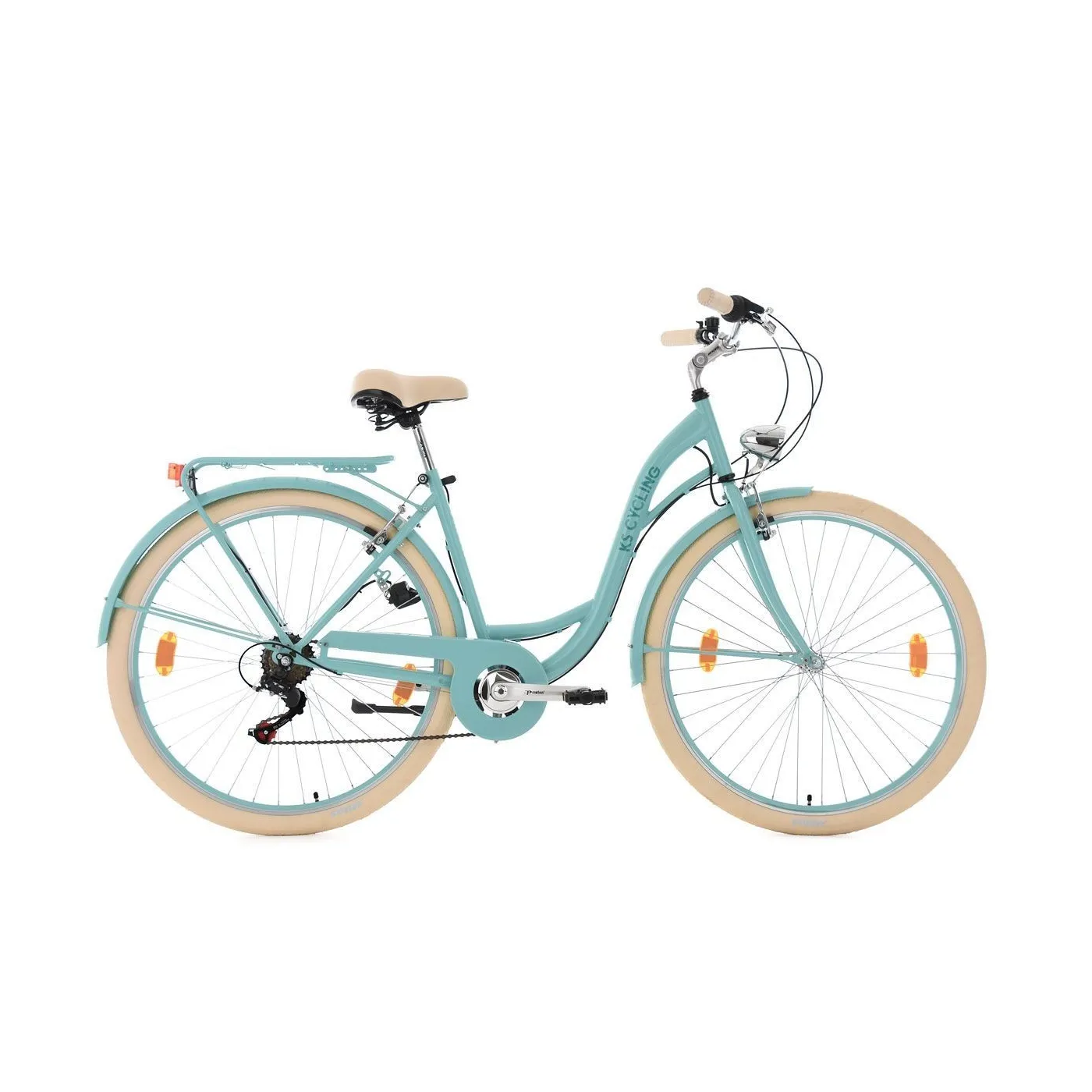 Wyjątkowy rower miejski, w kolorze turkusowym z pewnością przyciągnie wzrok niejednej mijanej osoby. Wyposażony w "balonowe" opony ze specjalnym pneumatycznym zawieszeniem! Dzięki temu niwelowane są wstrząsy i tym samym zwiększa się komfort jazdy. Ponadto rower wyposażony jest w 6-biegową przerzutkę Shimano, oświetlenie zasilane dynamo oraz bagażnik.