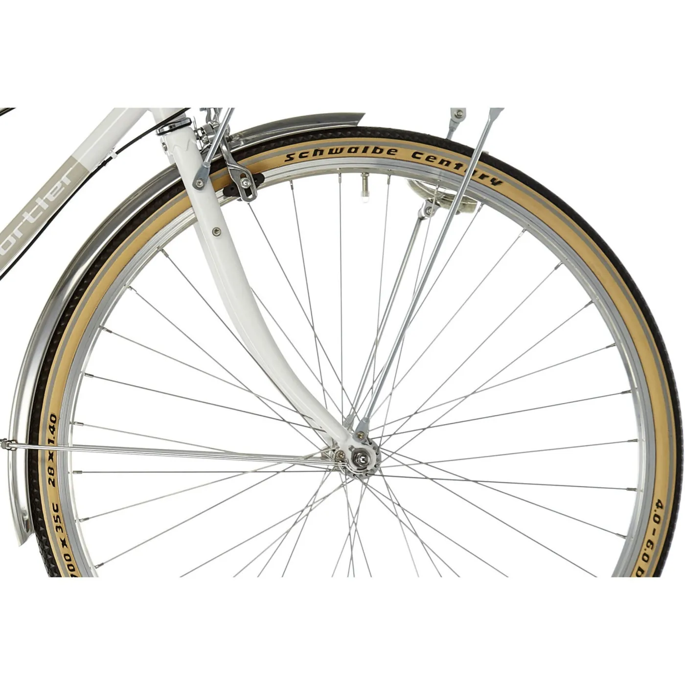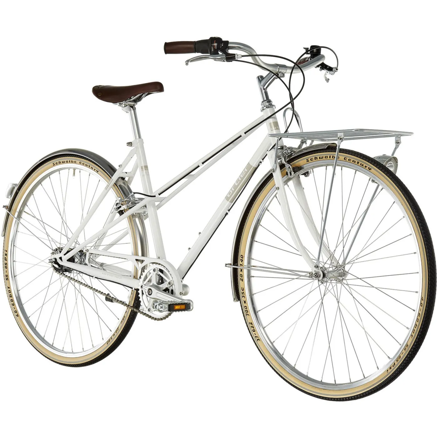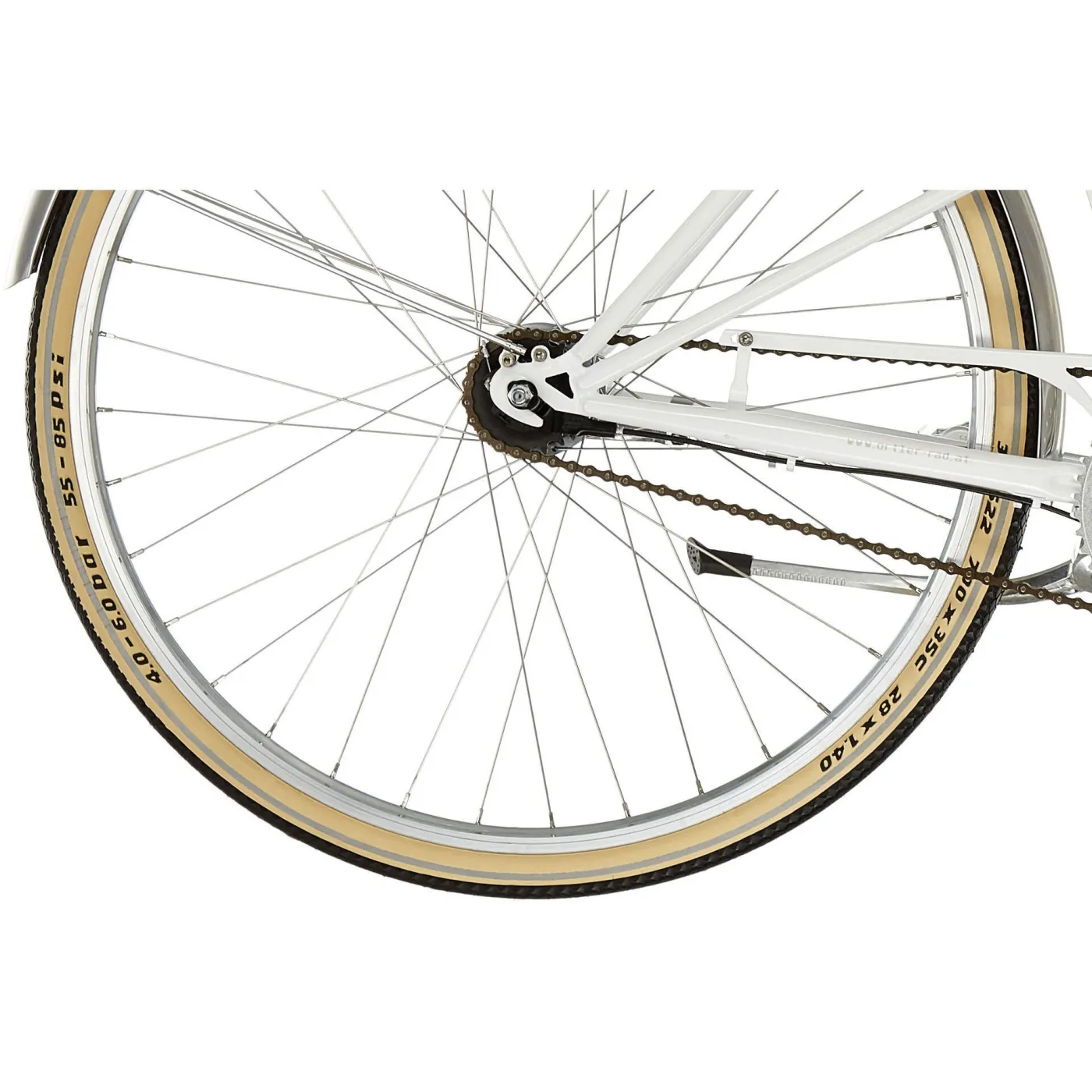 Wyposażony w 7 biegów Shimano Nexus oraz hamulce szczękowe daje możliwość poruszania się po mieście bez zbędnego wysiłku. Również kształt ramy oraz profilowana kierownica pozwalają na utrzymanie prostej pozycji w czasie jazdy. Wspomnienia dawnych lat przynosi duży bagażnik z przodu oraz brązowe dodatki tj. siodełko z dżetami i gripy. Dodatkowo rower posiada oświetlenie bateryjne, dzwonek, stopkę oraz osłonę na łańcuch i błotniki. Całość przekłada się na komfort jazdy.