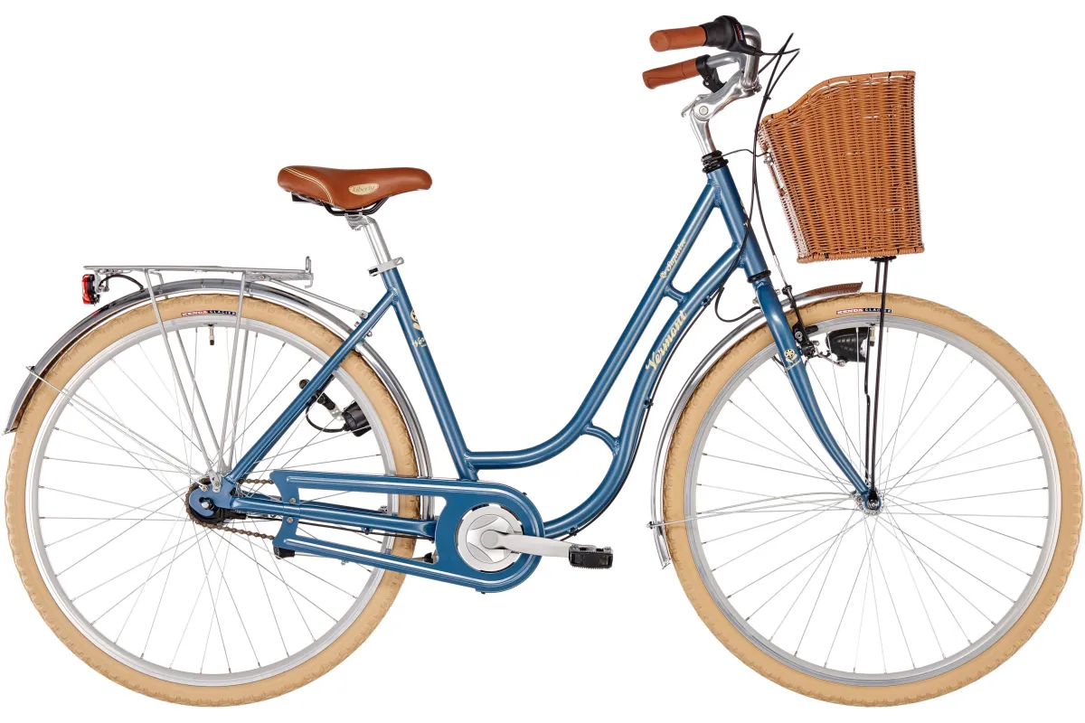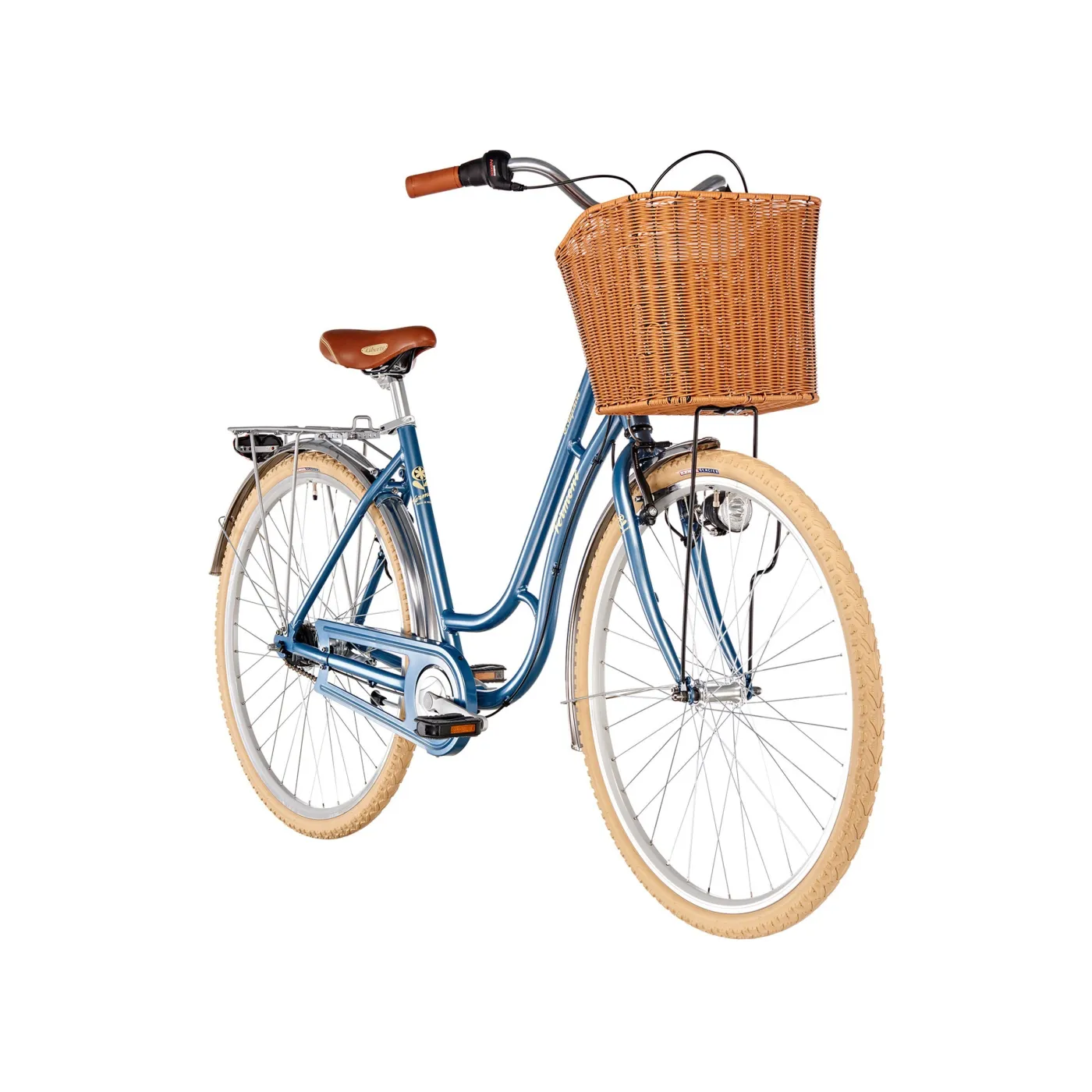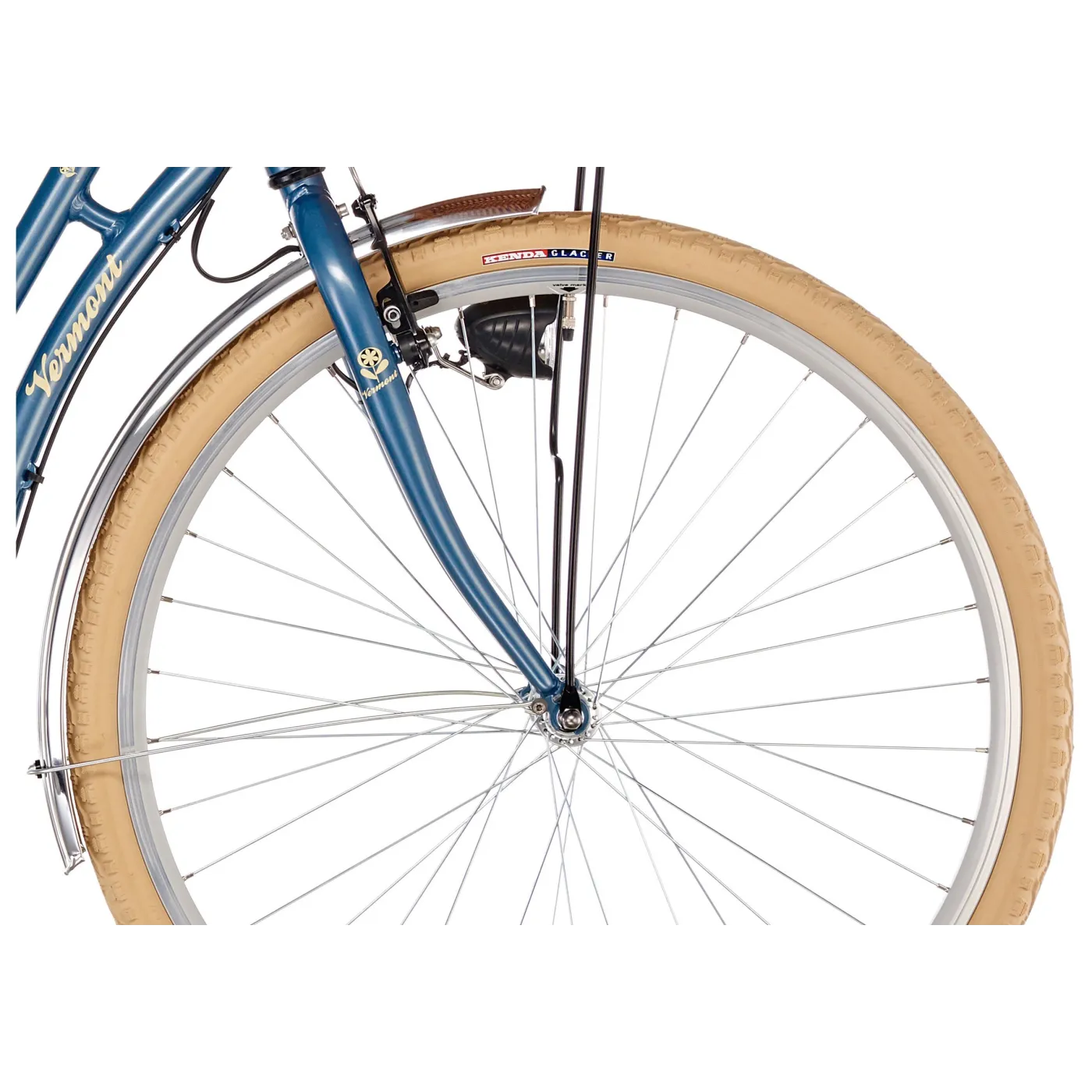 Nowoczesny, holenderski projekt w stylu retro! Vermont Saphire łączy w sobie typ miejski i turystyczny, idealnie sprawdza się na co dzień w mieście, jak również jest bardzo komfortowy na dłuższych trasach. Wygodne szerokie siodełko i profilowana kierownica zapewniają utrzymanie prostej pozycji podczas jazdy. 7 biegów Shimano Nexus sprawi, że zarówno krótkie jak i długie trasy będą przyjemnością, a hamulec szczękowy oraz kontra pozostawia wybór w czasie hamowania. Klasyczny rower miejski posiada duży kosz z przodu oraz bagażnik. Oświetlenie z przodu zasilane przez dynamo oraz tylne oświetlenie zapewnia bezpieczeństwo nawet po zmroku.