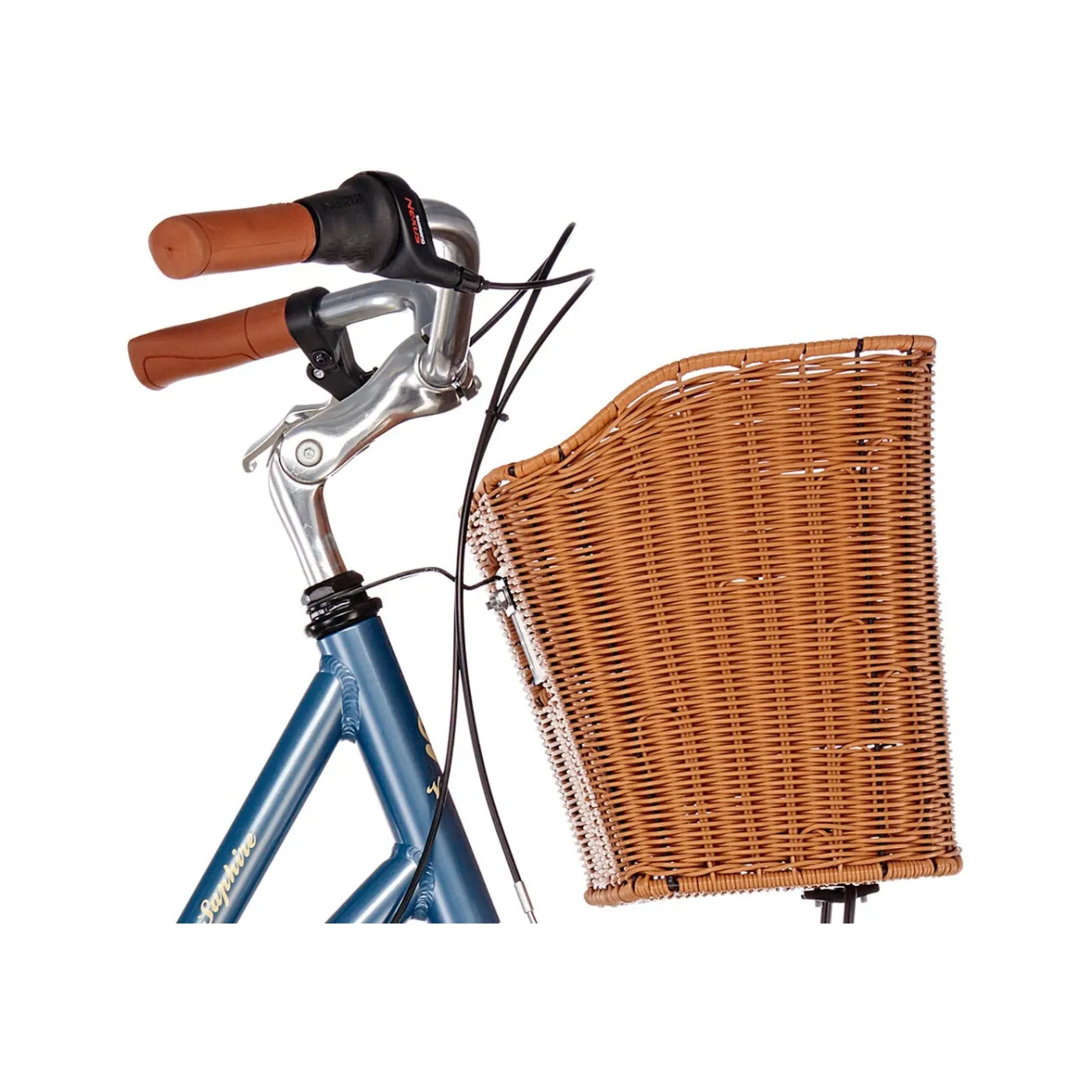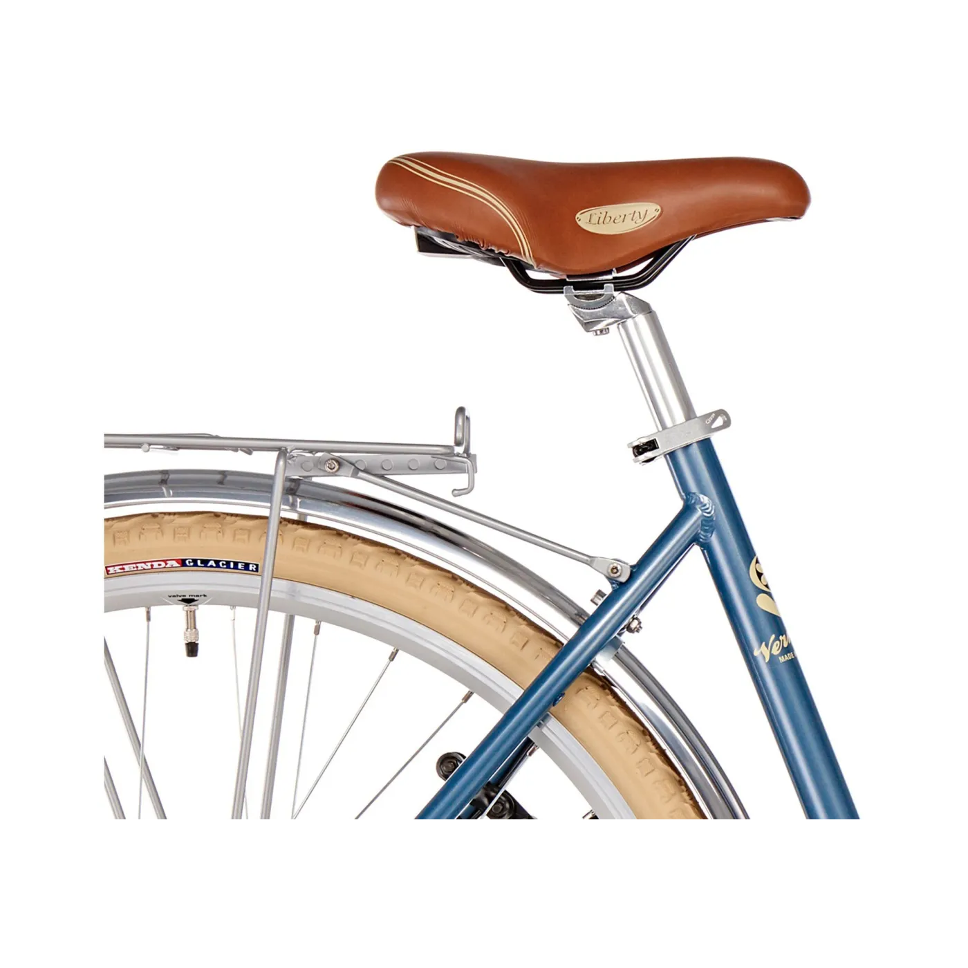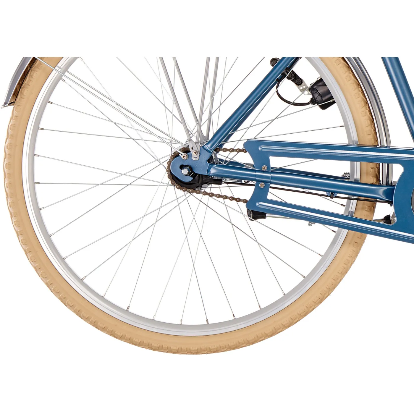 Nowoczesny, holenderski projekt w stylu retro! Vermont Saphire łączy w sobie typ miejski i turystyczny, idealnie sprawdza się na co dzień w mieście, jak również jest bardzo komfortowy na dłuższych trasach. Wygodne szerokie siodełko i profilowana kierownica zapewniają utrzymanie prostej pozycji podczas jazdy. 7 biegów Shimano Nexus sprawi, że zarówno krótkie jak i długie trasy będą przyjemnością, a hamulec szczękowy oraz kontra pozostawia wybór w czasie hamowania. Klasyczny rower miejski posiada duży kosz z przodu oraz bagażnik. Oświetlenie z przodu zasilane przez dynamo oraz tylne oświetlenie zapewnia bezpieczeństwo nawet po zmroku.