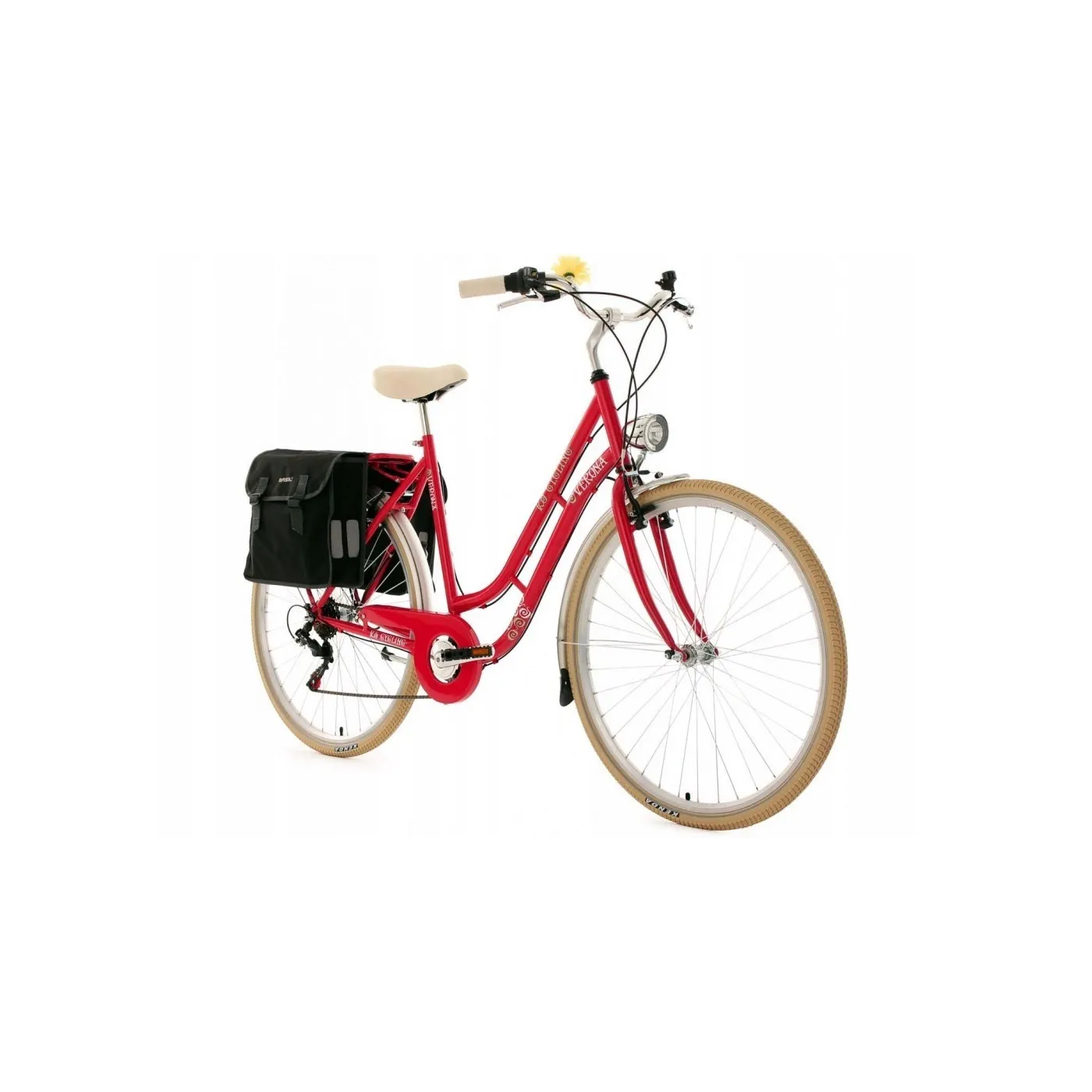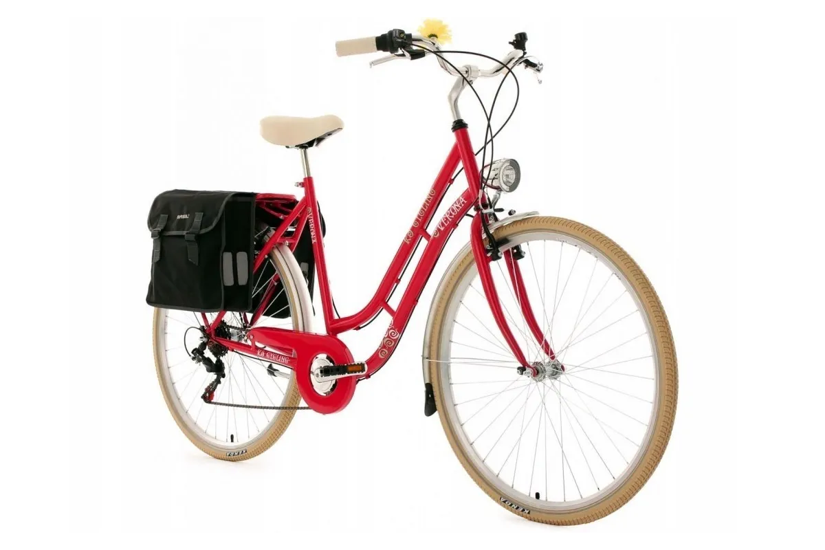 Piękny rower miejski z dużymi 28-calowymi kołami ze świetnym wyposażeniem w standardzie. Ślicznie malowanie ramy, stylowe oświetlenie zasilane prądnicą oraz pojemne sakwy w zestawie to tylko niektóre zalety modelu Verona. Wyjątkowo komfortowa pozycja podczas jazdy, ergonomiczne rączki, podnóżek, szerokie siodełko i niezawodne przerzutki Shimano uzupełniają świetną specyfikację tego roweru miejskiego.