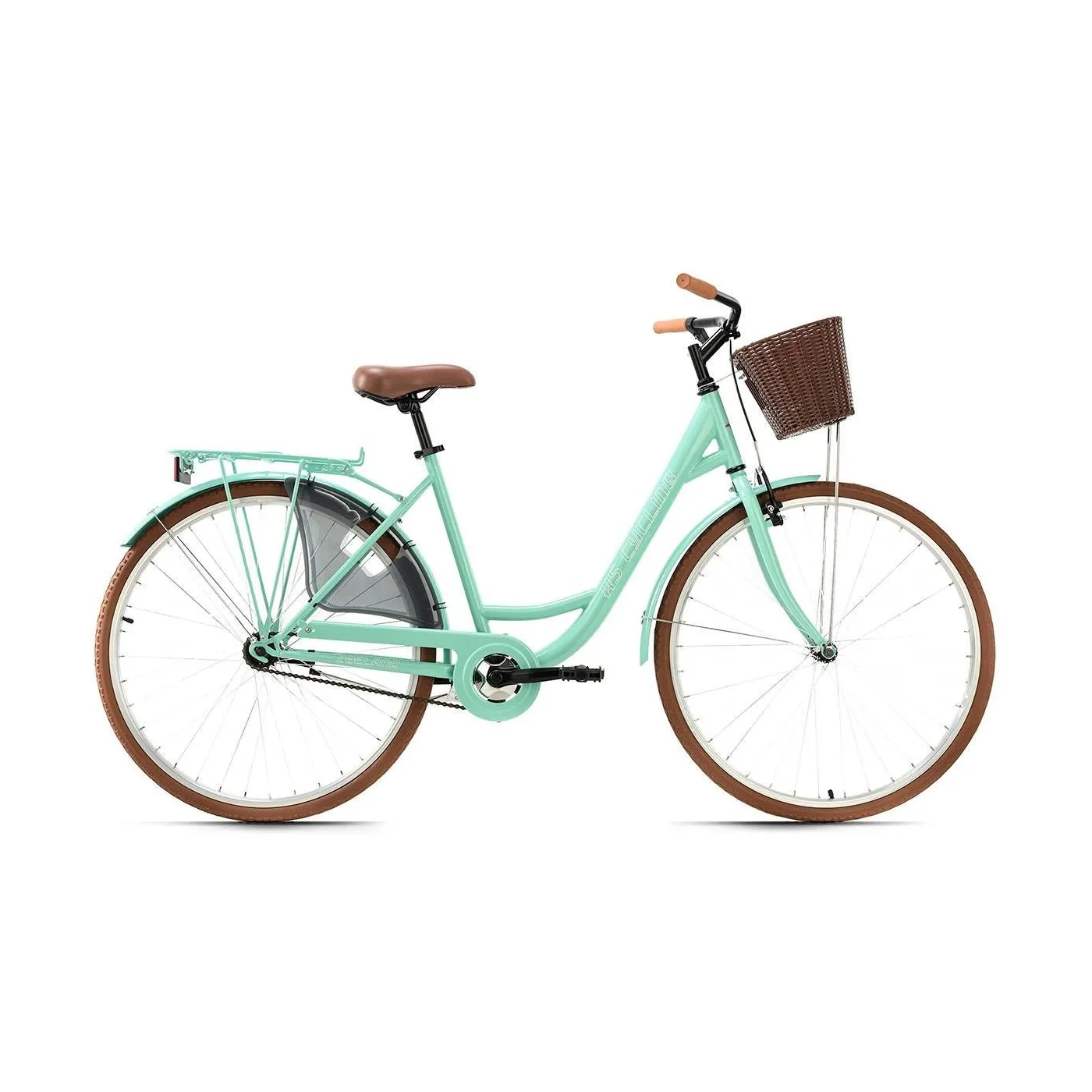 28-calowy damski rower miejski ZEELAND to klasyczny rower do miasta pozbawiony zbędnych Jest skierowany do wszystkich, którzy szukają niezawodnego, nieskomplikowanego i łatwego w utrzymaniu i roweru miejskiego. Rower w świeżych, pastelowych kolorach przywodzi na myśl wiosenne i letnie dni, natomiast brązowe siodełko i chwyty kierownicy nadają rowerowi elegancki wygląd w retro stylu.