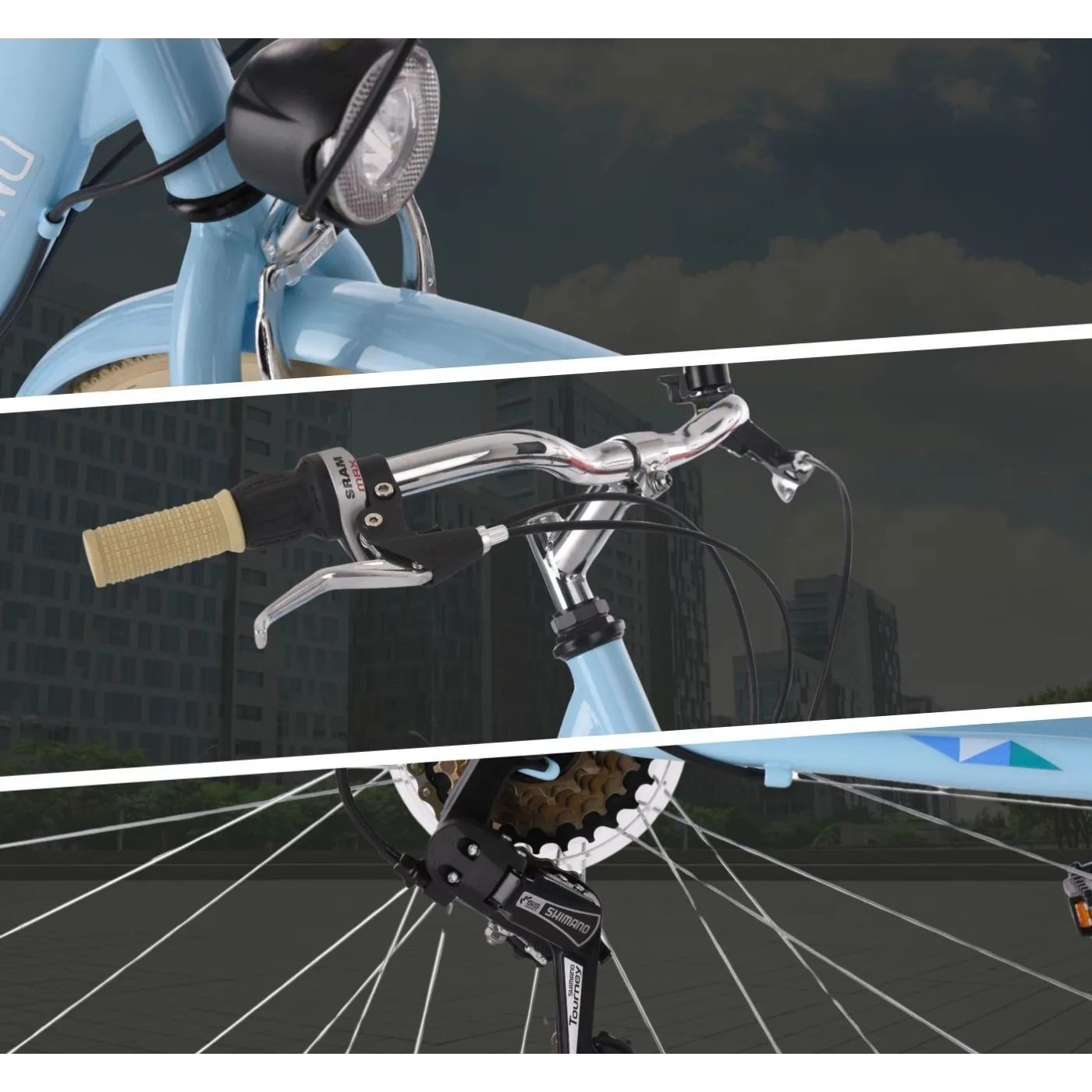 ✔️ Stalowa, solidna rama, 6 biegów od Shimano oraz 28 calowe koła - to cechy idealnego roweru miejskiego Toscana! Rower wyposażony jest w niezbędne akcesoria, takie jak bagażnik, błotniki, osłona łańcucha oraz oświetlenie, które pozwoli na bezpieczną jazdę nawet po zmroku. Ponad to rower wykończony jest pięknym niebieskim kolorem, który przyciągnie niejedno spojrzenie!