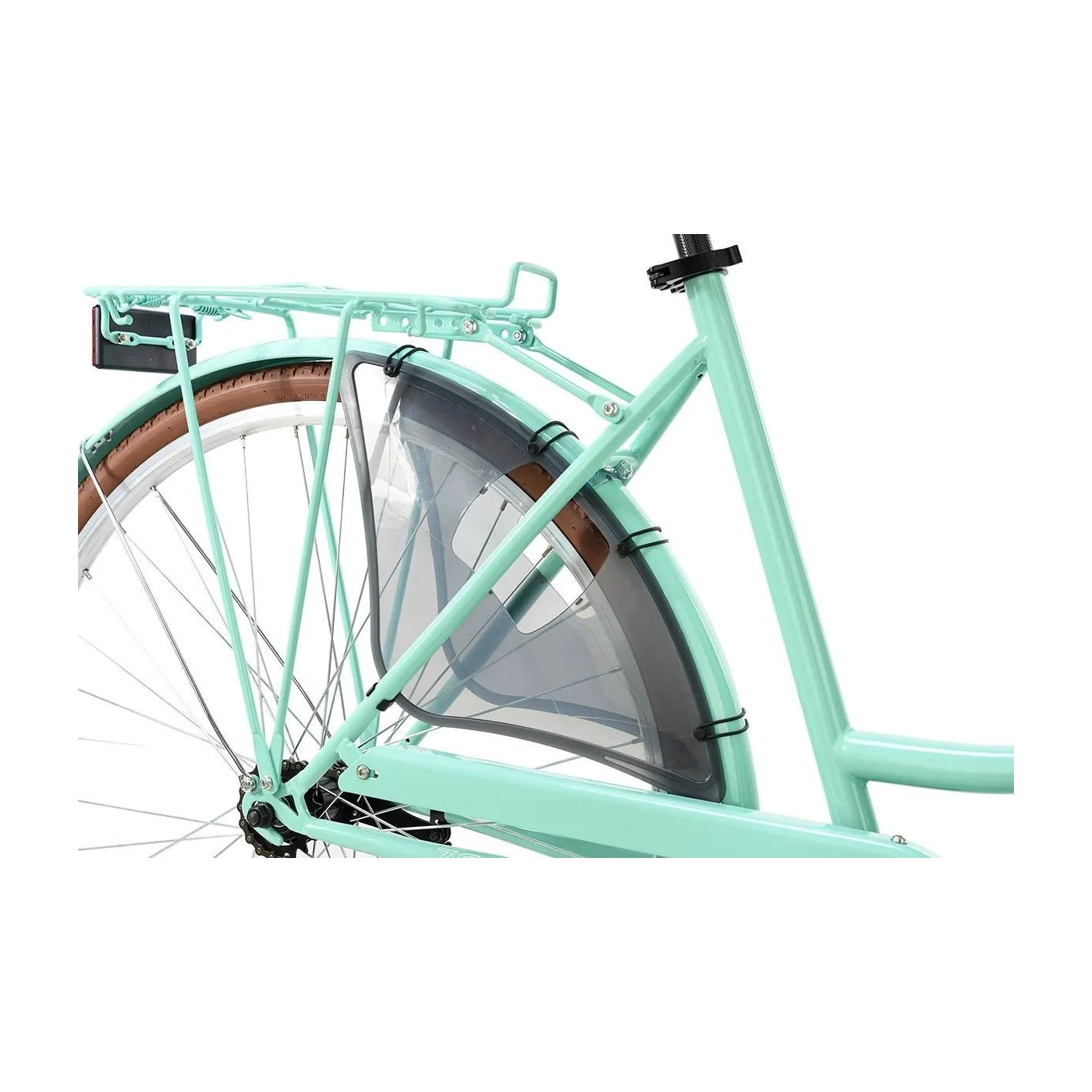 28-calowy damski rower miejski ZEELAND to klasyczny rower do miasta pozbawiony zbędnych Jest skierowany do wszystkich, którzy szukają niezawodnego, nieskomplikowanego i łatwego w utrzymaniu i roweru miejskiego. Rower w świeżych, pastelowych kolorach przywodzi na myśl wiosenne i letnie dni, natomiast brązowe siodełko i chwyty kierownicy nadają rowerowi elegancki wygląd w retro stylu.
