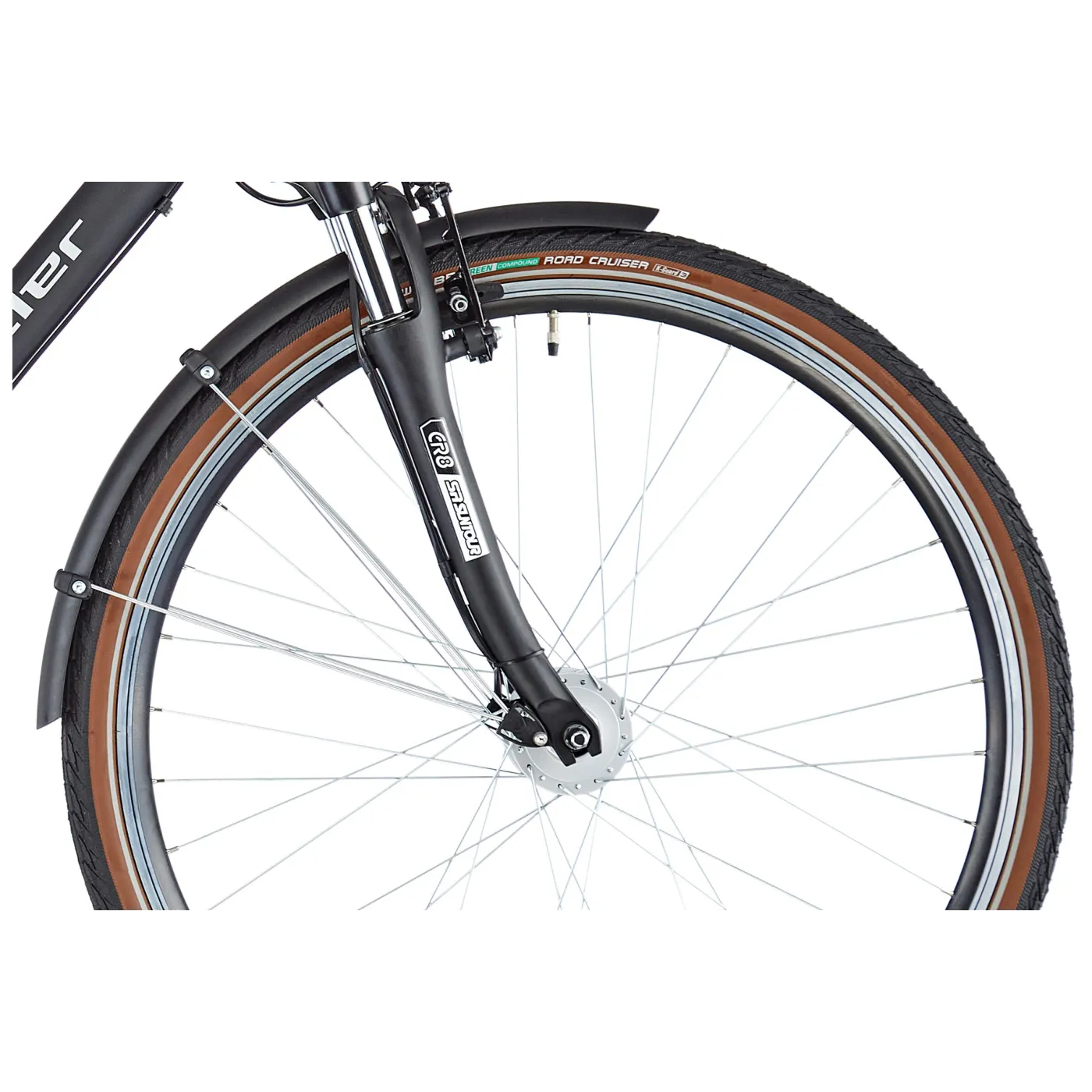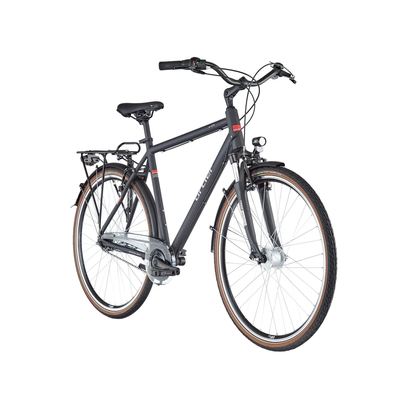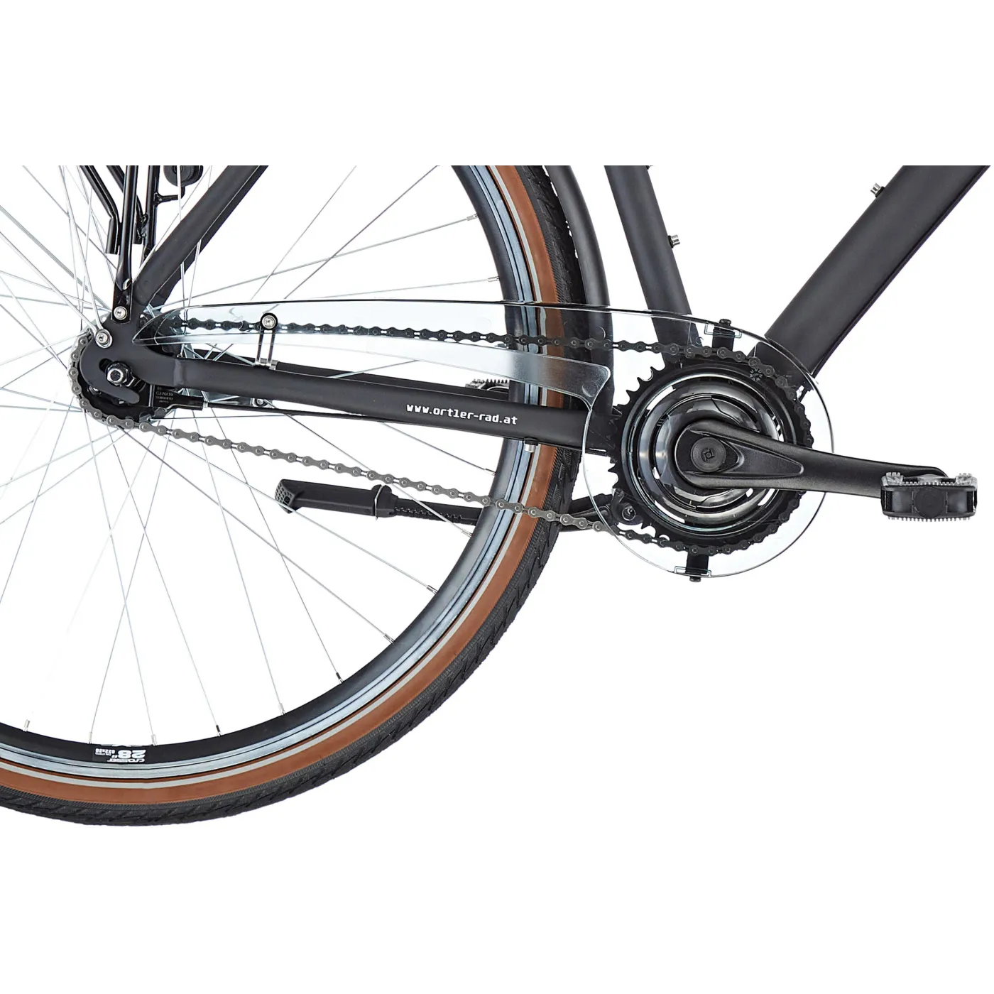 Klasyczny miejski rower z trekkingowym zacięciem - Ortler deGoya sprawdzi się zarówno w miejskich przejażdżkach jak i dłuższych wycieczkach. Lekka i stabilna aluminiowa rama, siodełko oraz szeroka kierownica pozwalają na zachowanie wygodnej pozycji, co będzie znaczącym atutem zwłaszcza przy dłuższej jeździe. Rower wyposażony jest w przerzutkę Shimano Nexus z 7 przełożeniami oraz hamulce V-brake. Dodatkowo posiada bagażnik, stopkę, osłonę łańcucha oraz oświetlenie zasilane przez dynamo w piaście. Ortler deGoya - towarzysz na co dzień!