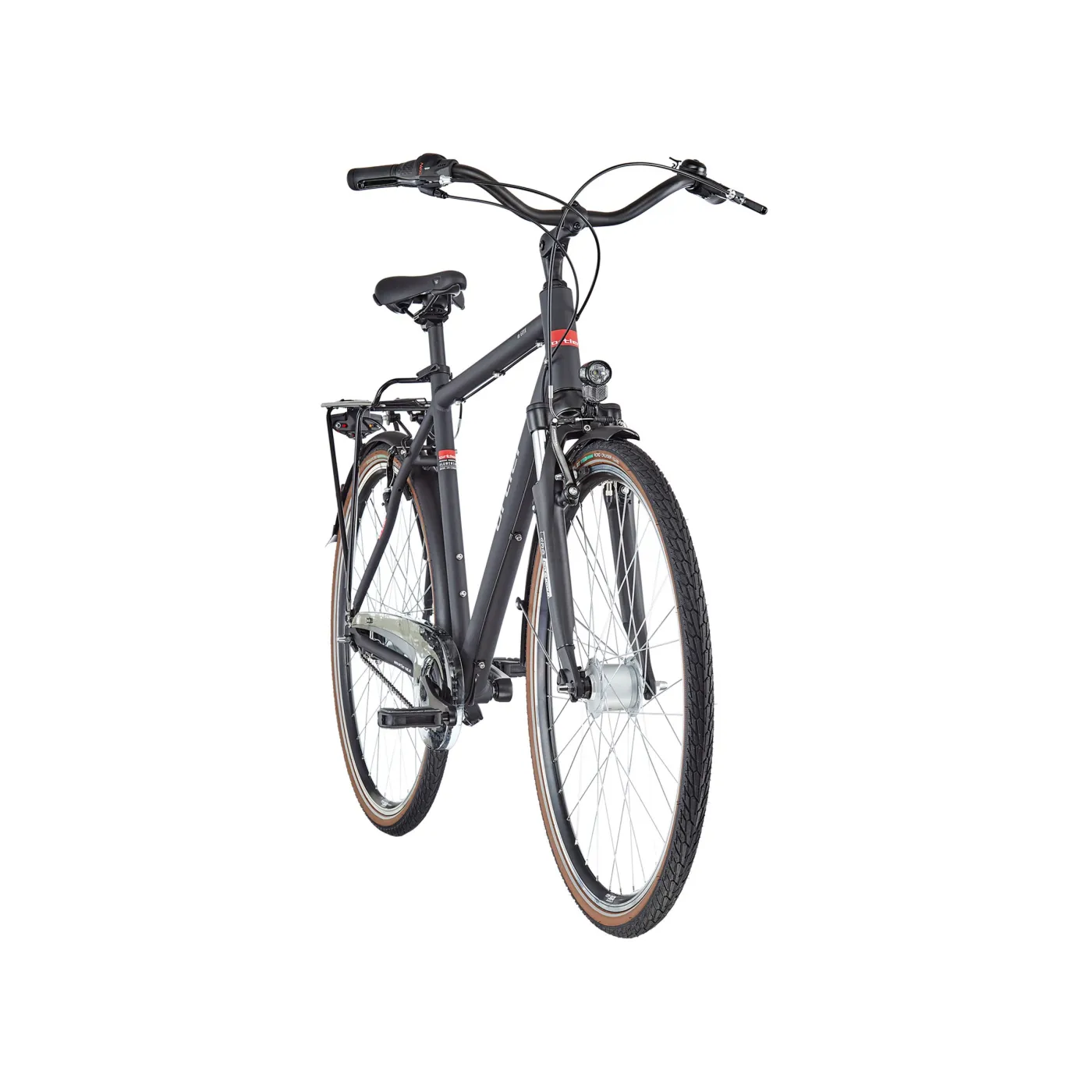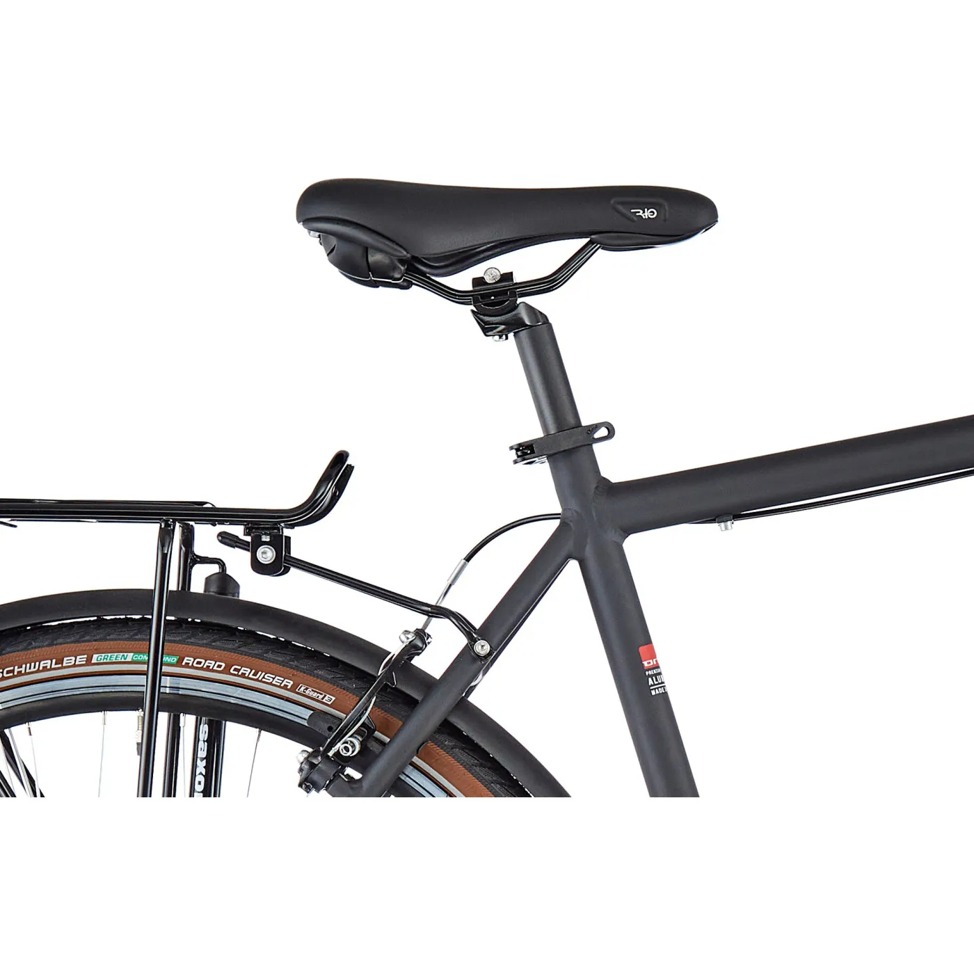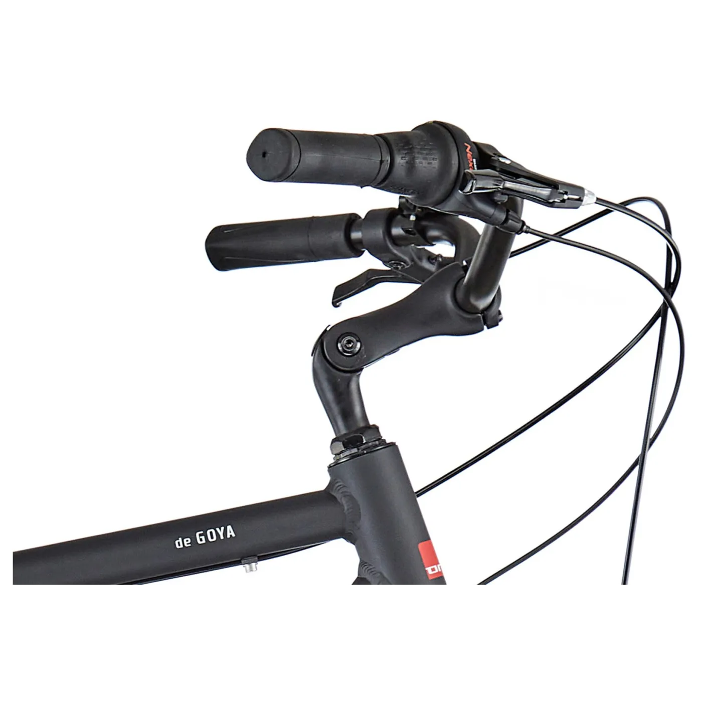 Klasyczny miejski rower z trekkingowym zacięciem - Ortler deGoya sprawdzi się zarówno w miejskich przejażdżkach jak i dłuższych wycieczkach. Lekka i stabilna aluminiowa rama, siodełko oraz szeroka kierownica pozwalają na zachowanie wygodnej pozycji, co będzie znaczącym atutem zwłaszcza przy dłuższej jeździe. Rower wyposażony jest w przerzutkę Shimano Nexus z 7 przełożeniami oraz hamulce V-brake. Dodatkowo posiada bagażnik, stopkę, osłonę łańcucha oraz oświetlenie zasilane przez dynamo w piaście. Ortler deGoya - towarzysz na co dzień!