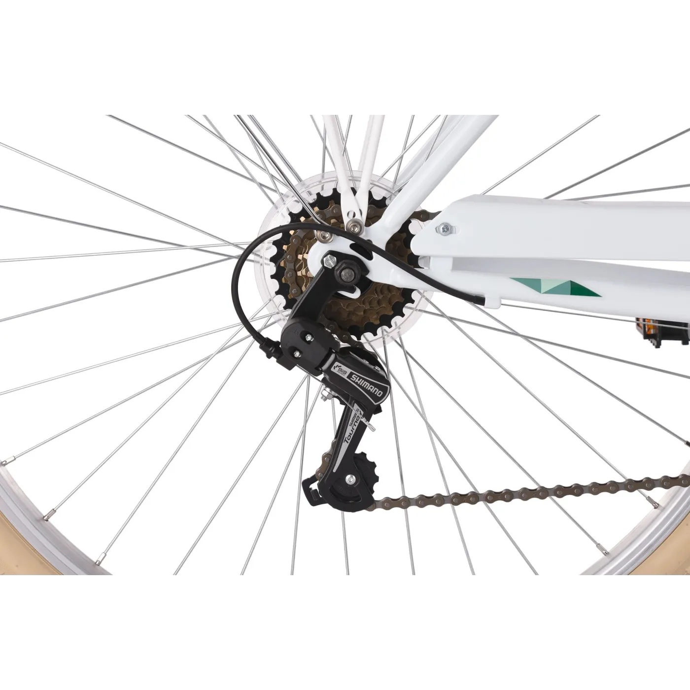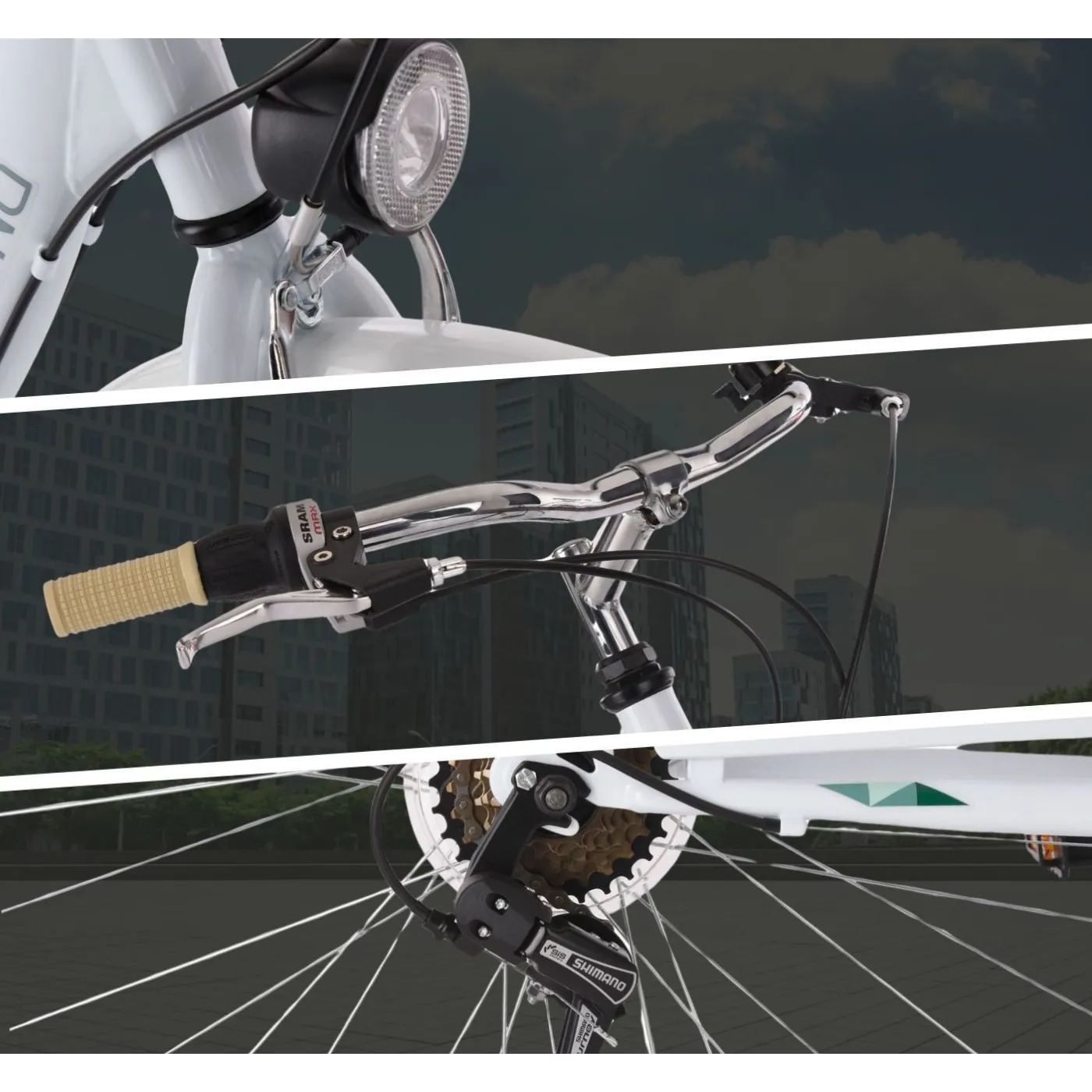 💎 Rower miejski Toscana świetnie sprawdzi się jako codzienny transport np. do szkoły czy pracy, ale także krótkie wycieczki rekreacyjne. Wyposażony w hamulce v-brake i 6 biegów dostosuje się do zmian terenu. Dodatkowo zawiera wszystkie niezbędne akcesoria potrzebne do codziennej jazdy, np. bagażnik, błotniki i osłonę na łańcuch oraz oświetlenie zasilane bateryjnie.