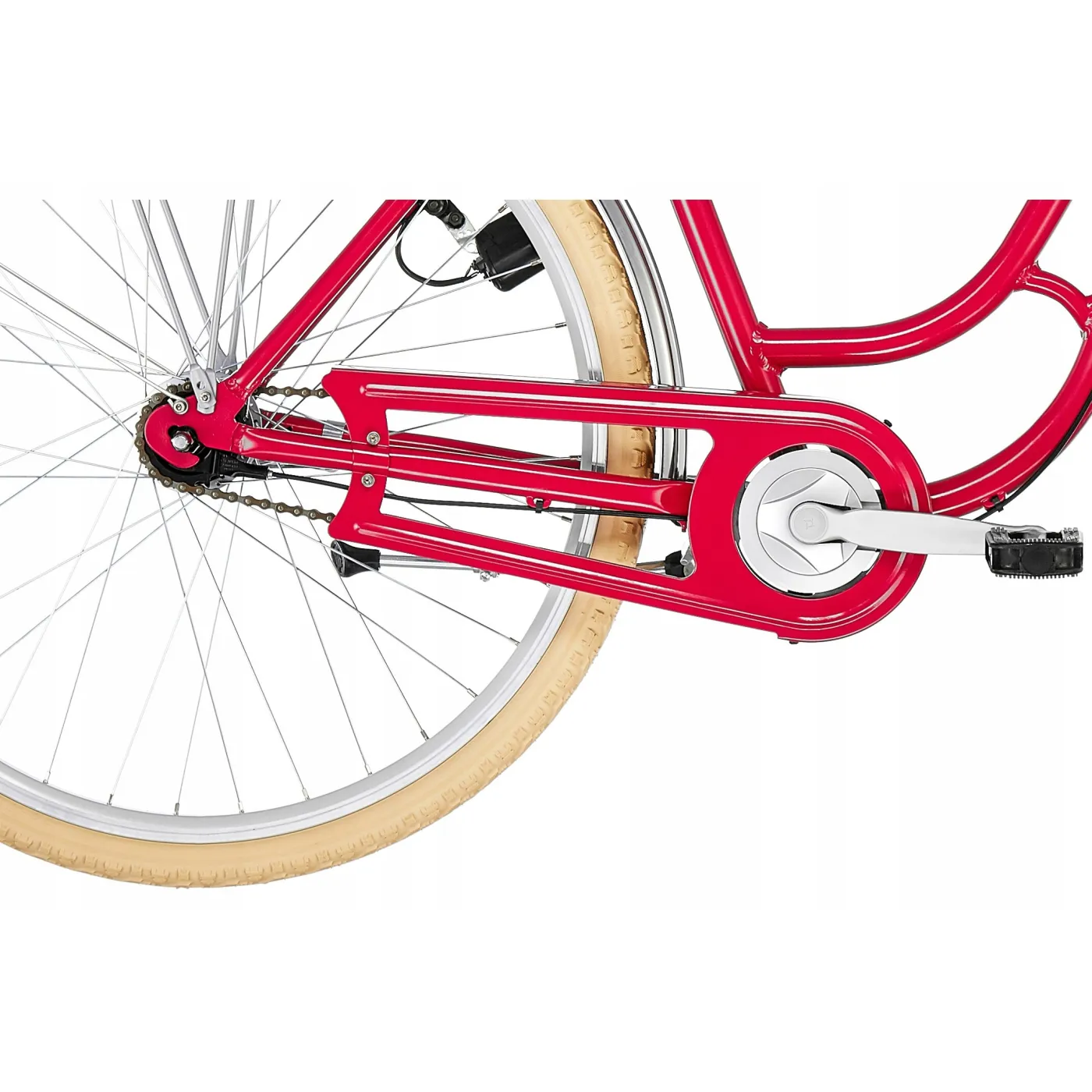 Istnieje 7-biegowy system Shimano Nexus, a światła są napędzane silnikiem dynamo. Kosz z przodu jest idealny do przewożenia zakupów, a pozostałe rzeczy mogą być przewożone na tylnym bagażniku.