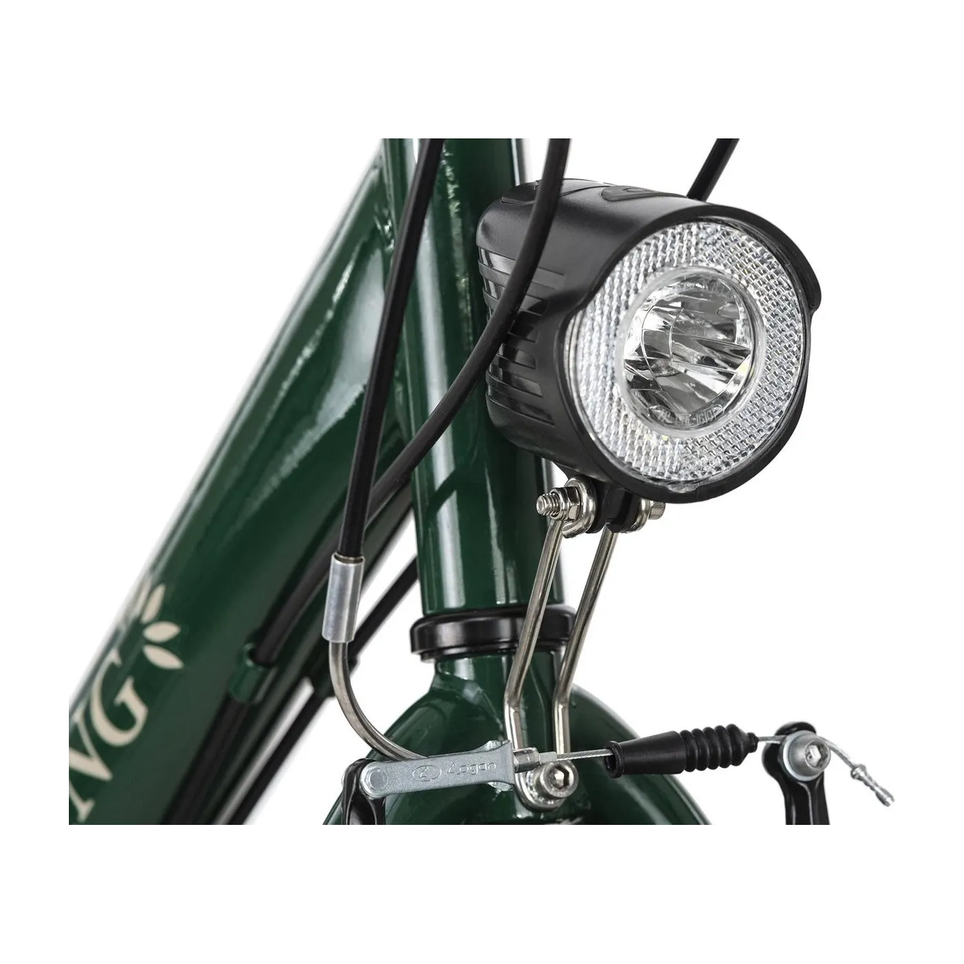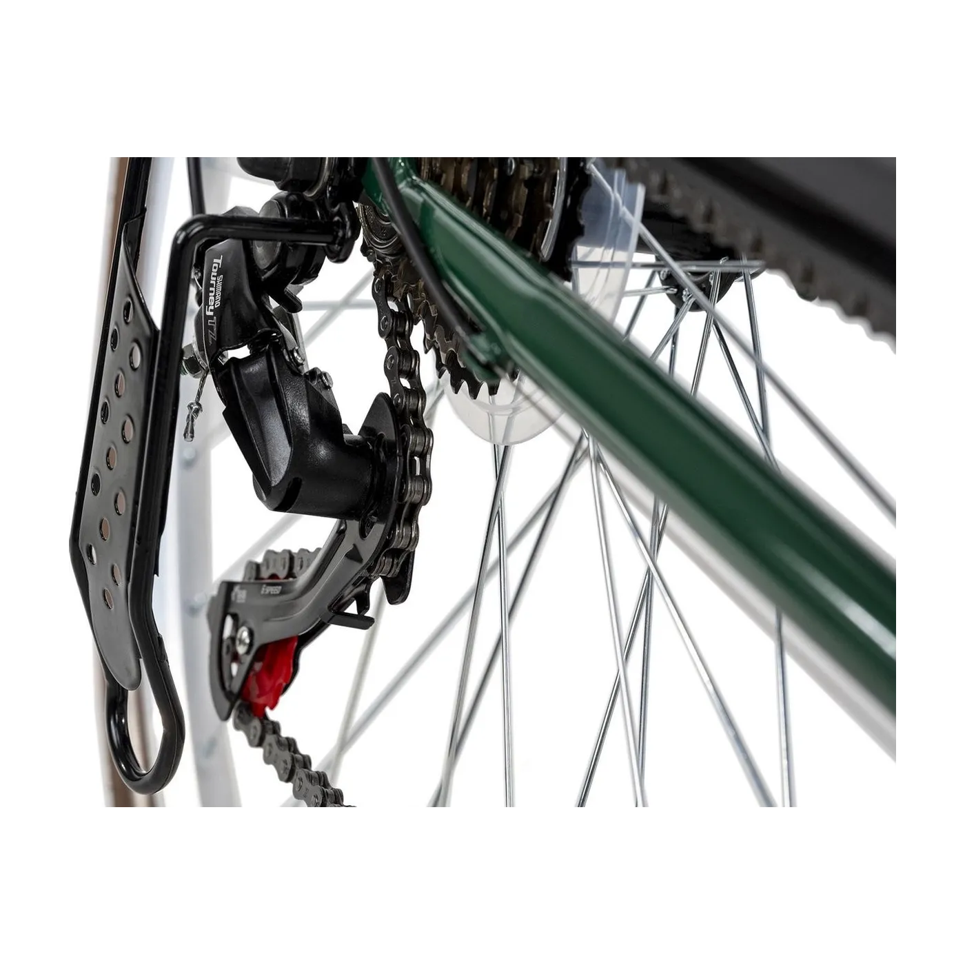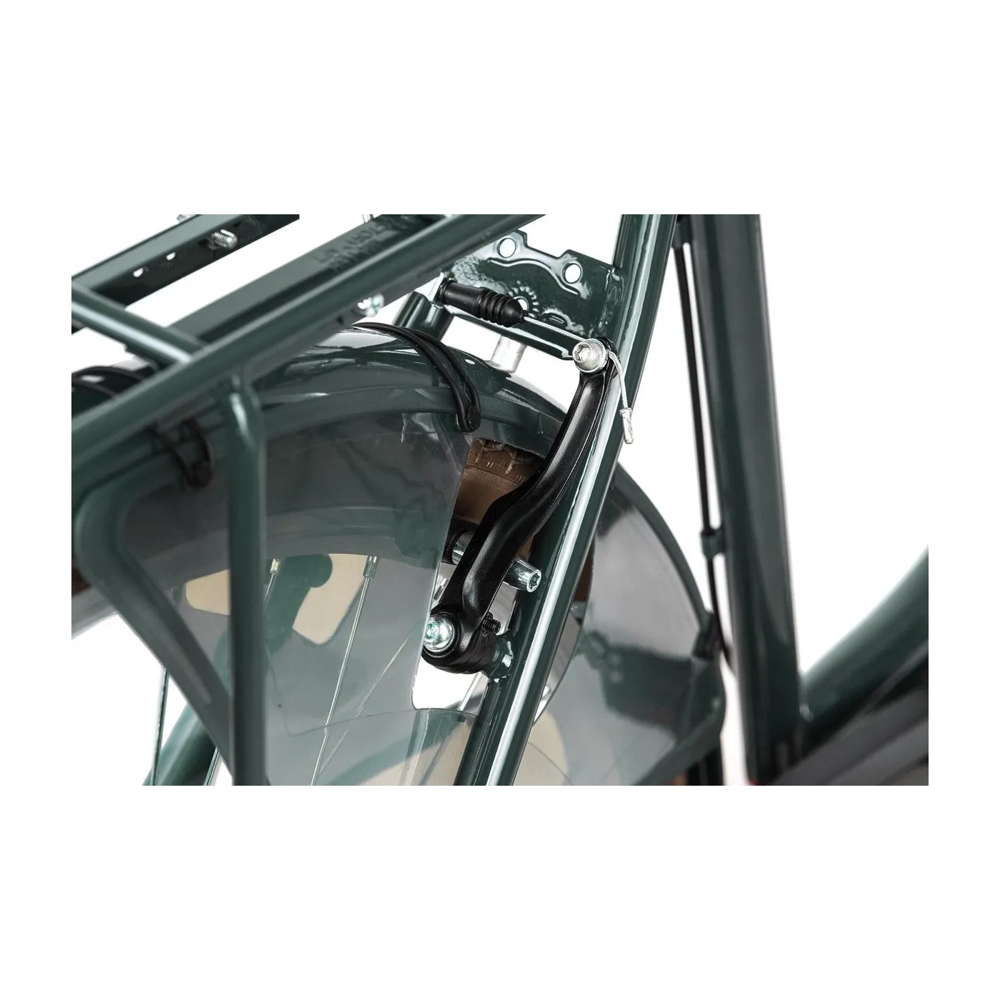 28-calowy damski rower miejski City Six to klasyczny rower do miasta. Jest skierowany do wszystkich, którzy szukają niezawodnego, nieskomplikowanego i łatwego w utrzymaniu i roweru miejskiego. Rower w wyjątkowym kolorze, brązowe opony, siodełko i chwyty kierownicy nadają mu elegancki wygląd w retro stylu.