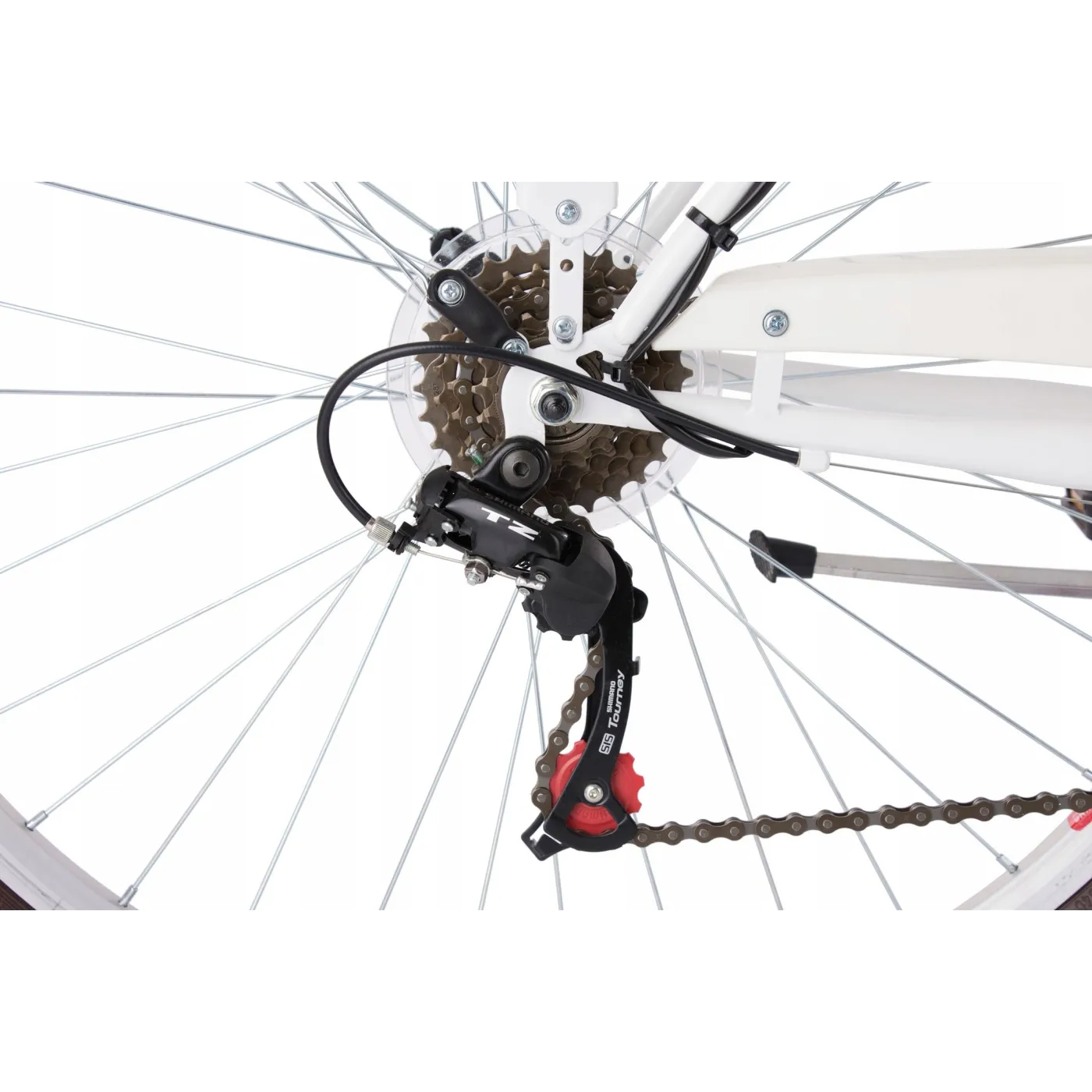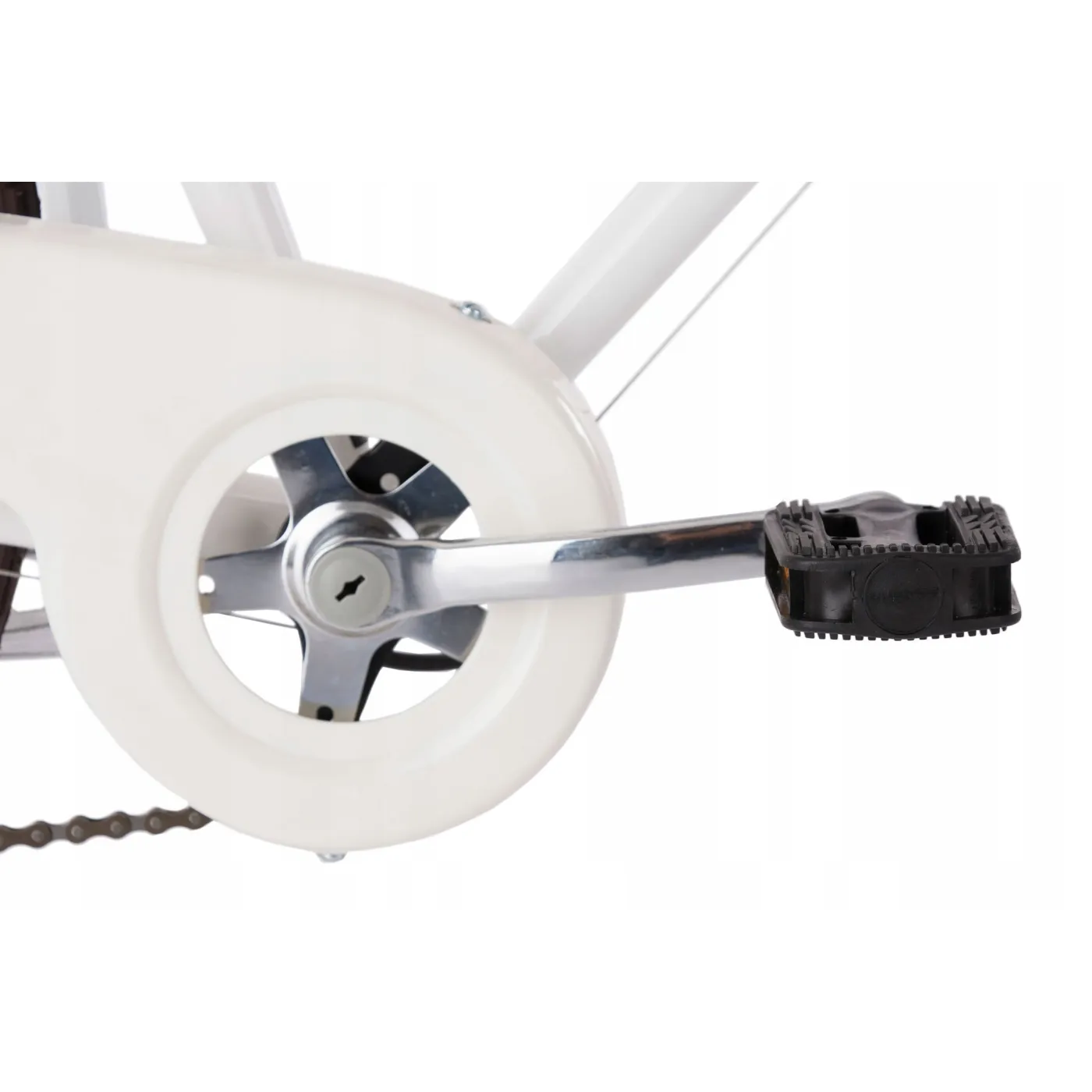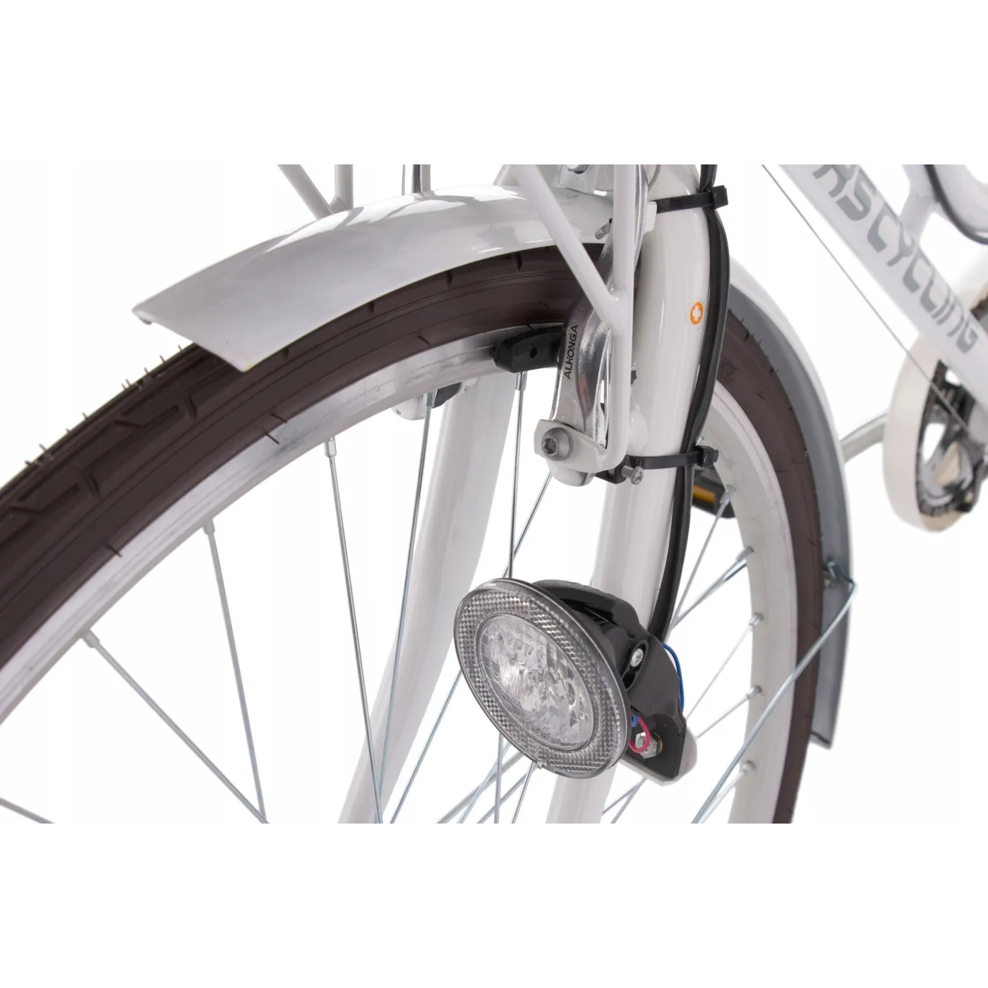 Wysoka kierownica i wygodne siodełko zapewnią komfort jazdy, a szyte gripy, koszyk i brązowe wykończenie dodają uroku. Rower wyposażony jest w hamulce v-brake oraz 6 biegów, dzięki którym dopasuje się do warunków miejskich. Oświetlenie zasilane przez dynamo pozwoli na podróżowanie nawet po zmroku!
