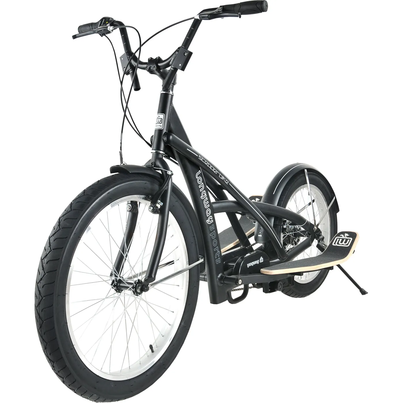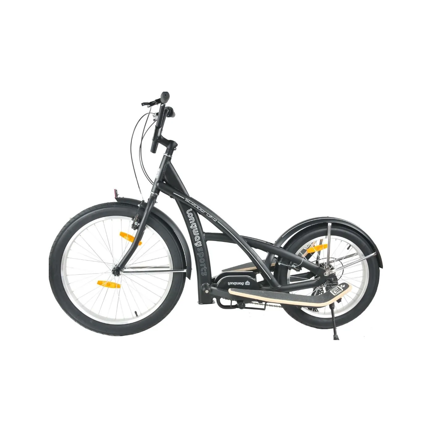 OpisDzięki stepper bike, czyli połączeniu steppera z rowerem, można trenować również na świeżym powietrzu. Na pierwszy rzut oka wygląda jak zwykły rower - jednak nie ma siodełka a zamiast pedałów posiada charakterystyczne dla steppera platformy. Można zatem jednocześnie ćwiczyć mięśnie nóg na stepperze i przemieszczać się po mieście w całkiem szybkim tempie.