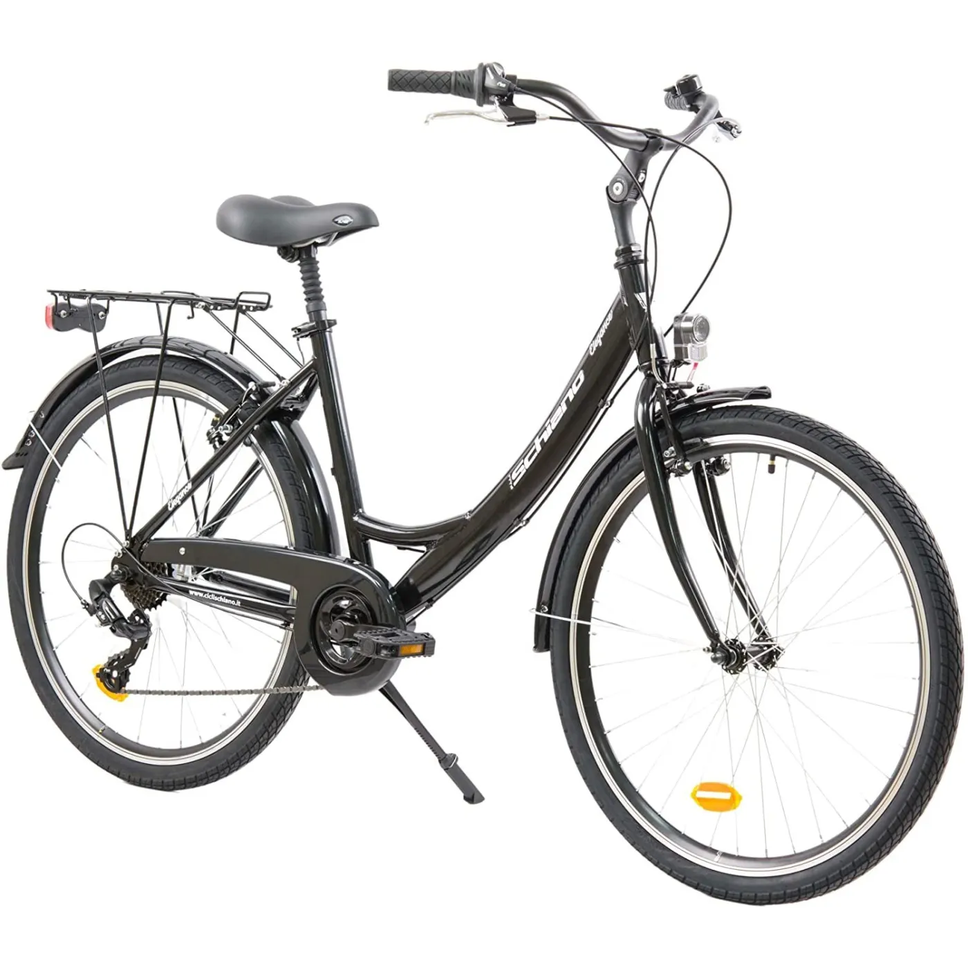 Wysoka kierownica i wygodne siodełko zapewnią komfort jazdy, a gripy, koszyk i brązowe wykończenie dodają uroku. Rower wyposażony jest w hamulce v-brake oraz 7 biegów, dzięki którym dopasuje się do warunków miejskich. Zamontowane oświetlenie pozwoli na podróżowanie nawet po zmroku!