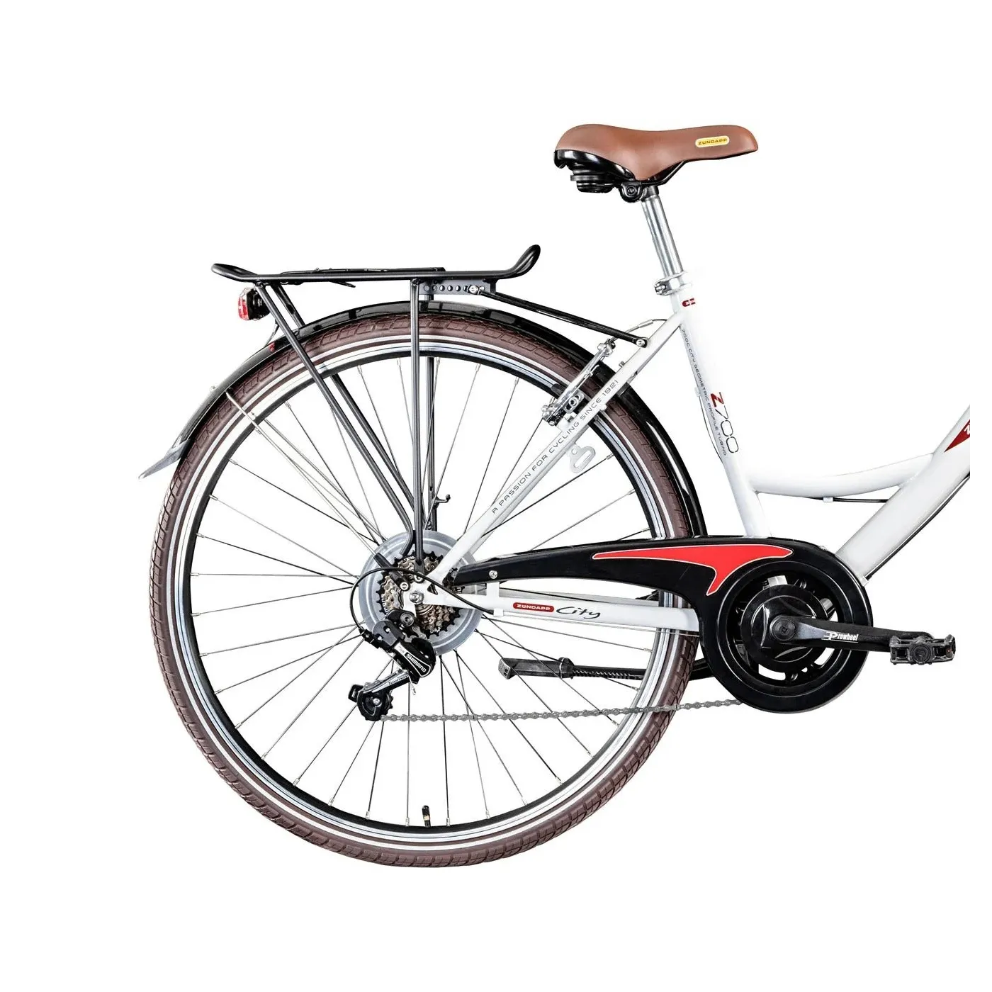 W napędzie Z700 jest sześć biegów. Dzięki temu zawsze możesz zrobić dobre postępy na codziennych trasach. Tylna przerzutka Shimano Tourney charakteryzuje się solidną konstrukcją, która nie wymaga większych konserwacji. Możesz łatwo wybrać biegi za pomocą manetki RevoShift z uchwytem obrotowym po prawej stronie kierownicy. Mocne hamulce typu V na obu kołach gwarantują niezbędne bezpieczeństwo na drodze.