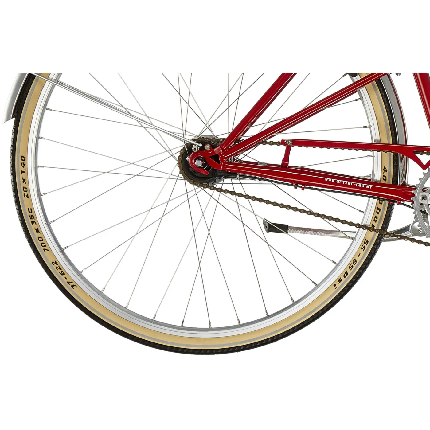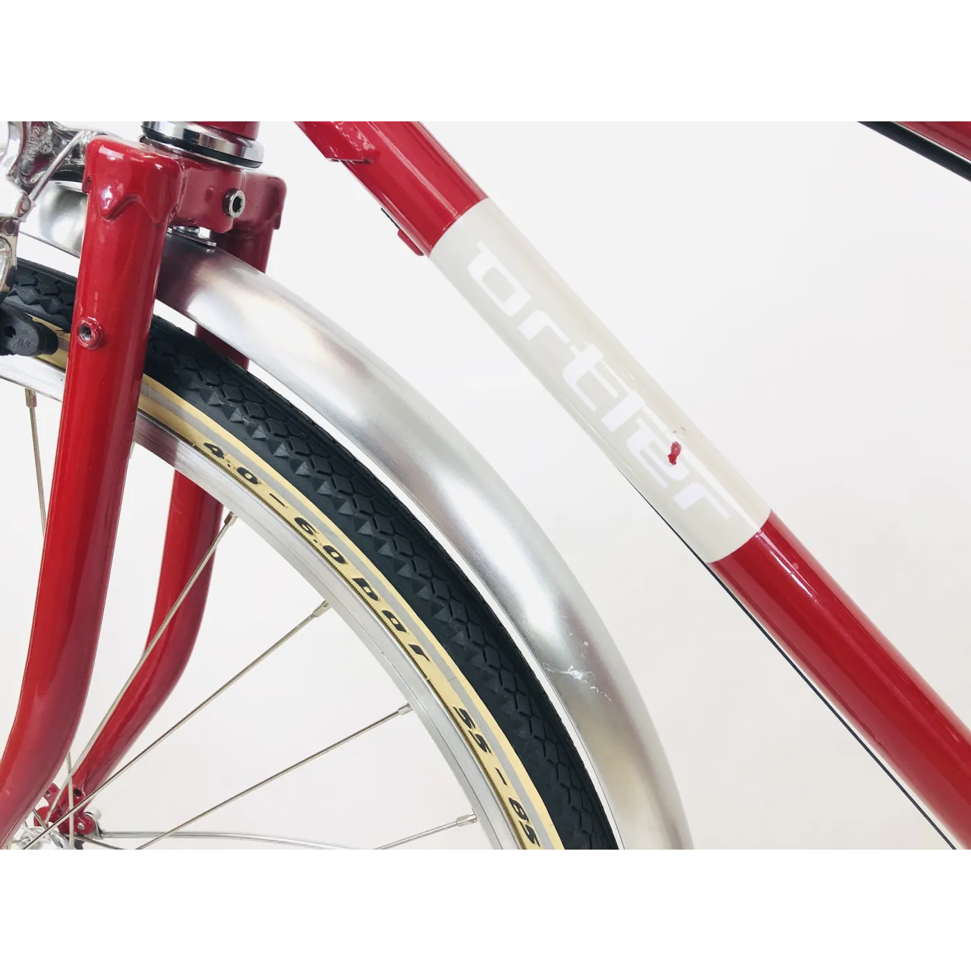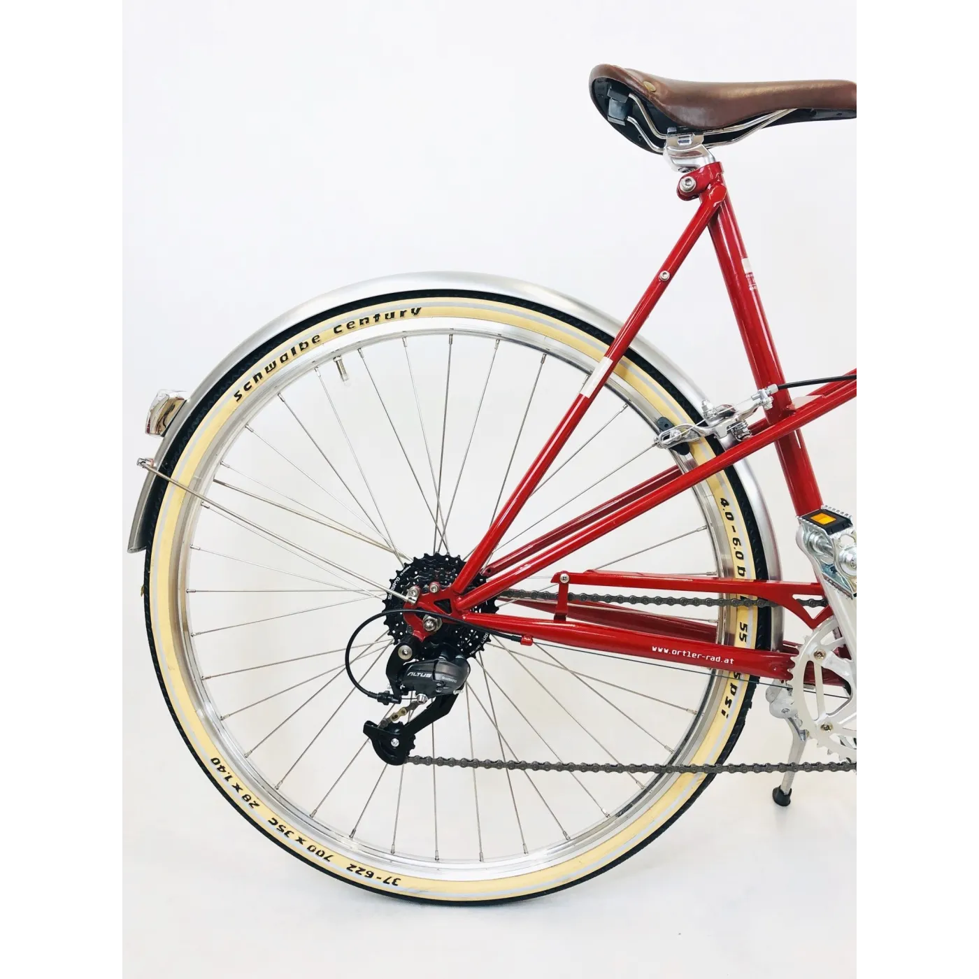 Rower posiada delikatną rysę wielkości ok. 2 cm z lewej strony ramy na napisie "Ortler" oraz centymetrową wgniotkę na tylnym błotniku - widoczne na zdjęciach realnych.