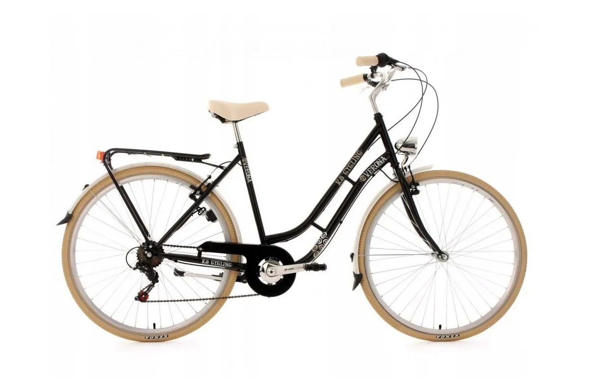OpisPiękny rower miejski z dużymi 28-calowymi kołami ze świetnym wyposażeniem w standardzie. Klasyczny kolor ramy, kremowy kolor opon oraz stylowe oświetlenie zasilane dynamo to tylko niektóre zalety modelu Verona. Wyjątkowo komfortowa pozycja podczas jazdy, skórzane rączki, podnóżek, szerokie siodełko i niezawodne przerzutki Shimano uzupełniają świetną specyfikację tego roweru miejskiego.